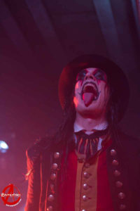 Johannes Eckerström, a ridiculously tall, immensely charismatic frontman, is like a man possessed, whipping the entire place into a frenzy of devil horns and sweaty moshing, interspersed with creepy monologues to the audience. “The Eagle has Landed,” “Paint Me Red,” “House of Eternal Hunt,” and “Black Waltz” are followed by drummer John Alfredsson’s obligatory drum solo, with the band then launching into “Vultures Fly,” which sends the crowd absolutely insane. “Murderer” follows and then “Fiddler’s Farewell” takes the energy down a notch, with Johannes donning a Pierrot clown costume and the slower tone of the song highlighting his more delicate vocal styles. It’s a lovely moment, well performed and eaten up by the crowd.