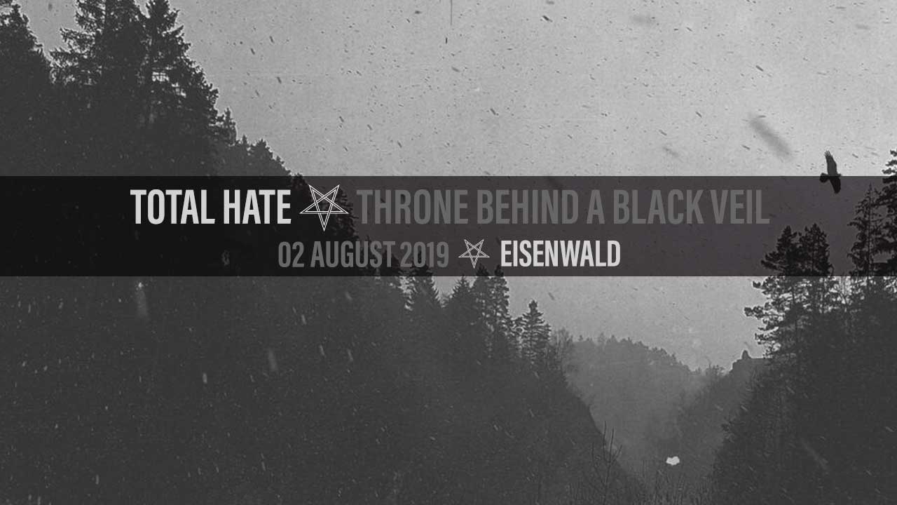 Back around the turn of the century, Adrastos, a guitarist and singer hailing from Nuremberg, Germany, began work on a new musical project he dubbed Total Hate. His intention was to create Black Metal of the purest form – stripped down, no keyboards, and owing its influence to the masters of the style that paved the way a decade earlier. At that time, Black Metal had certainly taken off and many bands seemed to be blasphemously incorporating elements of many other styles. While some bands like Arcturus and Solefald were legitimately expanding preconceived notions with a legitimate desire to explore new territory, others were cashing in on the phenomenon by exploiting its common tropes, watering them down, and injecting them with mass-digestible, commercialized, mundane Goth pomp and circumstance. Total Hate was formed in direct opposition to the latter, to propagate true Black Metal by keeping the flame alive and scorching in the hearts of genre purists. After releasing a self-titled demo in 2002, the band released an EP and a split before putting out four later full-lengths. Throne Behind a Black Veil is the band’s latest and is out August 2nd via Eisenwald.