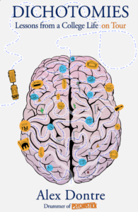 ALEX DONTRE, drummer for acclaimed comedy-metal band PSYCHOSTICK, reveals all in his new autobiography, Dichotomies: Lessons from a College Life on Tour. A must read for any musician and / or college student, Dichotomies tells the unique story of the drummer’s simultaneous musical and academic achievements through the artist’s unique mix of humor and self-perception.