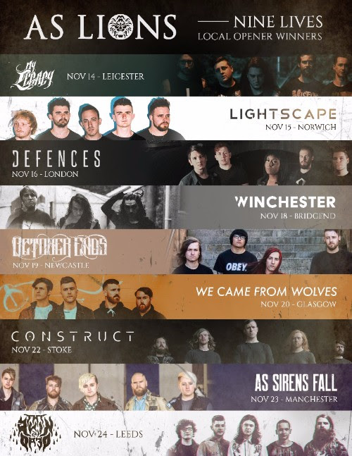 British rockers As Lions return to home turf for a full UK headline tour next month and in conjunction with their label Eleven Seven and Kerrang!, they are pleased to announce the nine winning bands of their ‘Nine Lives’ competition who will open for As Lions and main support act Greyhaven at the show in their local town.