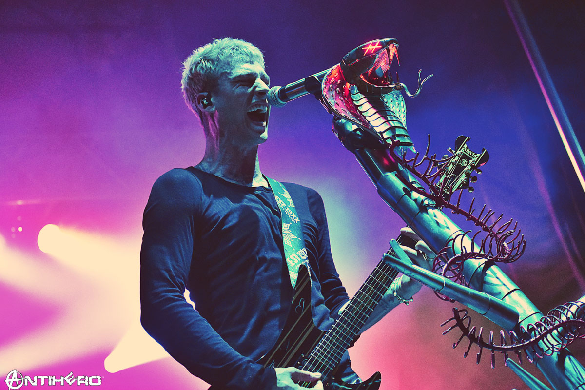 MACHINE GUN KELLY isn’t just a rapper. He’s a full-on musical entertainer. His set at Rocklahoma 2018, he performed with a full band, including a drummer that played like SEVEN (aka CHRIS ANTONOPOULOS oddly enough drummed for VANILLA ICE, and HELLIFIED FUNK CREW before playing with OPIATE FOR THE MASSES), guitarist, bassist, and keyboard/turntable. What I saw in his set was the uncanny diversity in music that MGK has and delivered to a swarm of fans buzzing around the stage. He can rap, sing, play guitar, move with the grooves, all while having a kick-ass time on stage. His energy is gobbled up by the fans like a piranha feasting on an overturned boat full of meat on the Amazon and is recycled back to MGK. It is amazing to watch and thrilling to be in the middle of it for three songs as I took pictures.