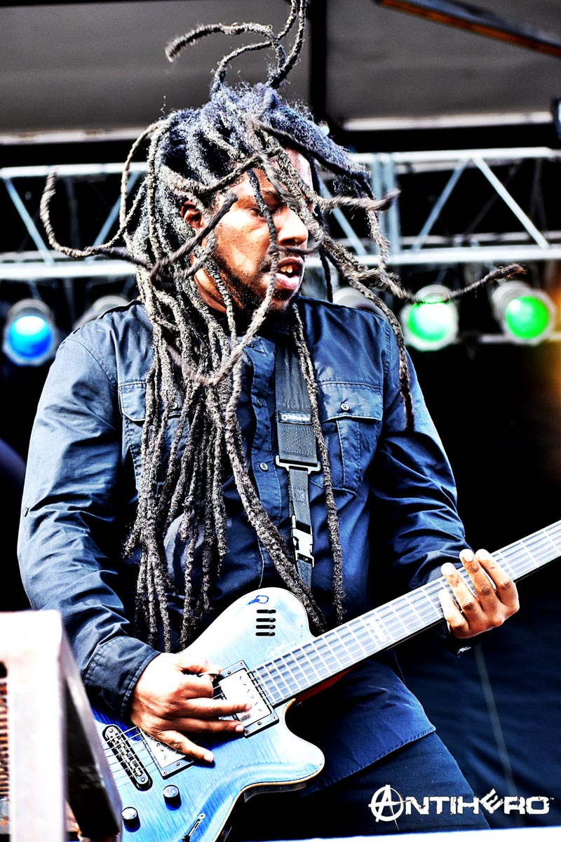 Literally, there was zero room to move because probably close to half of the festival goers (close to 20K people, if not more) were jammed in front of the stage, spilling over to the side, and back by the tent in the middle of the grounds, to all the way over to the other side by the food trucks, NONPOINT had sent out a tractor beam that pulled everyone with a pulse to come to their stage to watch their show.