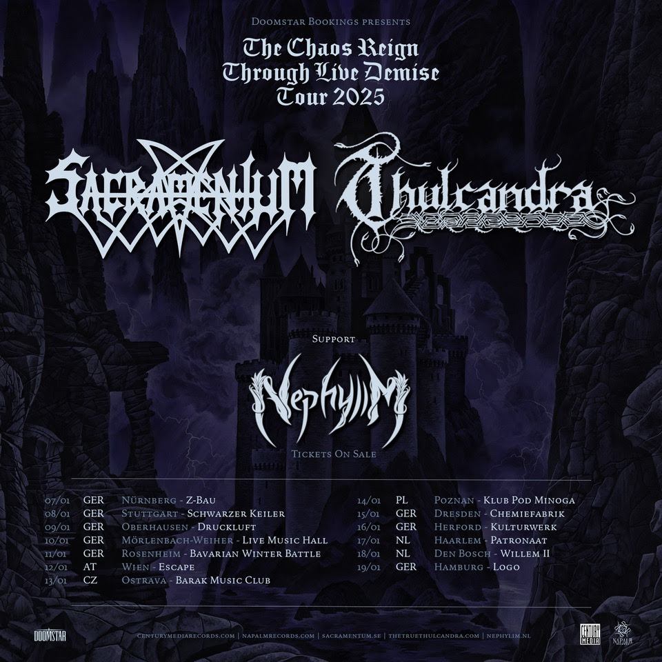 Due to the pandemic, which was subsequently followed by their latest studio album ‘Hail The Abyss’, ‘Live Demise’ could not be released alongside THULCANDRA’s 20th anniversary as originally planned. Now, with mixing and mastering by Dan Swanö (Katatonia, Edge Of Sanity, Dissection) and cover artwork designed by Herbert Lochner, this very special release will become available in only strictly limited editions exclusively via Napalm Records and at THULCANDRA’s upcoming live shows – including their European co-headlining run with legendary Swedish black and death metal band Sacramentum with support from Nephylim. The tour begins January 2025; find all upcoming dates listed below!