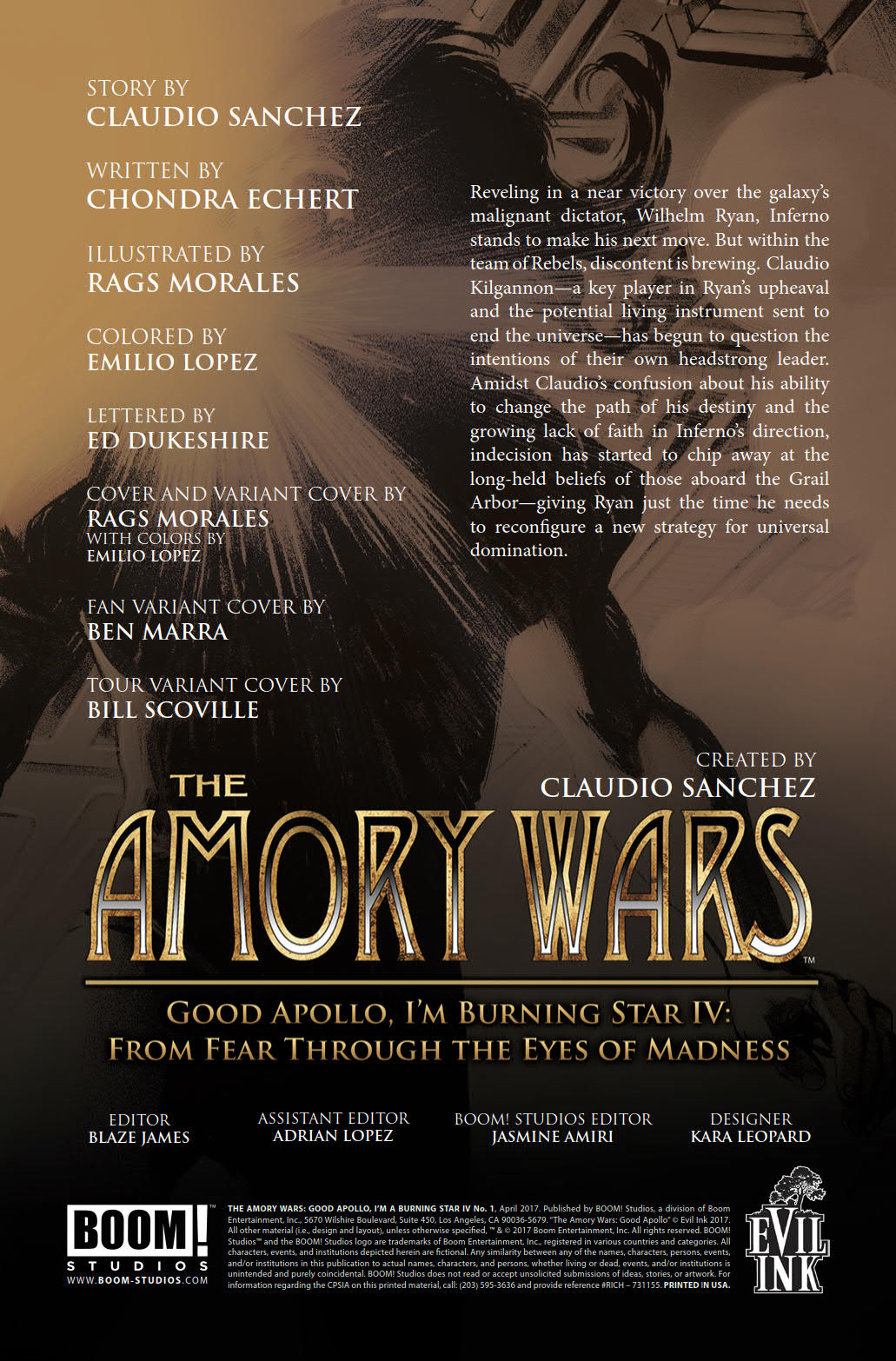 Issue one of Claudio Sanchez’s comic series/space odyssey, The Amory Wars: Good Apollo, I’m Burning Star IV was released today via Evil Ink Comics/Boom! Studios. The 12-issue sci-fi series is the 3rd in a line of comics that follow the story arc from Sanchez’s band, Coheed and Cambria’s concept albums. The new series loosely follows the lyrics and tone of their massive selling 2005 album, Good Apollo, I’m Burning Star IV: From Fear Through the Eyes of Madness (Columbia), and elaborates on the graphic novel of the same name which was released as a companion piece to the album on it’s original release. Purchase the first issue now at http://www.evilinkcomics.com/.
