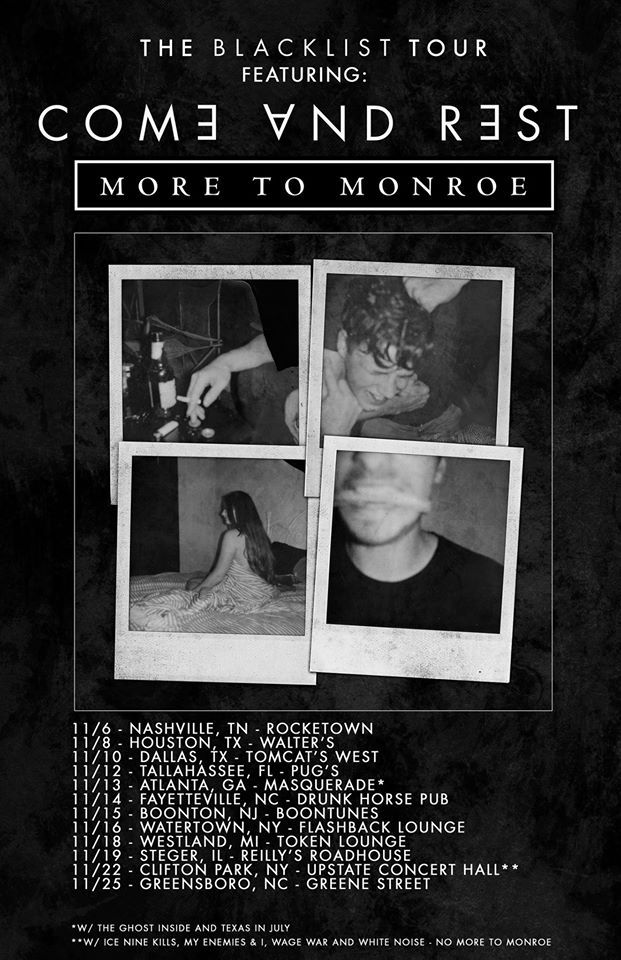 Post Hardcore outfit Come and Rest have announced a new U.S. tour, with Roadrunner artist, More To Monroe, called “The Blacklist Tour”. The tour will begin in Nashville, TN on November 6th and will travel much of the southern states before heading up and down the east coast, finishing in Greensboro, NC on November 25th. Check the dates below for a city near you.