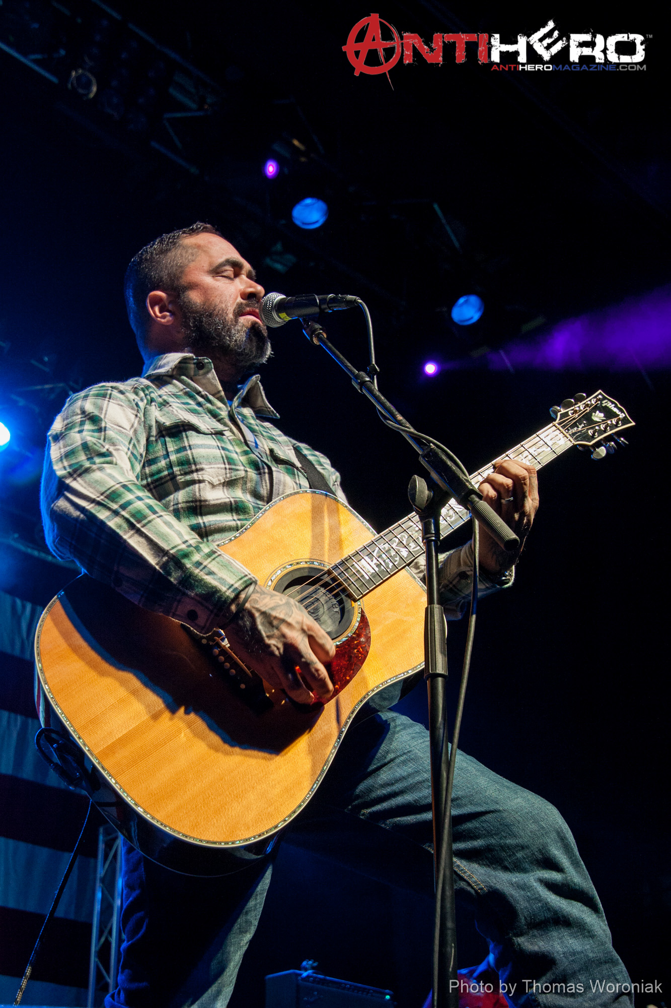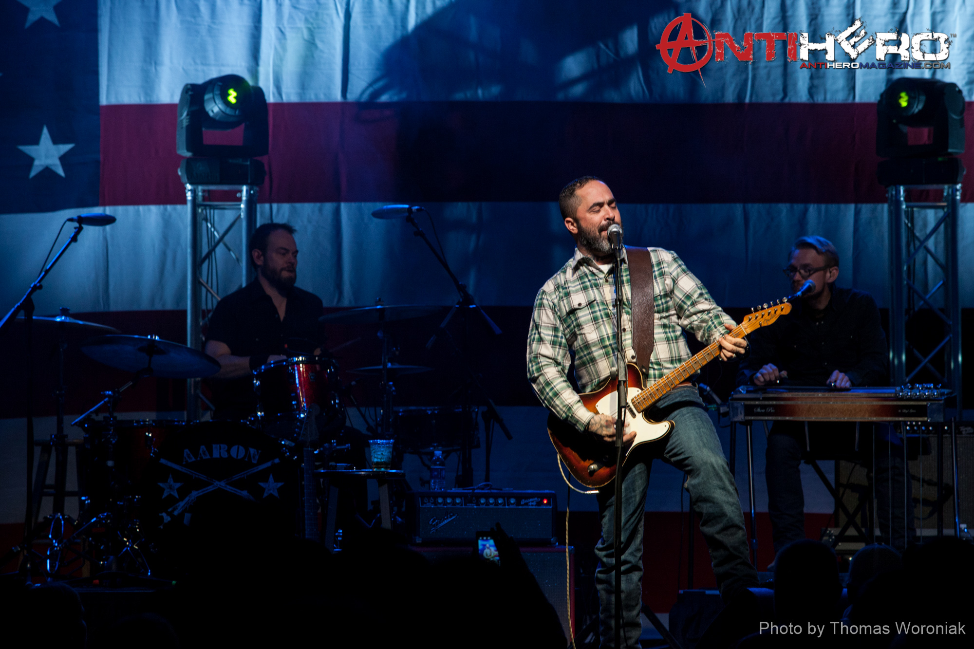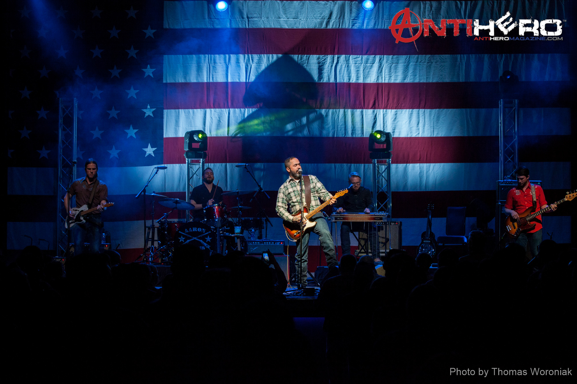 Staind frontman Aaron Lewis performed at the VooDoo Lounge in Kansas City in support of his solo country tour along with opening performance by Travis Marvin on Thursday, February 26, 2015. The enigmatic singer delivered a heartfelt set, including a few acoustic renditions of some great Staind tunes, with a giant American flag as a stunning background. AntiHero Magazine photographer Thomas Woroniak was there to capture the action.