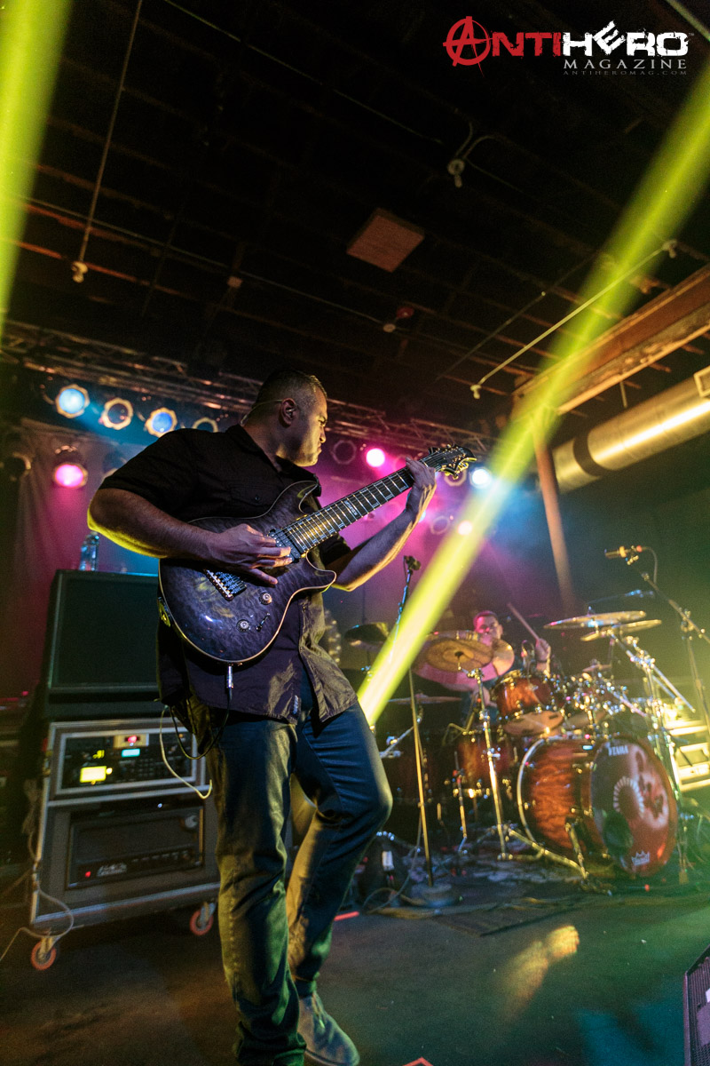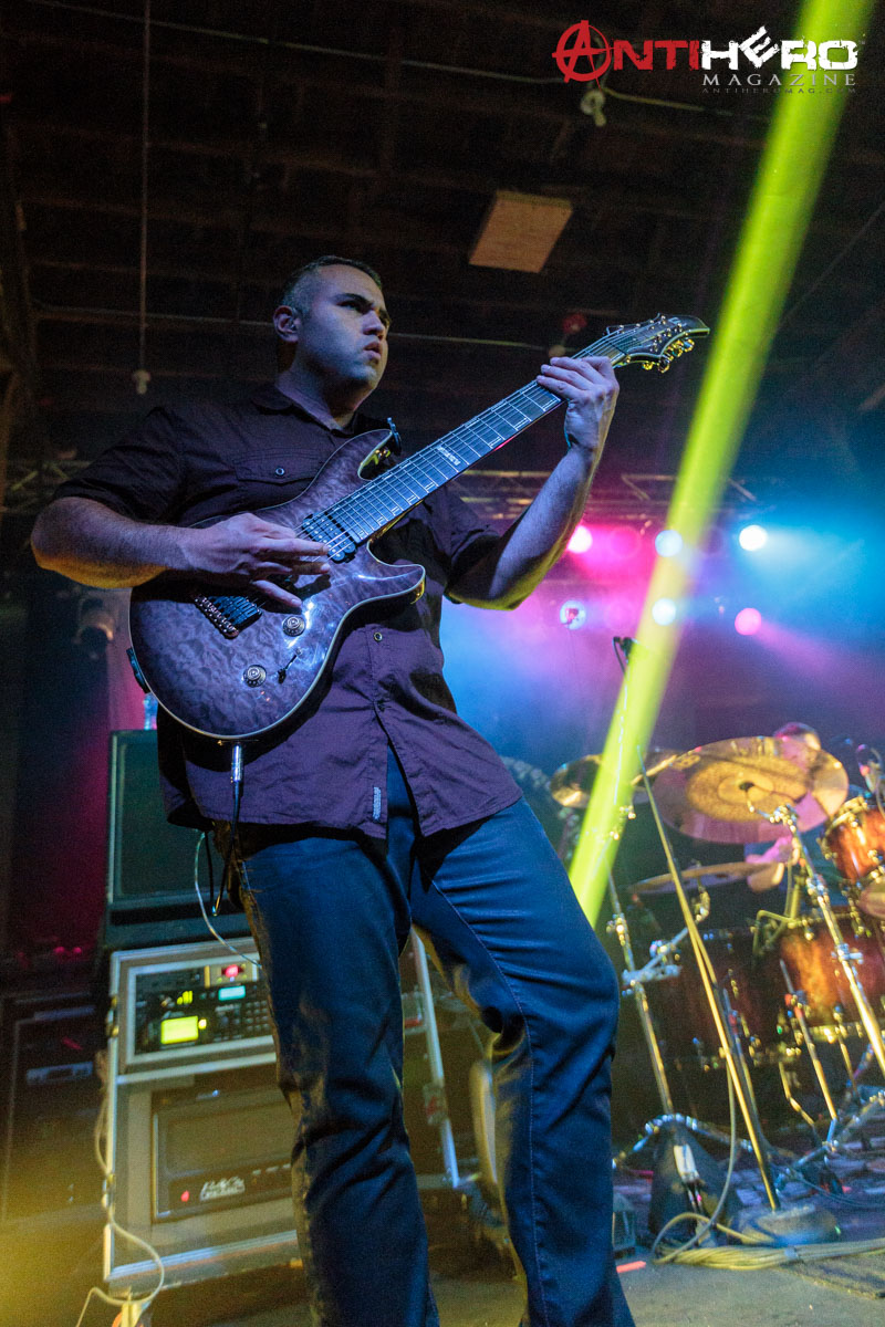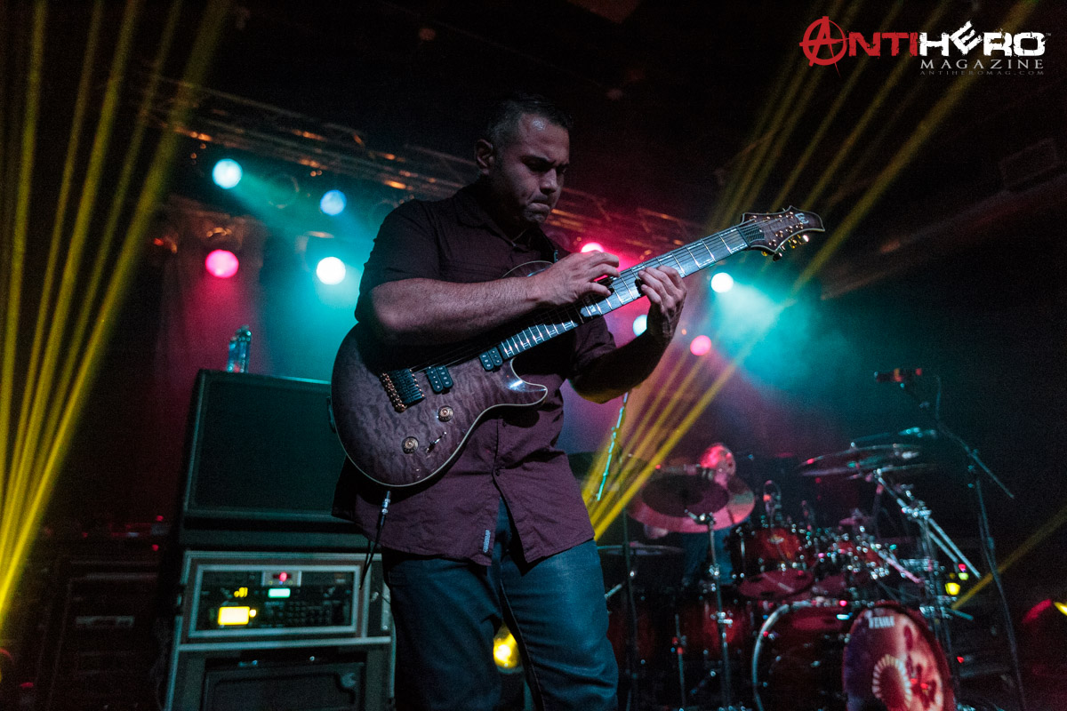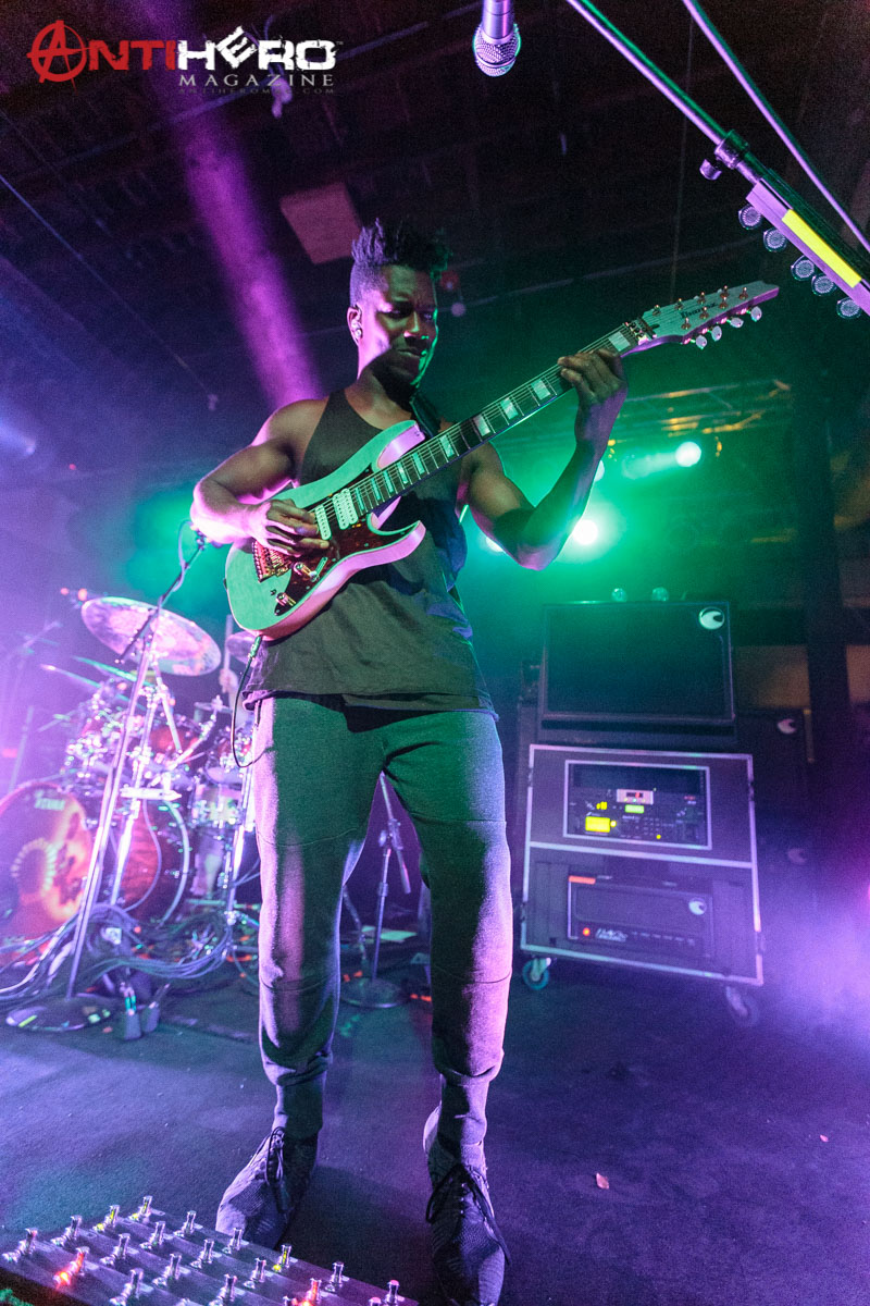The instrumental progressive giants and titans of technical fretboard wizardry ANIMALS AS LEADERS – featuring guitarists Tosin Abasi and Javier Reyes, and drummer Matt Garstka – performed an electrifying set comprised mostly of tracks from their 2014 Sumerian Records release The Joy of Motion, ending with a dizzying delivery of CAFO from the 2009 self-titled debut album. The trio played at Wooly’s in downtown Des Moines, Iowa, supporting Between The Buried And Me, along with guests The Contortionist.