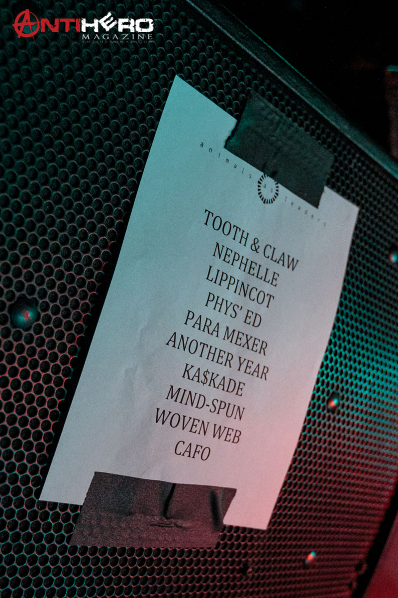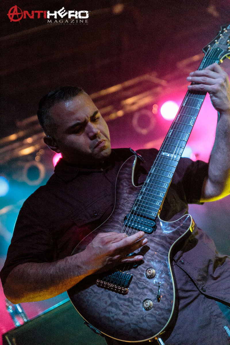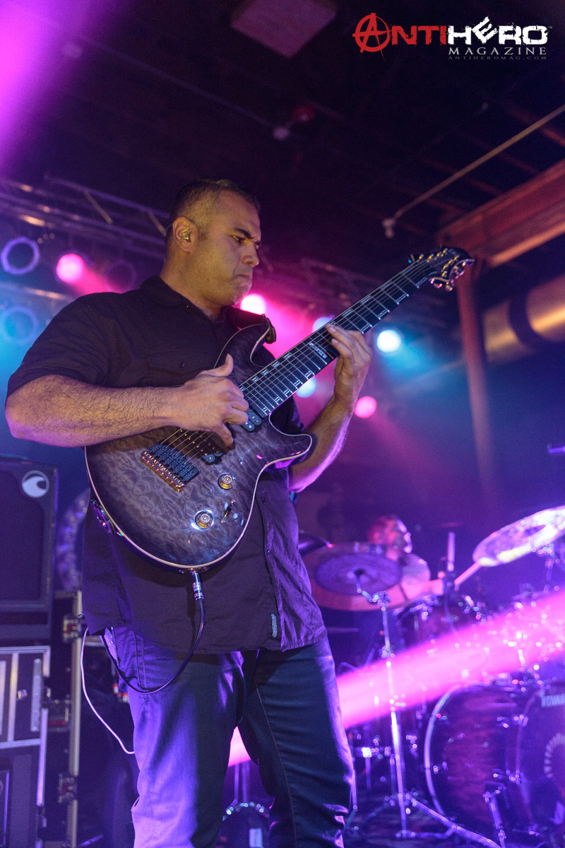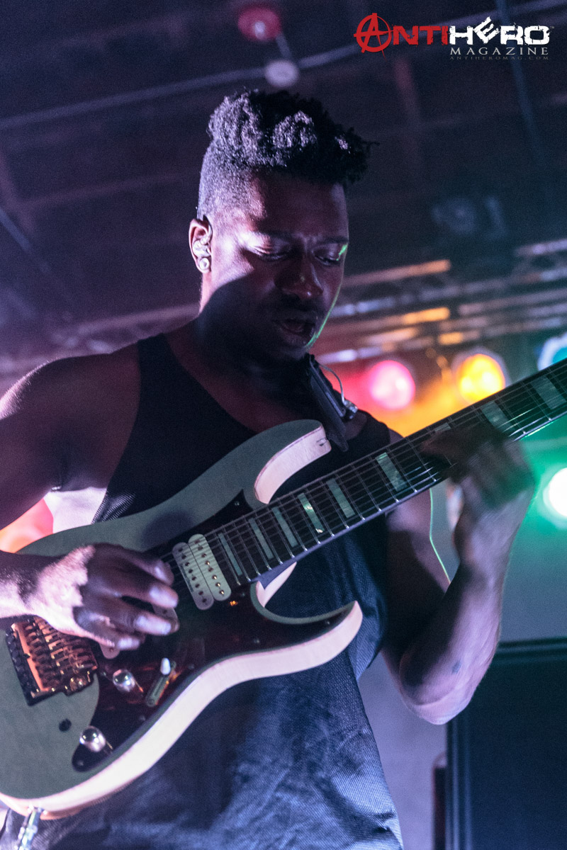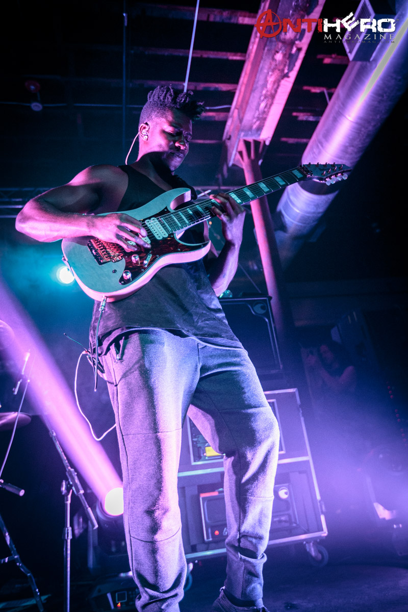 The instrumental progressive giants and titans of technical fretboard wizardry ANIMALS AS LEADERS – featuring guitarists Tosin Abasi and Javier Reyes, and drummer Matt Garstka – performed an electrifying set comprised mostly of tracks from their 2014 Sumerian Records release The Joy of Motion, ending with a dizzying delivery of CAFO from the 2009 self-titled debut album. The trio played at Wooly’s in downtown Des Moines, Iowa, supporting Between The Buried And Me, along with guests The Contortionist.