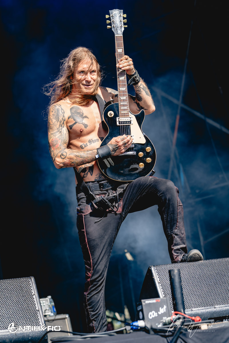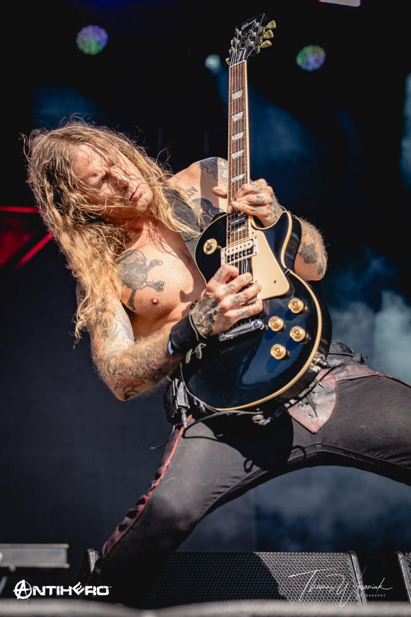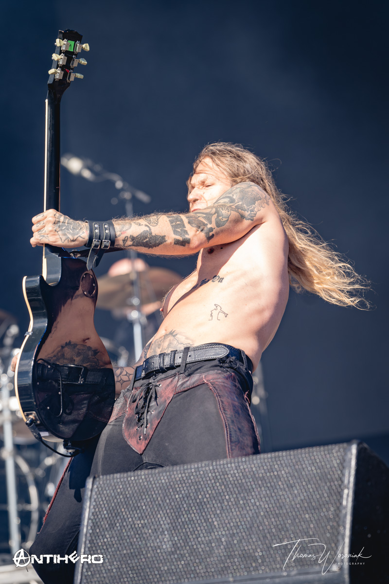 Thomas Woroniak’s photos highlight the raw power and intricate artistry of Enslaved’s live show, capturing everything from Ivar Bjørnson’s soaring riffs to Grutle Kjellson’s commanding vocals. The gallery reflects the band’s unparalleled ability to balance aggression and melody, while the atmospheric stage lighting adds a visual depth that mirrors their complex sound. Explore the full gallery on Antihero Magazine to relive the awe-inspiring performance of Enslaved at Bloodstock Open Air 2024.