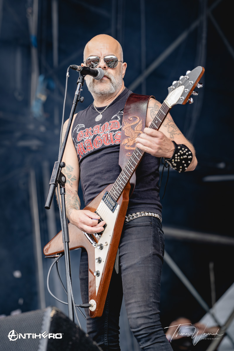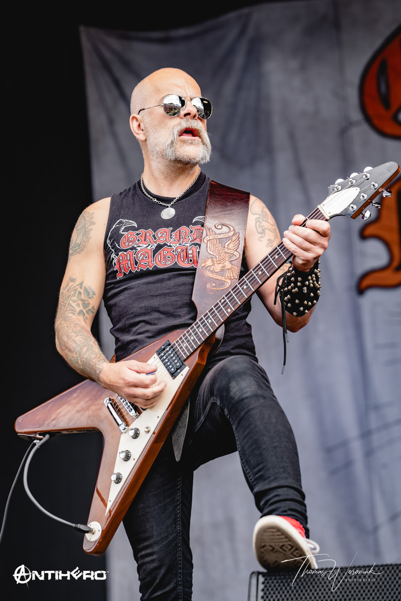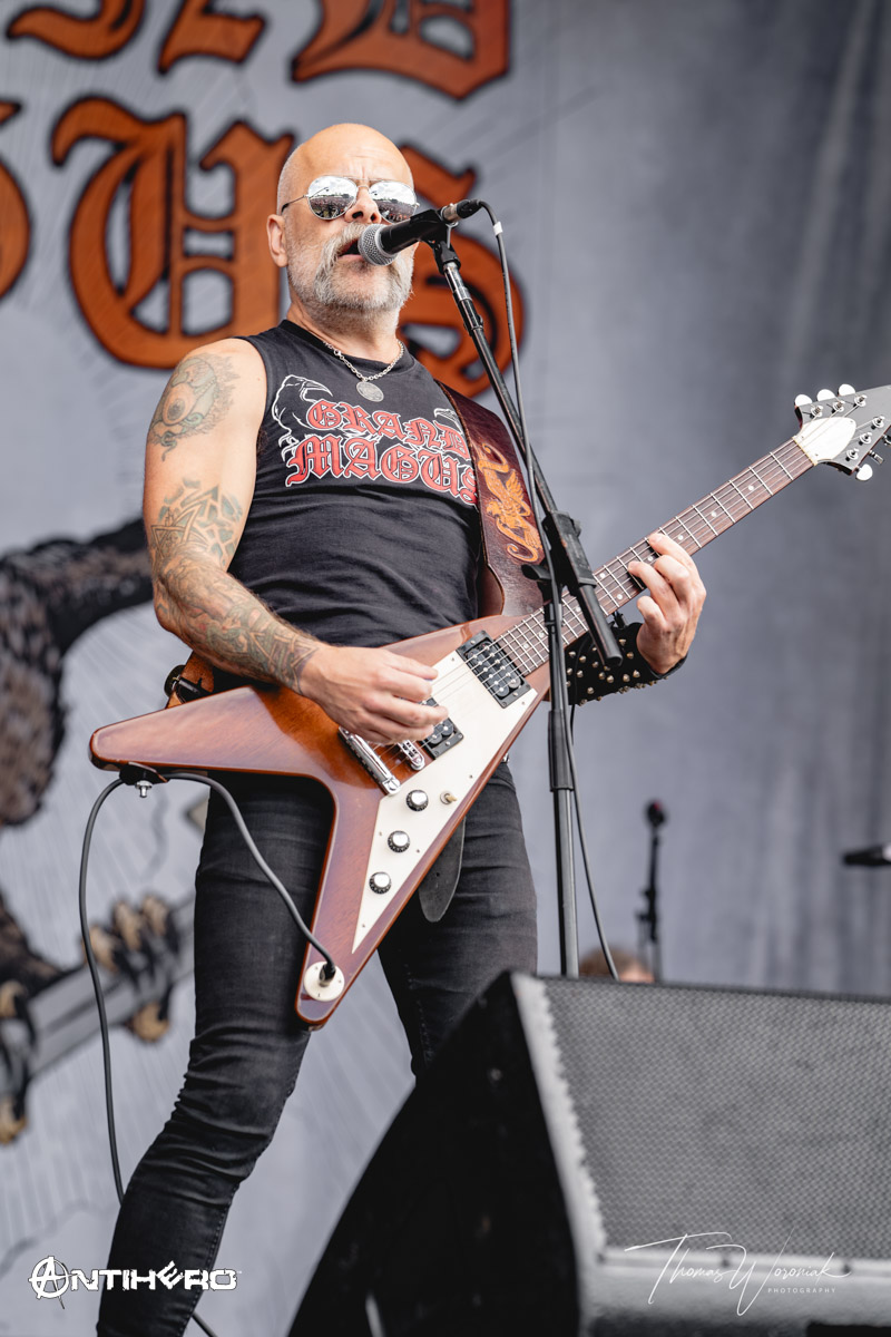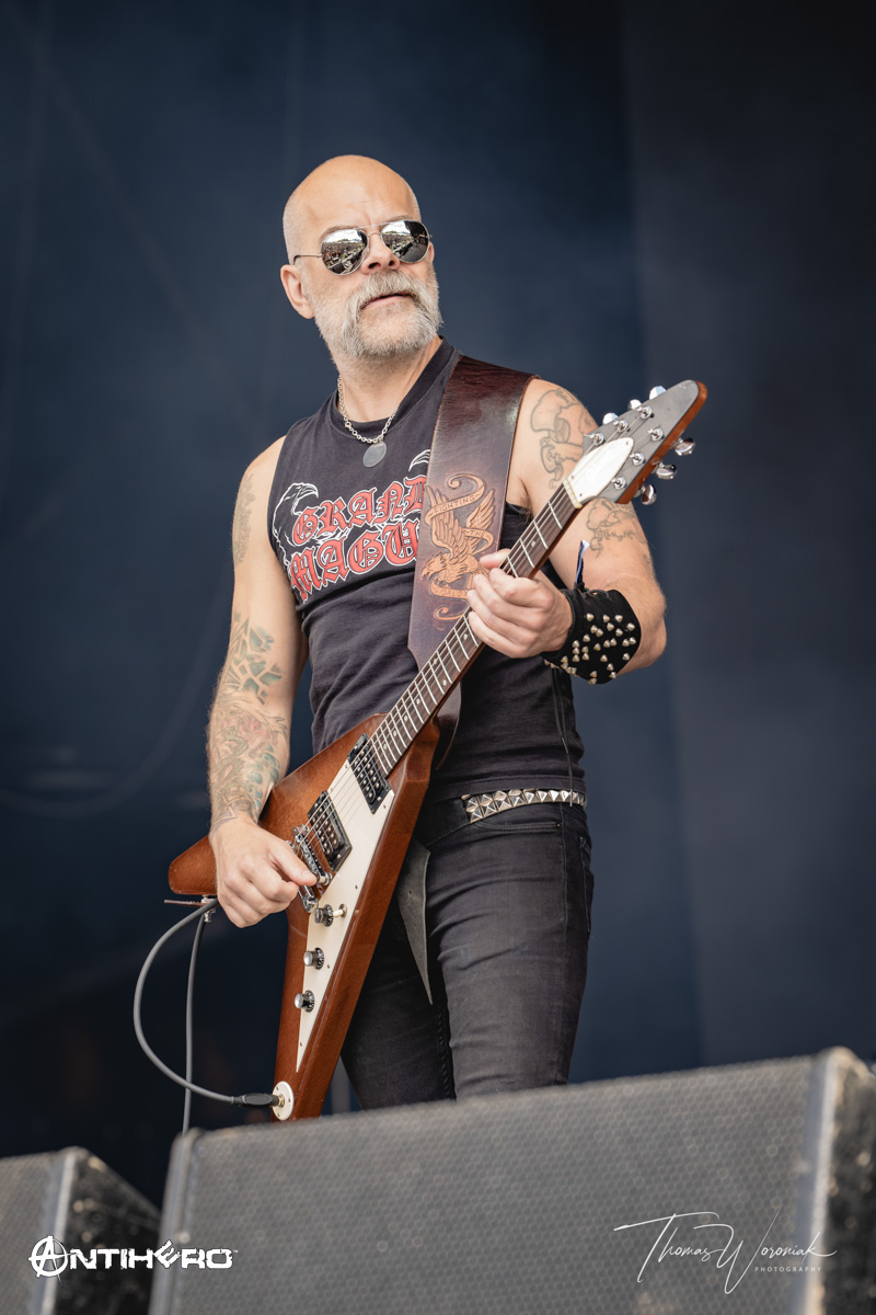 Thomas Woroniak’s photos capture the essence of Grand Magus’ performance, highlighting their majestic sound and the connection they forged with the Bloodstock crowd. From the thunderous grooves of bassist Fox Skinner to Ludwig Witt’s relentless drumming, the gallery showcases the band’s tight musicianship and unyielding energy. Explore the full collection on Antihero Magazine to relive the mighty and metal-filled set of Grand Magus at Bloodstock Open Air 2024!