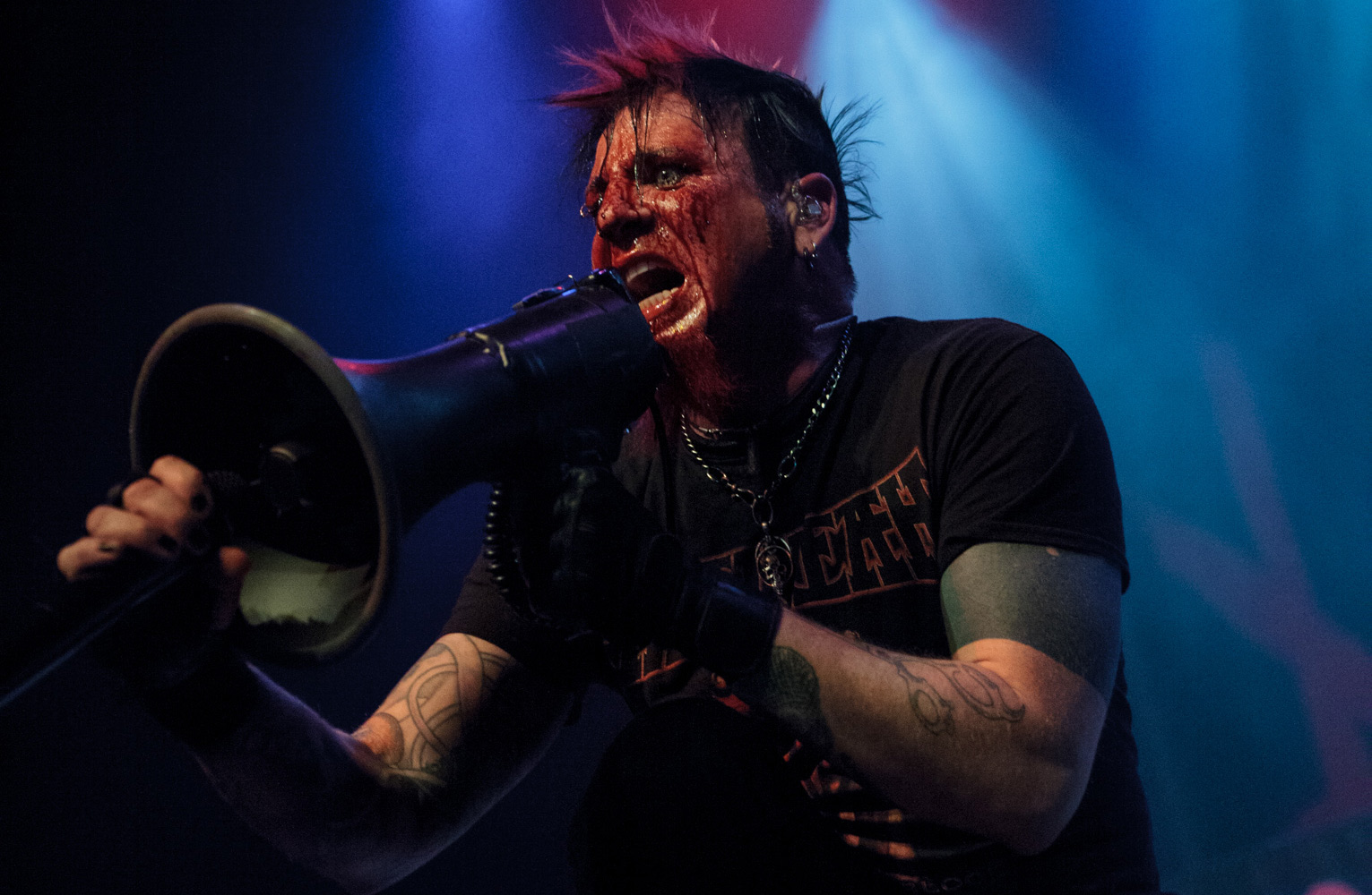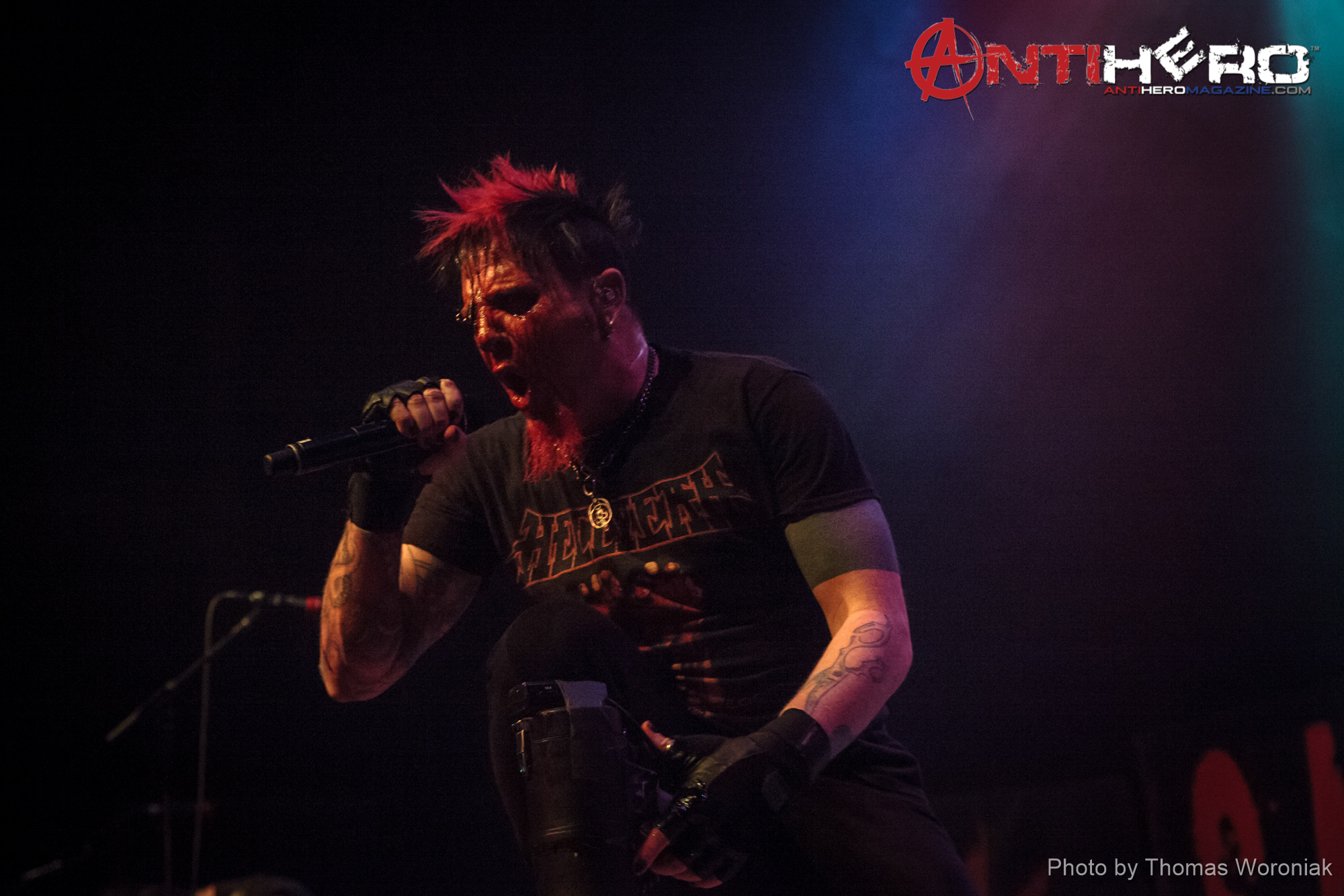 Blood for Blood, Sangre por Sangre…Hellyeah tore it up at the Arvest Bank Theater at the Midland in Kansas City, MO on Tuesday, February 17, 2015 with guests Devour The Day and New Zealand’s Like A Storm. A blood-spattered Chad Gray, along with drummer Vinnie Paul, guitarists Tom Maxwell and Christian Brady, and bassist Kyle Sanders, delivered an energized set to a relatively smaller-than-usual crowd at the beautiful Kansas City venue. Photographer Thomas Woroniak sniped a few shots from the pit…check them out below!