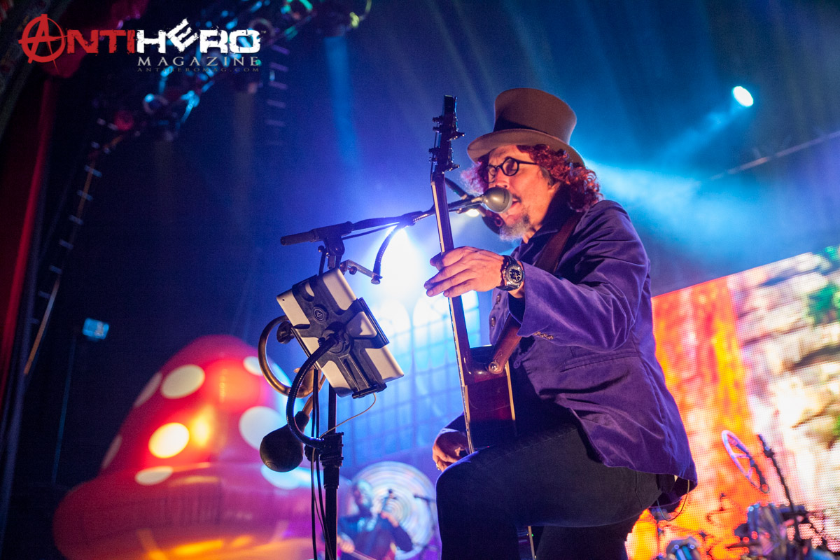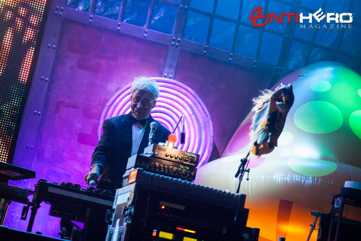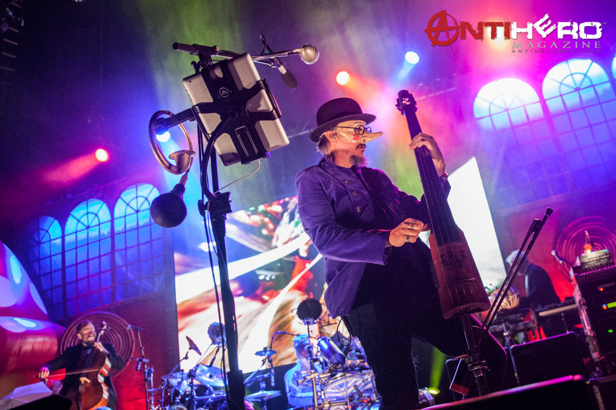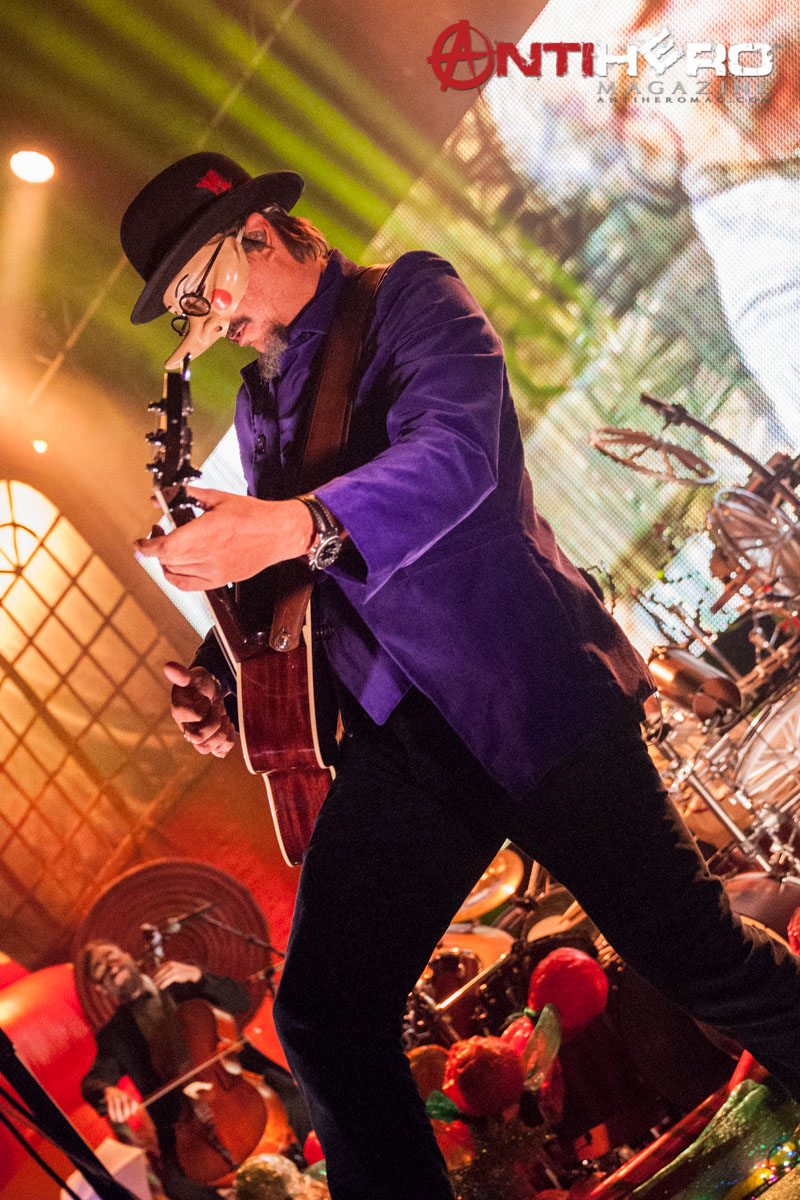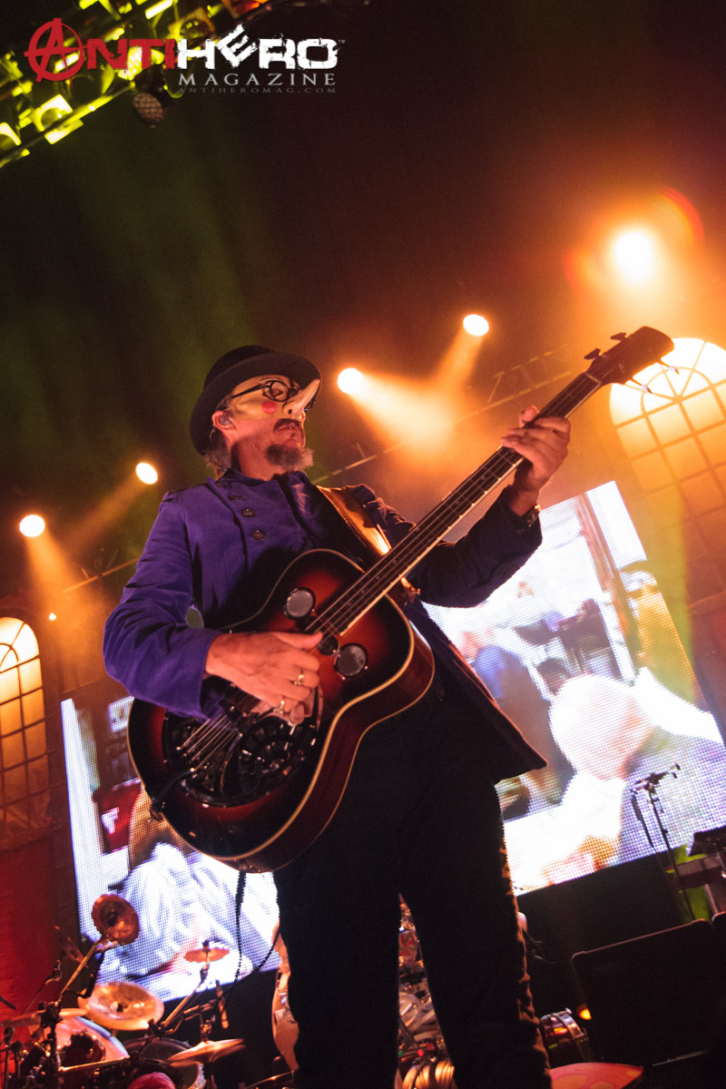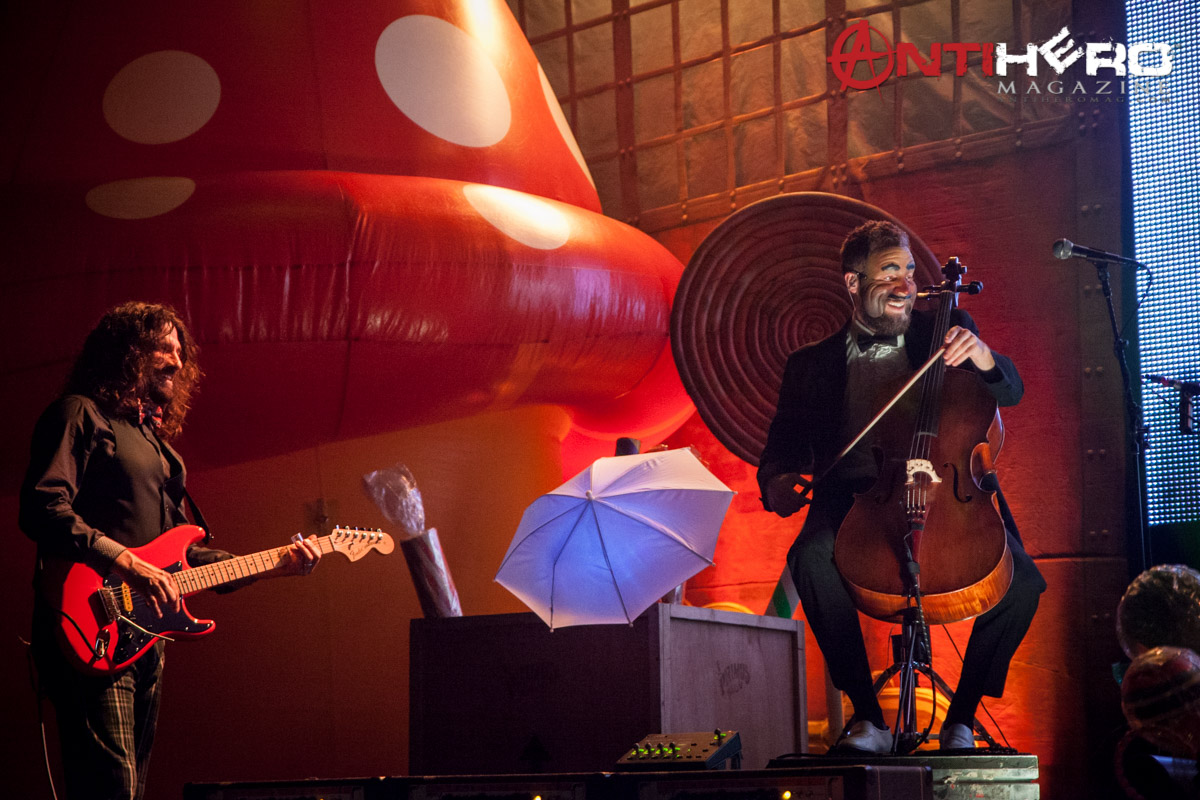 “We are the music makers…and we are the dreamers of dreams.” Strawberries, Snozzberries, Everlasting Gobstoppers, giant mushroooms, and Oompa Loompas doo-pa-dee doing their thing on stage, while Les Claypool, Larry “Ler” LaLonde, and Tim “Herb” Alexander of Primus performed their special magical blend of structured chaos at the Uptown Theater in Kansas City on Wednesday, May 6, 2015 along with the Fungi Ensemble – consisting of Sam Bass on cello and percussionist Mike Dillon. AntiHero Magazine photographer Thomas Woroniak got his Golden Ticket and this is what he witnessed. [separator style=”line” /]