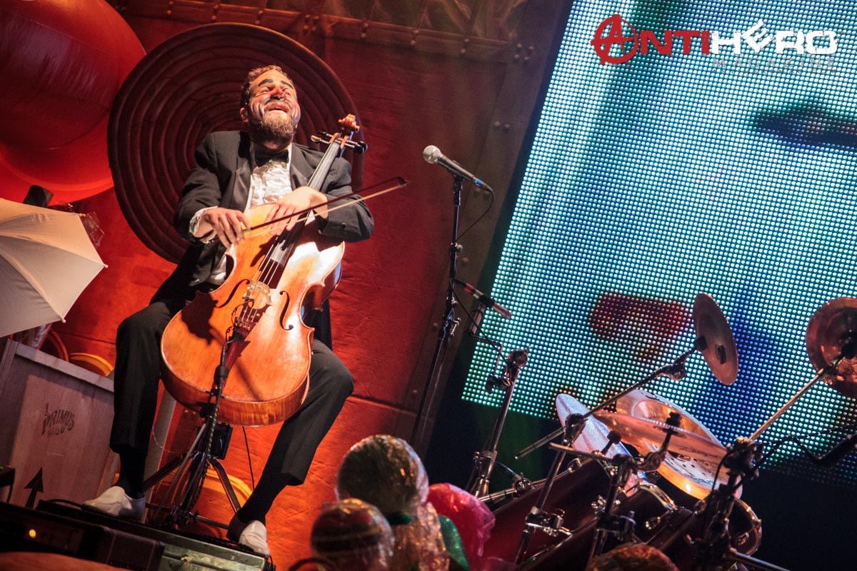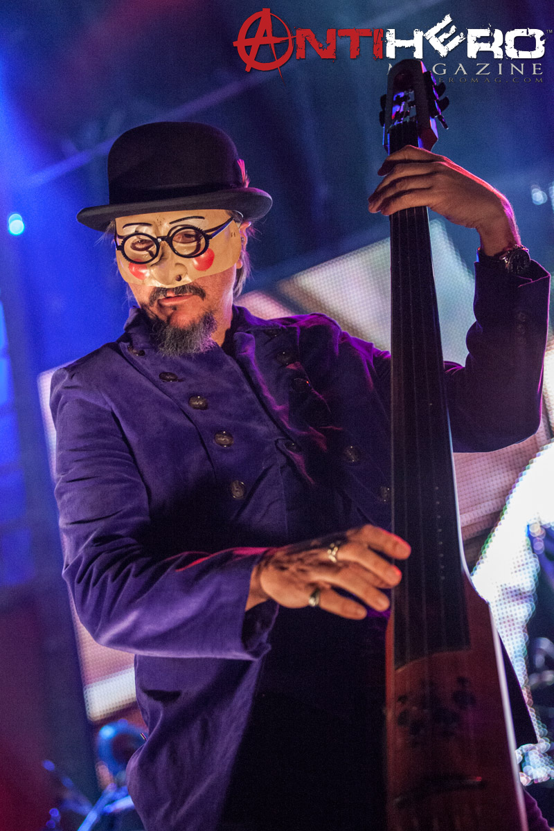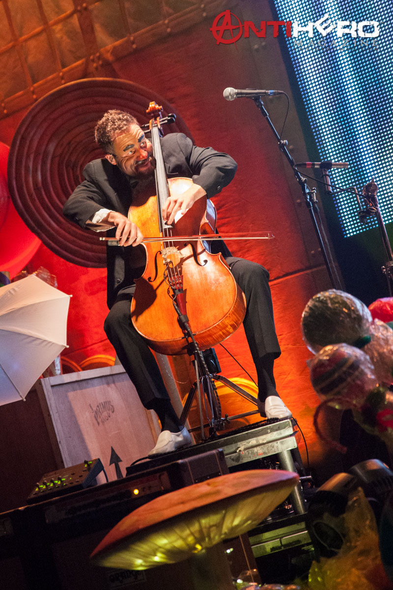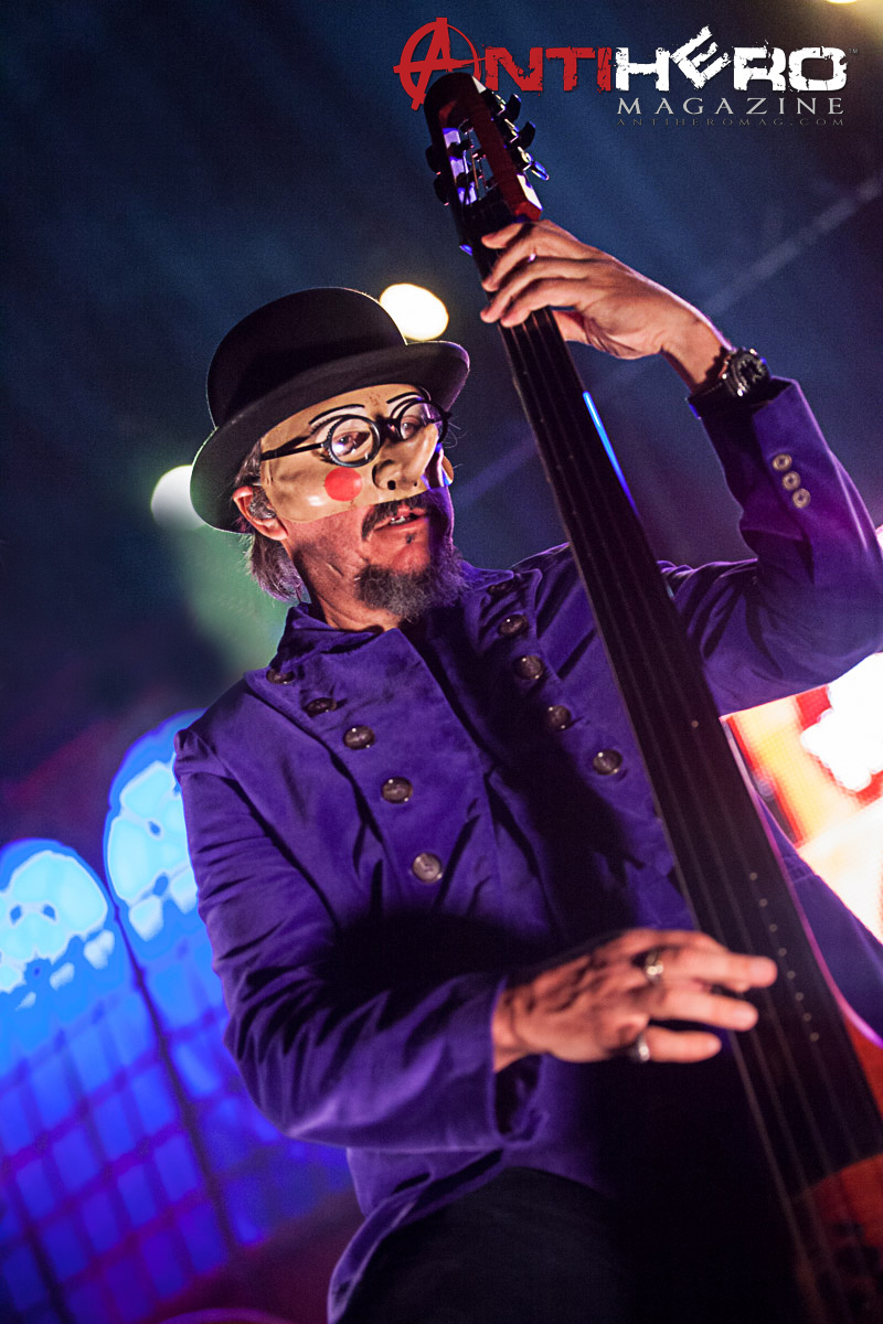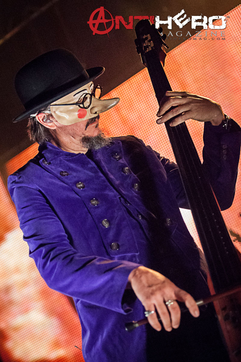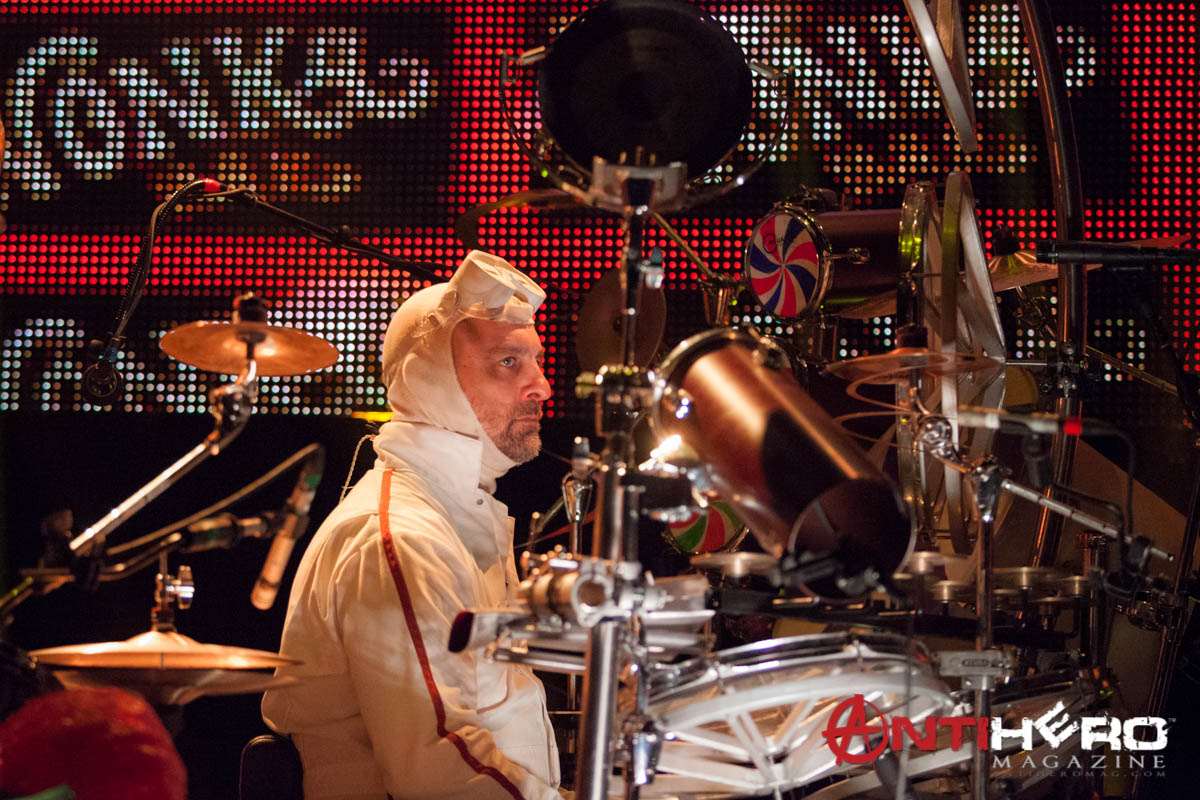 “We are the music makers…and we are the dreamers of dreams.” Strawberries, Snozzberries, Everlasting Gobstoppers, giant mushroooms, and Oompa Loompas doo-pa-dee doing their thing on stage, while Les Claypool, Larry “Ler” LaLonde, and Tim “Herb” Alexander of Primus performed their special magical blend of structured chaos at the Uptown Theater in Kansas City on Wednesday, May 6, 2015 along with the Fungi Ensemble – consisting of Sam Bass on cello and percussionist Mike Dillon. AntiHero Magazine photographer Thomas Woroniak got his Golden Ticket and this is what he witnessed. [separator style=”line” /]