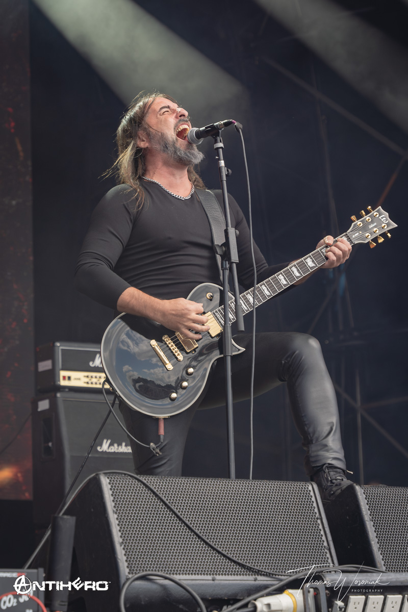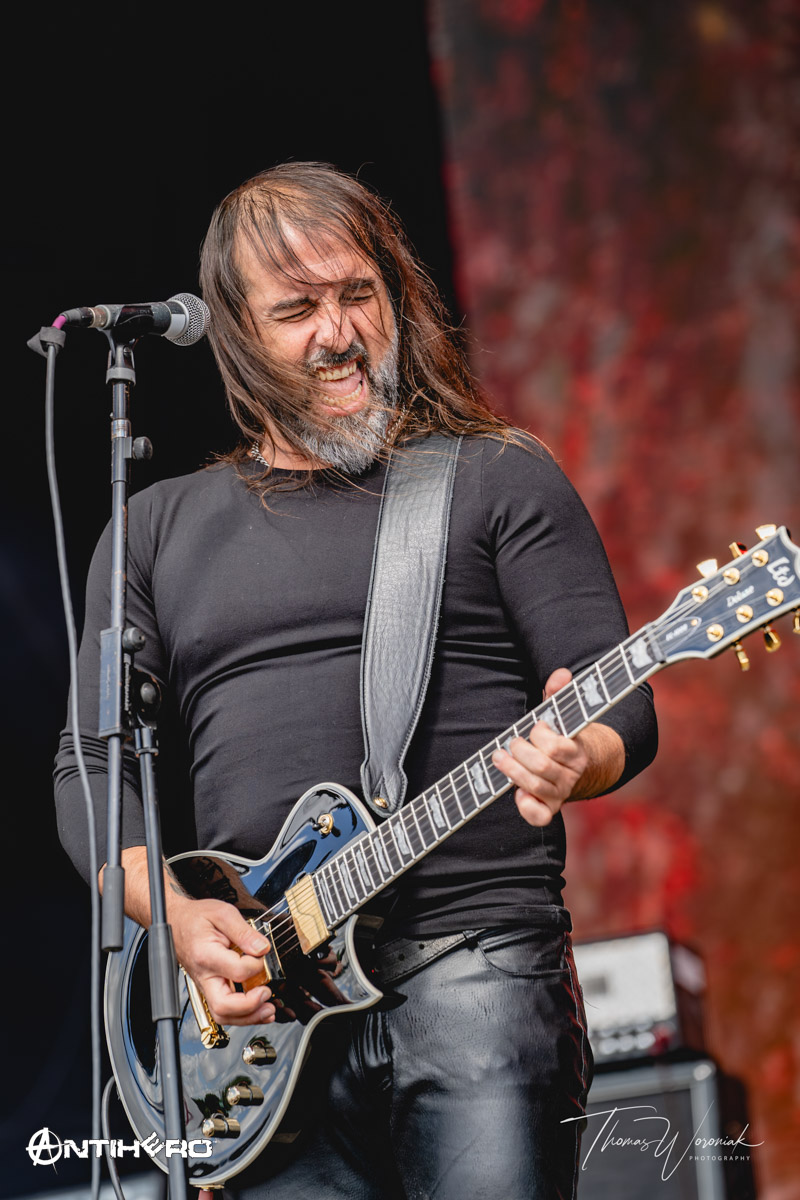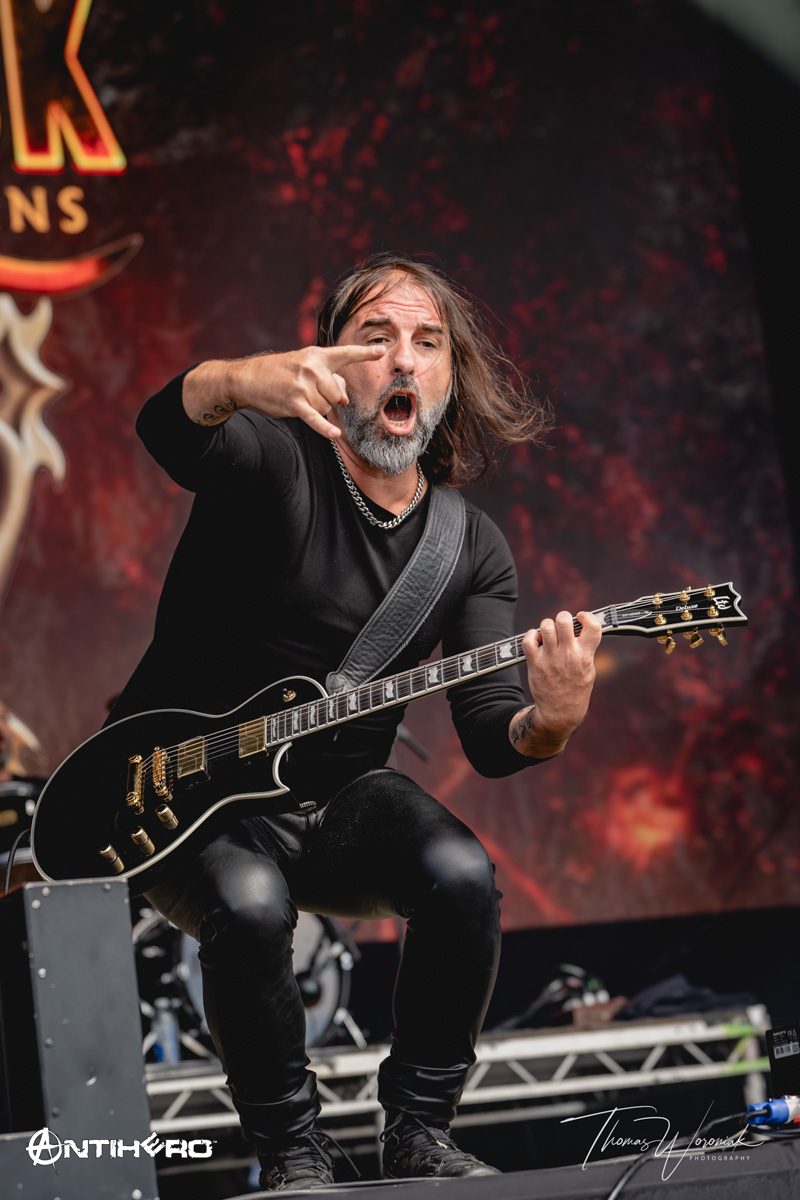 Rotting Christ cast their spell over Bloodstock Open Air 2024, delivering a performance steeped in blackened majesty and ritualistic energy. Captured by Thomas Woroniak Photography for Antihero Magazine, the Greek metal legends commanded the stage with an aura of mysticism and power, captivating the audience with their brooding atmospheres and thunderous intensity. Tracks like “Dies Irae” and “Grandis Spiritus Diavolos” echoed through the festival grounds, creating an unforgettable communion between the band and the crowd.
