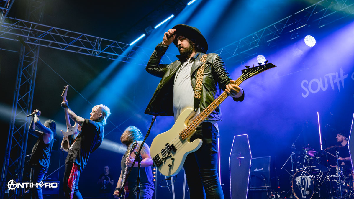 Thomas Woroniak’s photos perfectly capture the essence of South of Salem’s performance, from Joey Draper’s charismatic vocals to the thunderous rhythm section driving the band’s dark and dynamic sound. The images highlight the synergy between the band and their passionate audience, creating an unforgettable moment at the festival. Check out Antihero Magazine to explore the full gallery and relive the spellbinding performance of South of Salem at Bloodstock Open Air 2024.