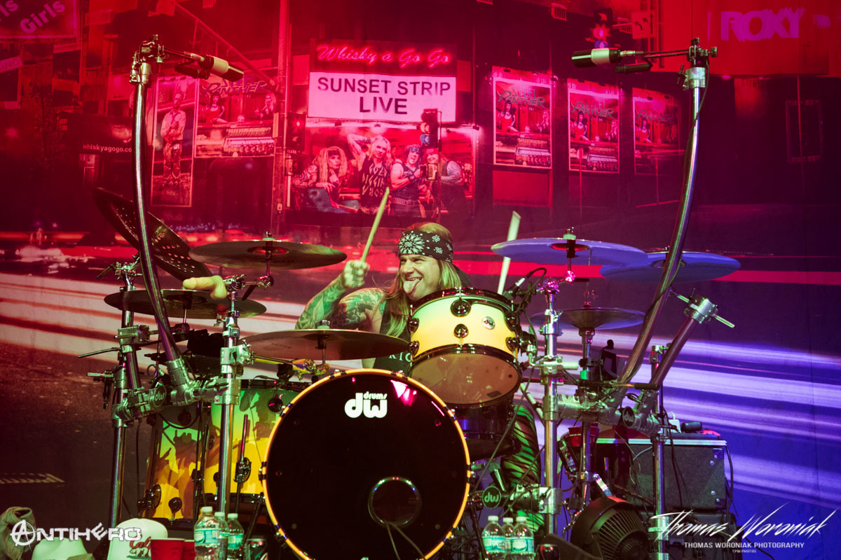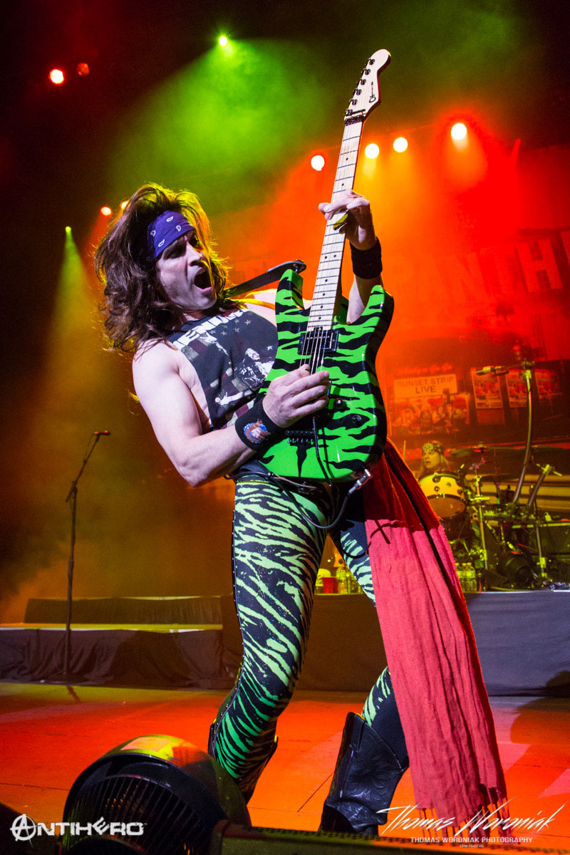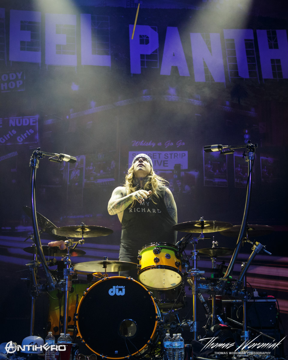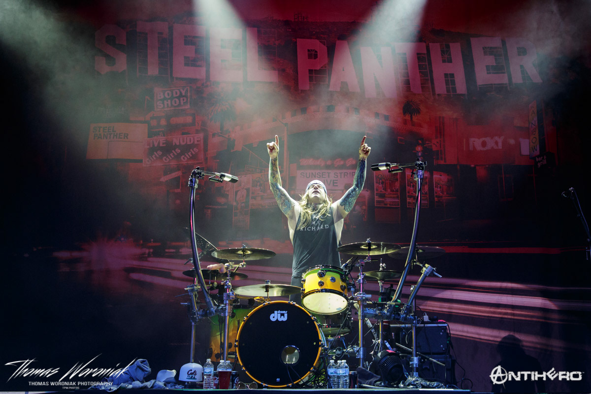 A few weeks ago, Steel Panther announced that bassist Lexxi Foxx would not be performing on the current US tour, as he has “voluntarily checked himself into an undisclosed sex rehab.” The band’s friend of over 30 years and backstage doorman Spyder has been filling in on bass for the upcoming tour dates. And while Foxx’s flamboyant and jokingly narcissistic stage presence was missed during the performance, Spyder performed surprisingly well blending in with the group’s stage chemistry and providing the low-end thump that kept the audience engaged in party mode.