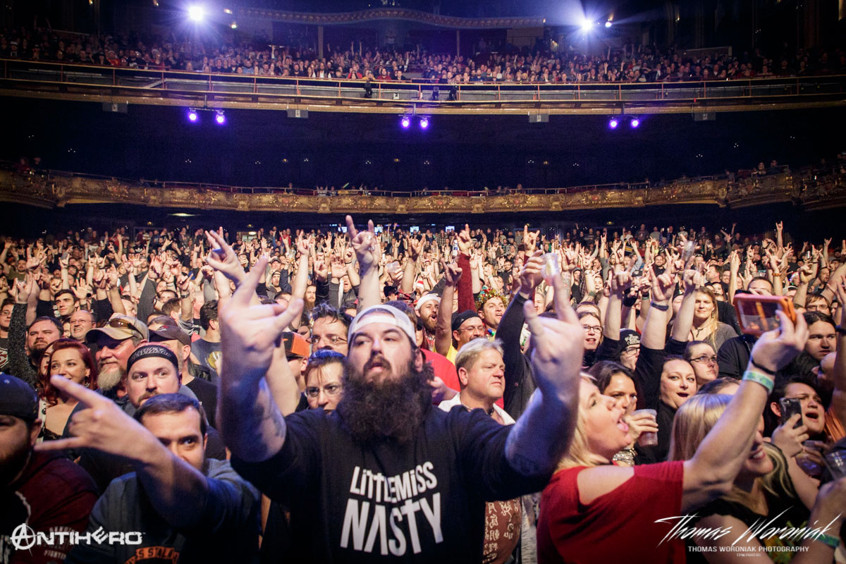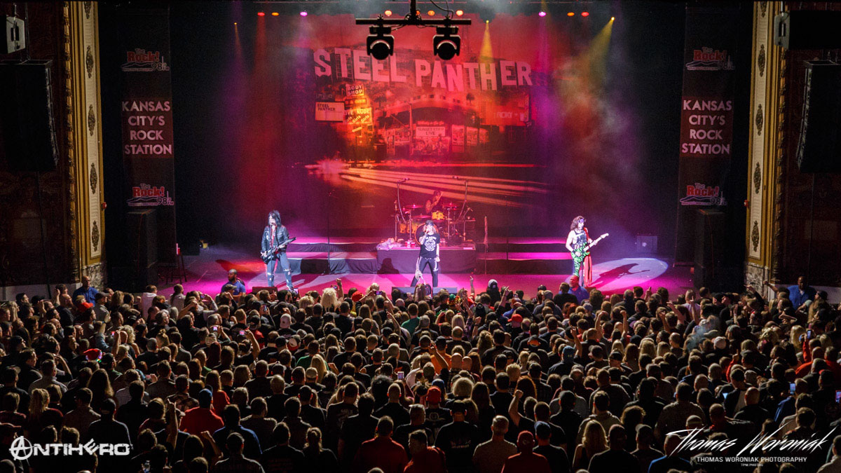 It’s become a holiday tradition in Kansas City to attend the Twisted Xmas – an annual concert hosted by “Kansas City’s Rock Station”, 98.9 The Rock – an event held at the beautiful Midland Theatre in downtown KC. Tonight’s festivities brought the clown princes of sleazy Glam metal, Steel Panther, to the historic KC venue as they delivered an energized set to a packed house. Currently, the band is on their “Sunset Strip Live!” tour and will play a handful of remaining west coast dates before heading to the UK in early February 2019. Direct support was provided tonight by Detroit rockers, Wilson.