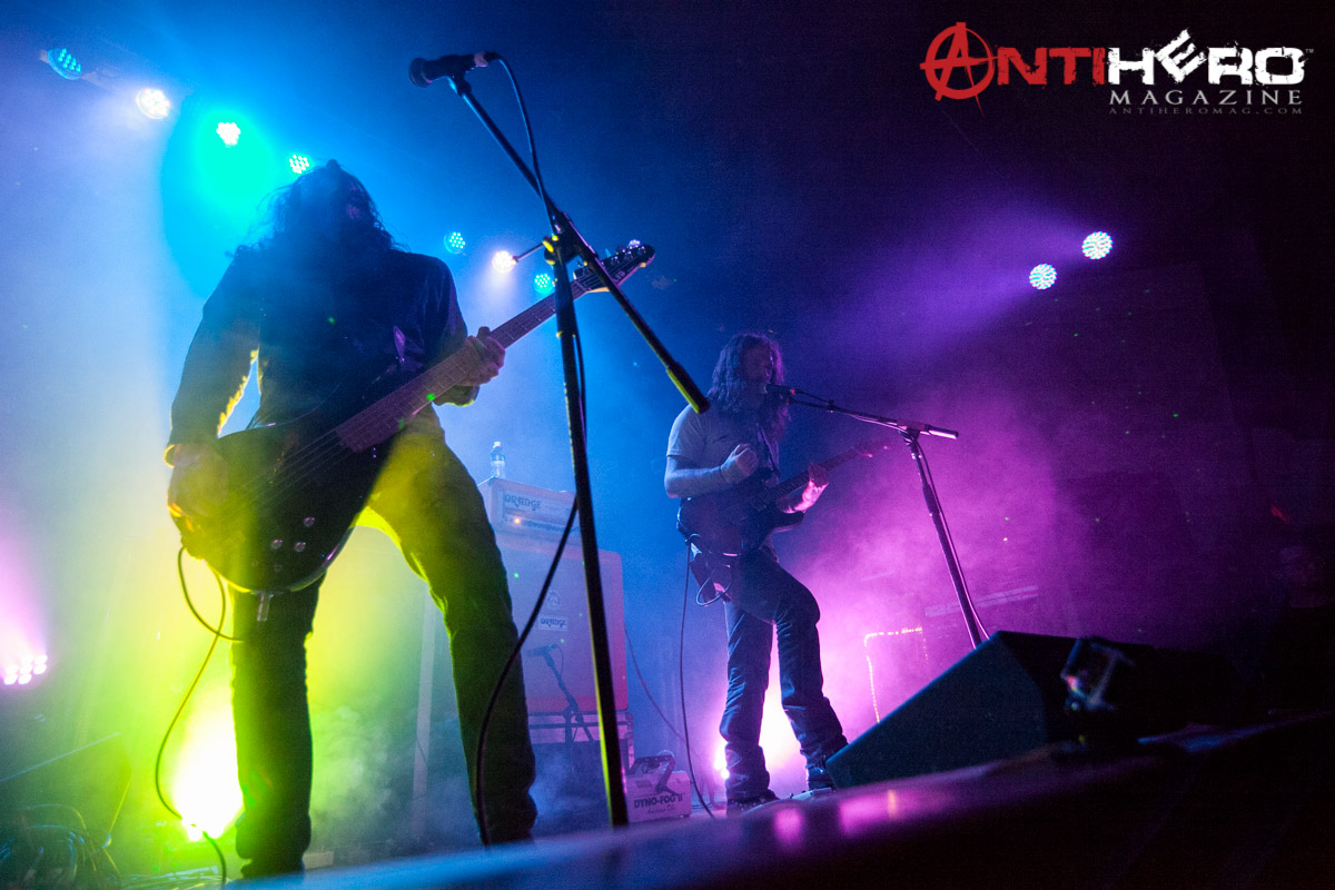 Based out of Chicago, Illinois, The Atlas Moth delivered an unique blend of sludge, doom, and psychodelic metal when they opened up for Between The Buried And Me at the Granada Theater in Lawrence, KS. Although The Atlas Moth‘s lighting was challenging and atmospheric, Antihero Magazine photographer Thomas Woroniak captured the following shots from the pit.
