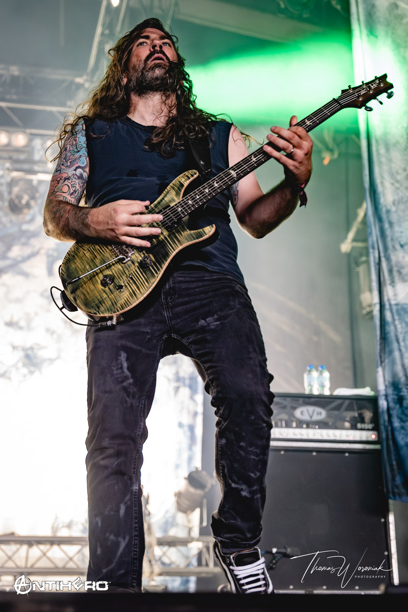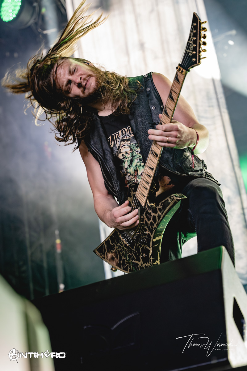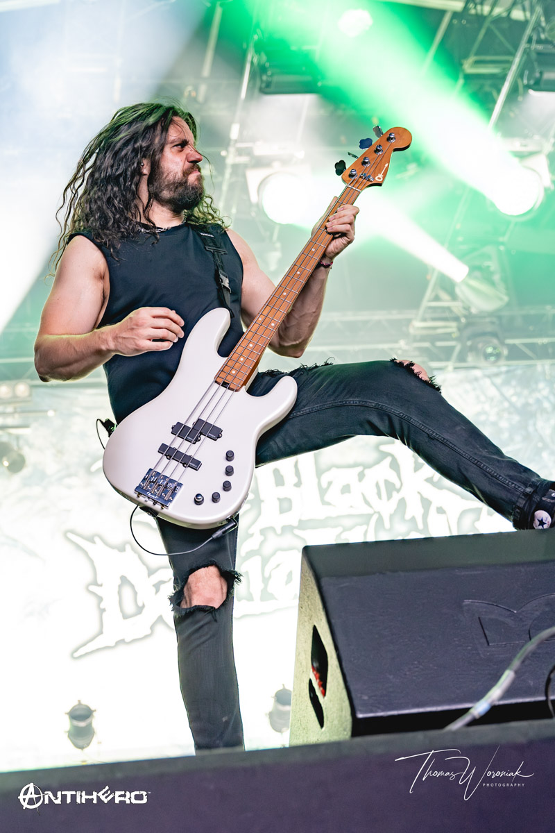 At Hellfest 2024, American melodic death metal stalwarts The Black Dahlia Murder delivered a ferocious performance on the Altar stage, reaffirming their status as one of the genre’s most electrifying live acts. Captured through the lens of Thomas Woroniak Photography for Antihero Magazine, the band’s set was immortalized in striking detail, highlighting their unrelenting energy, precise musicianship, and dynamic stage presence.