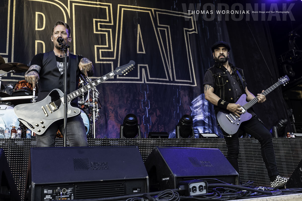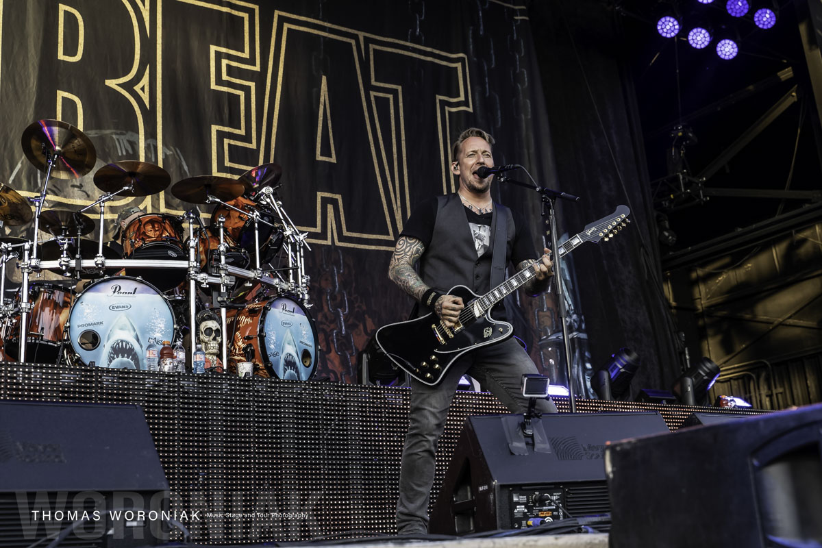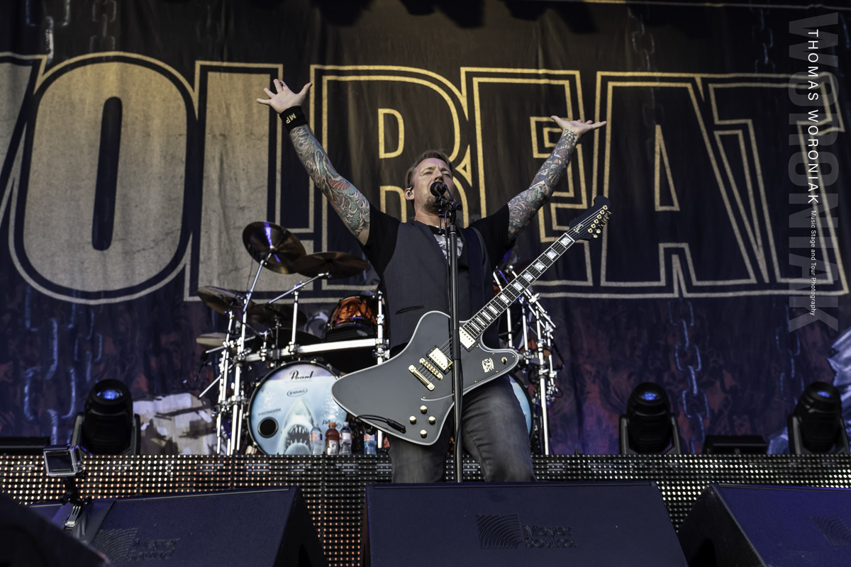 Volbeat rocked the crowd at the Providence Medical Center Amphitheater (Sandstone) in Bonner Springs, KS, as part of the Knotfest Roadshow 2019. Check out the photos by Thomas Woroniak Photography below!