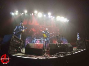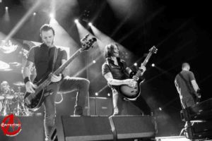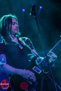 Well, from the outset, albeit a new song to open their set, Alter Bridge were straight out of the starting blocks like an Olympic sprinter. Vocals, unfortunately, on the first two set numbers were a little lost in the mix. No doubt singer Myles Kennedy was pouring his heart and emotions into his delivery but his efforts were largely lost to even ourselves in a prime seating location. Sound gremlins fortunately had been extinguished by track 3, and “Addicted to Pain” could fully deliver its sonic majesty to the packed Manchester Arena. “Ghosts of Days Gone By” saw an enthusiastic audience sing a long, and the sound levels were all tweaked and sounding now close to perfection. It was to the credit of the new album’s quality that numbers such as “Come to Life” and “Crows on a Wire” integrated well into the setlist with the older and more recognisable tunes.