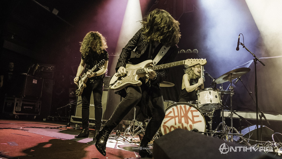 Opening tonight’s proceeding hailing from Sheffield was Cellar Door Moon Crow. The bearded brothers exploded onto the stage and played to an ample crowd. I can’t tell them apart, but the drummer turned out to be a multi-instrumentalist who delivered a meteoric performance while sharing vocal duties with his guitarist and lead vocalist brother. He too delivered forceful riffs and epic solos that had the crowd gripped from the outset. The unashamedly short set excited the crowd which had them screaming for more.