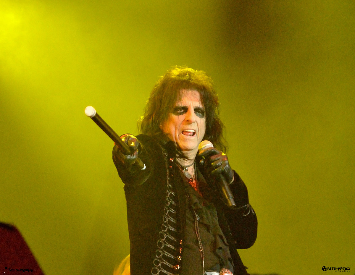 Alice Cooper was the rightful show headliner – an act who I have seen many times over the years. Cabaret and some high-quality tunes was predicted and duly served up to the delight of a now packed Manchester Arena. Featuring a band top-heavy on guitars and energy, the youthful element certainly kept the old master fired up with their onstage enthusiasm. The usual visuals were in attendance – expected yes, but still always working in terms of sparking the audience’s focus and attention. Old hits were played side by side with tracks from Alice’s latest and in my opinion one of his best albums, Paranormal. Alice has been in the game a long time and knows exactly what he is doing. Totally belying his now sixty-nine years old, he should actually have collected his pension quite some time ago. Yet he shows no danger in stopping anytime soon, maybe all the golf he plays is really giving him the “Fountain of Youth”.