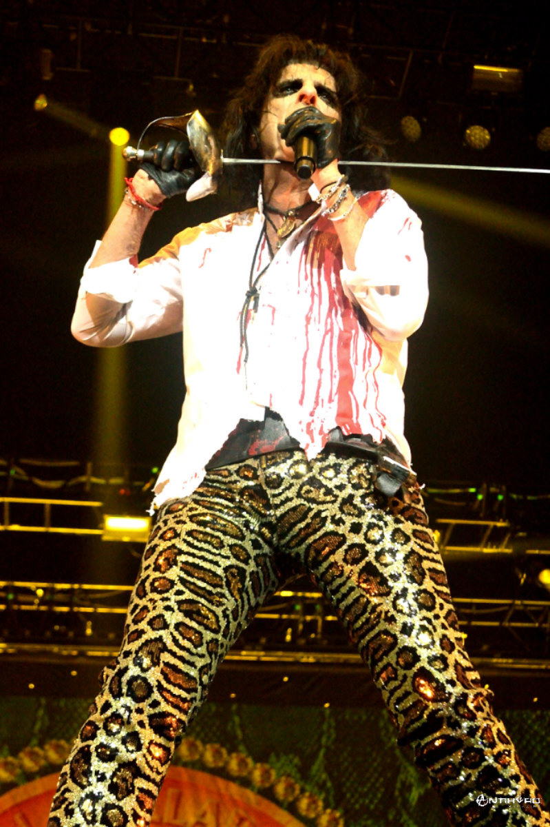Next up were gothic rock legends, The Mission. A band that I was certainly a lot more familiar with having followed them from the eighties right up to attending their headlining Ritz show last year. A greatest hits set was energetically served up by the band to the sadly mostly apathetic audience. There were certainly pockets of Mission fans present in the Arena, but these were isolated in numbers. In terms of the band’s musical output I can have no complaints at all as hit followed hit.It was just a pity that the usually passionate response that this fantastic band generate from their adoring masses and legions of fans fell on deaf ears. The Alice Cooper fans did not appear to embrace them at all. This lived up to my initial reservations that I felt their inclusion with Alice Cooper on the Arena package would not be a great marketing idea.