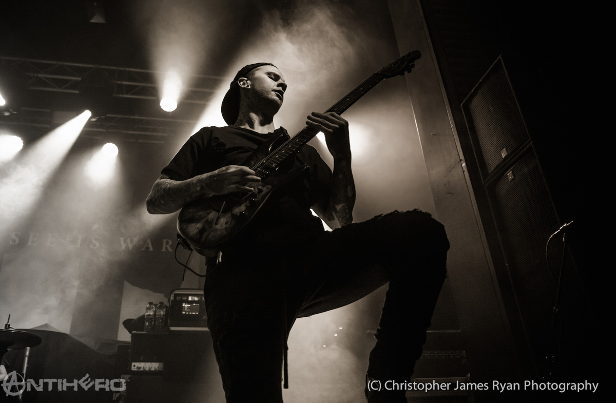 When they hit the stage a few hours later after I missed the opening band it was with a ferocity that I wasn’t quite expecting. Their albums (I had done my homework pre-interview) had shown a surprising diversity of styles and genres but it quickly became clear that live they had decided to focus on their heavier tracks. It was a very emotional set of dates for both the band and their fans. Oli Herbert was an integral part of All That Remains from their inception right up until the release of their latest album “Victim of the New Disease“. Phil talked extensively about him, and also the difficulties in promoting the album and continuing on without him. On the set of dates, his place would be taken by Jason Richardson, who did a brilliant job in replicating the intricacies of Herbert’s lead work.