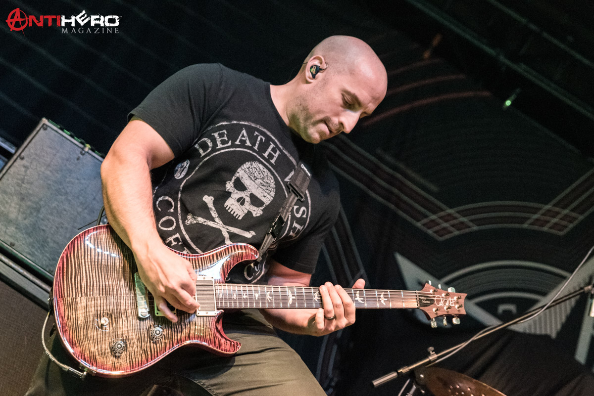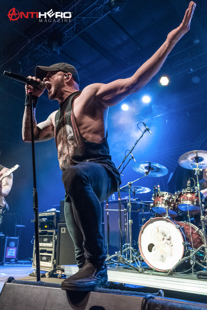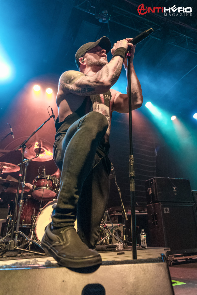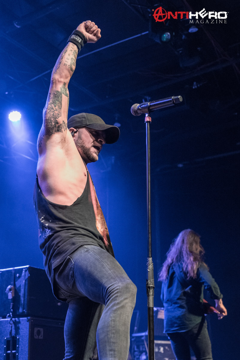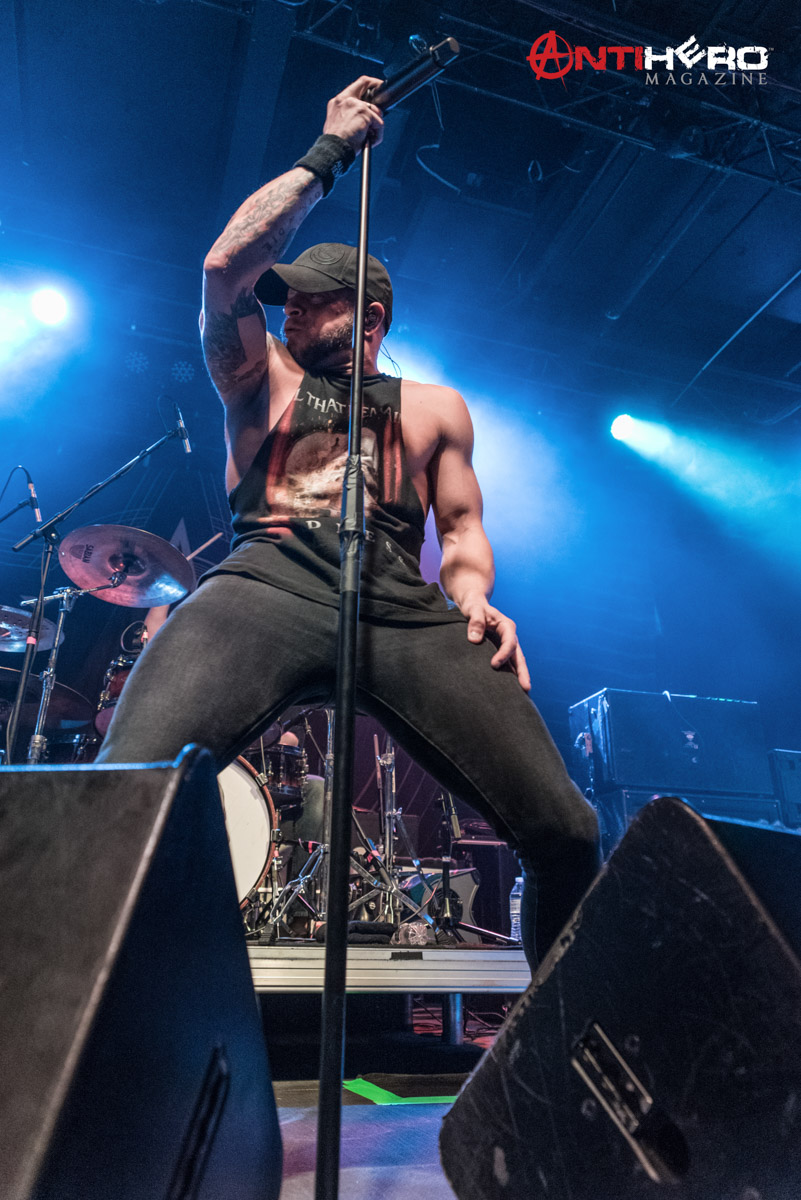 After the dust settled from Sons of Texas’ set, it was time for All That Remains to hit the stage. The band played a mixed setlist, some of their older songs including, “This Calling” and “Two Weeks”, but also including some of their more radio-friendly songs like, “What If I Was Nothing” and their recent cover of Garth Brooks’ “Thunder Rolls”. Early in the band’s set, they experienced some technical difficulties, mainly on the rhythm guitar and the bass. But once the crew sorted out the issues it was full steam ahead. The band delivered one of the best performances that they possibly could, knowing that they were going into a 15-day stretch of back to back shows. They didn’t hold back anything.