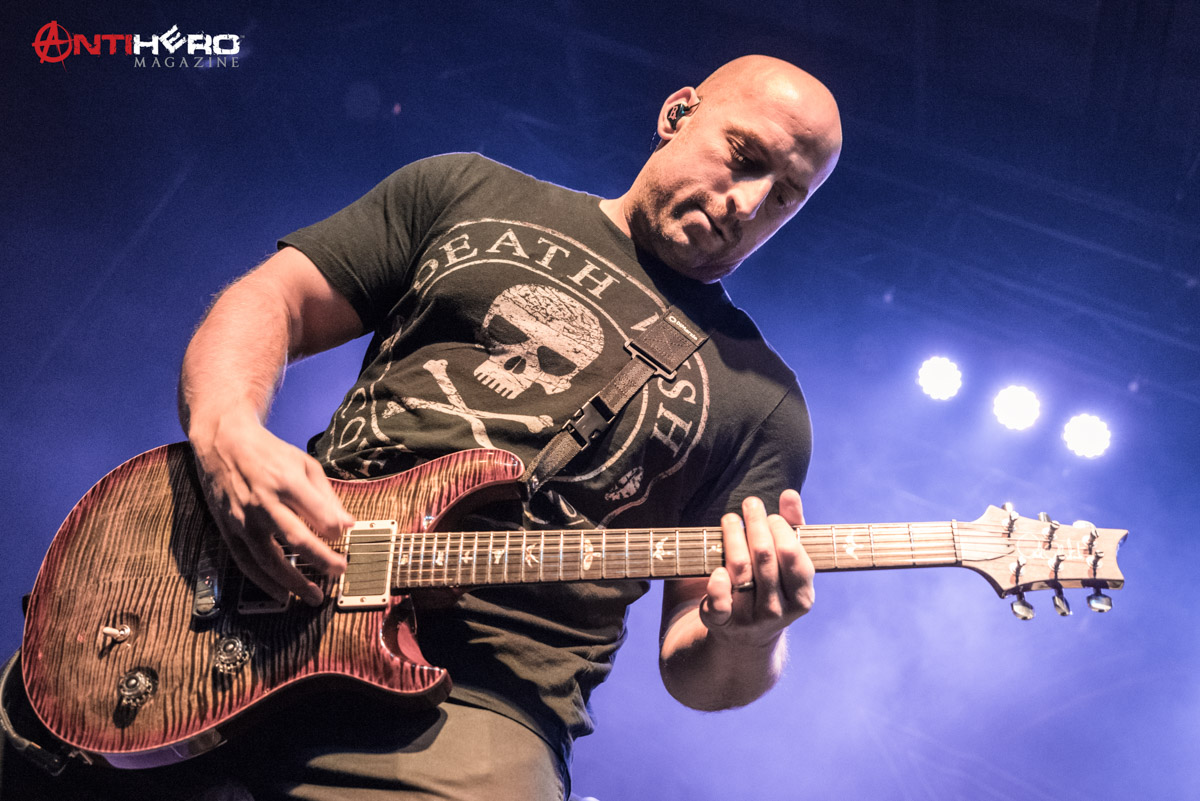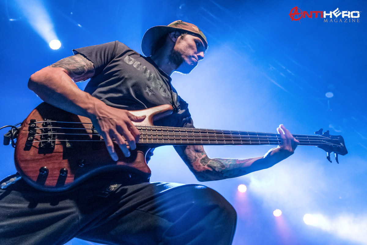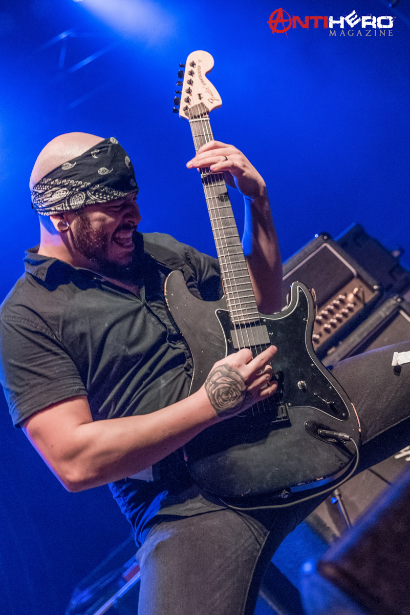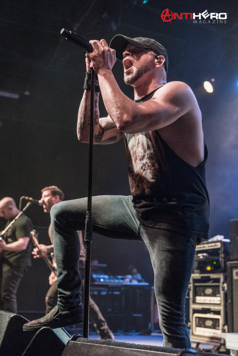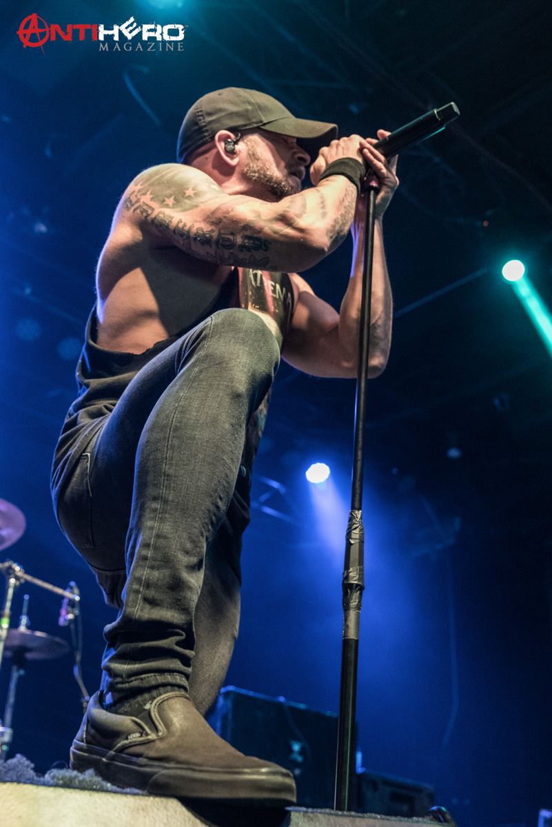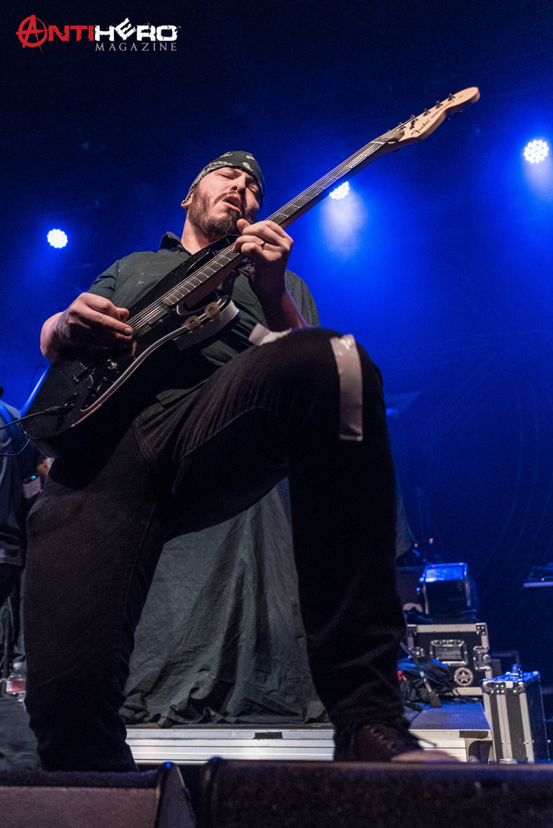 After the dust settled from Sons of Texas’ set, it was time for All That Remains to hit the stage. The band played a mixed setlist, some of their older songs including, “This Calling” and “Two Weeks”, but also including some of their more radio-friendly songs like, “What If I Was Nothing” and their recent cover of Garth Brooks’ “Thunder Rolls”. Early in the band’s set, they experienced some technical difficulties, mainly on the rhythm guitar and the bass. But once the crew sorted out the issues it was full steam ahead. The band delivered one of the best performances that they possibly could, knowing that they were going into a 15-day stretch of back to back shows. They didn’t hold back anything.