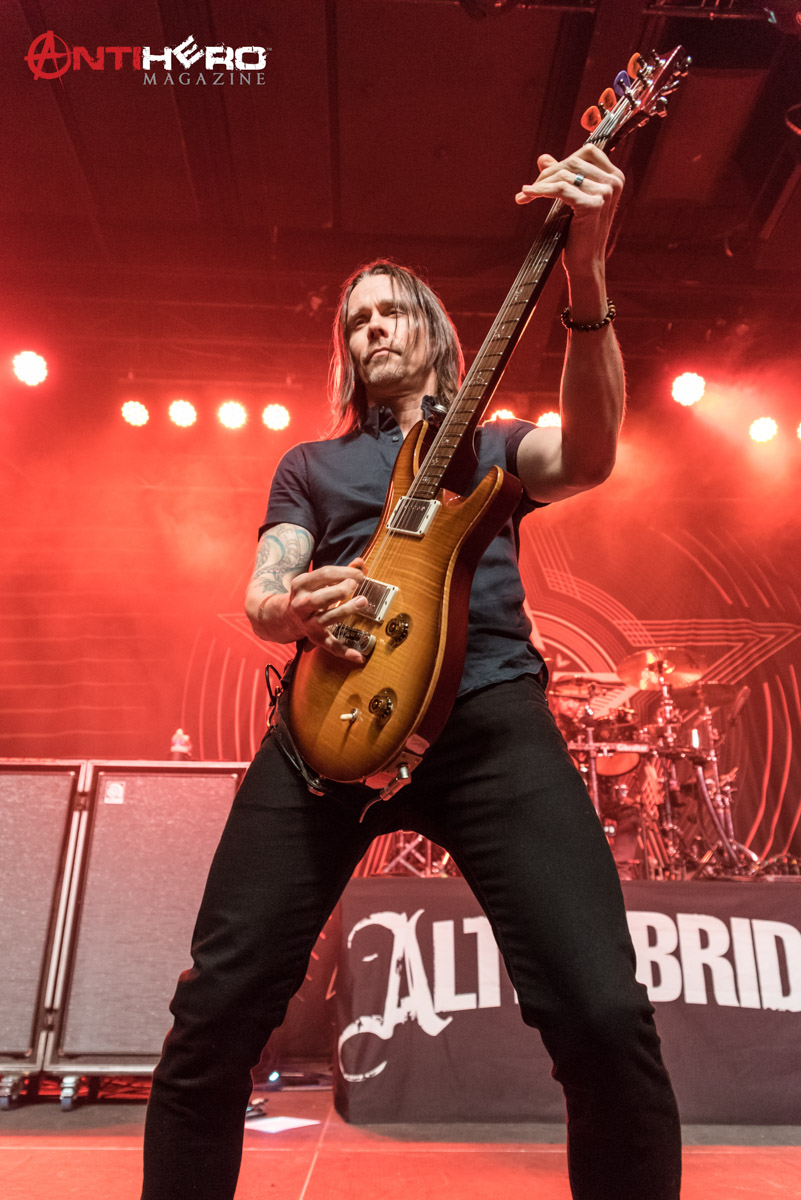 After the stage was cleared, the lights dimmed, and Alter Bridge took the stage. Now, this was my first time seeing this band live, and I can give them credit for a few things. First, their lighting set up is insane. They collectively put on a visual show for the audience and that counts a lot in my book. It seems like for them it is about creating an all-around experience for the fans. When I had the opportunity to talk to frontman Myles Kennedy a few weeks back, we discussed just this, so I had an idea of what I was walking into on this one. Secondly, the band poses for fucking photos. As a multimedia journalist, this makes my life so much easier and it gives me great opportunities to get amazing pictures of the acts on stage. The band played for about an hour, giving the fans exactly what they paid for – a greatest hits collection for their enjoyment.