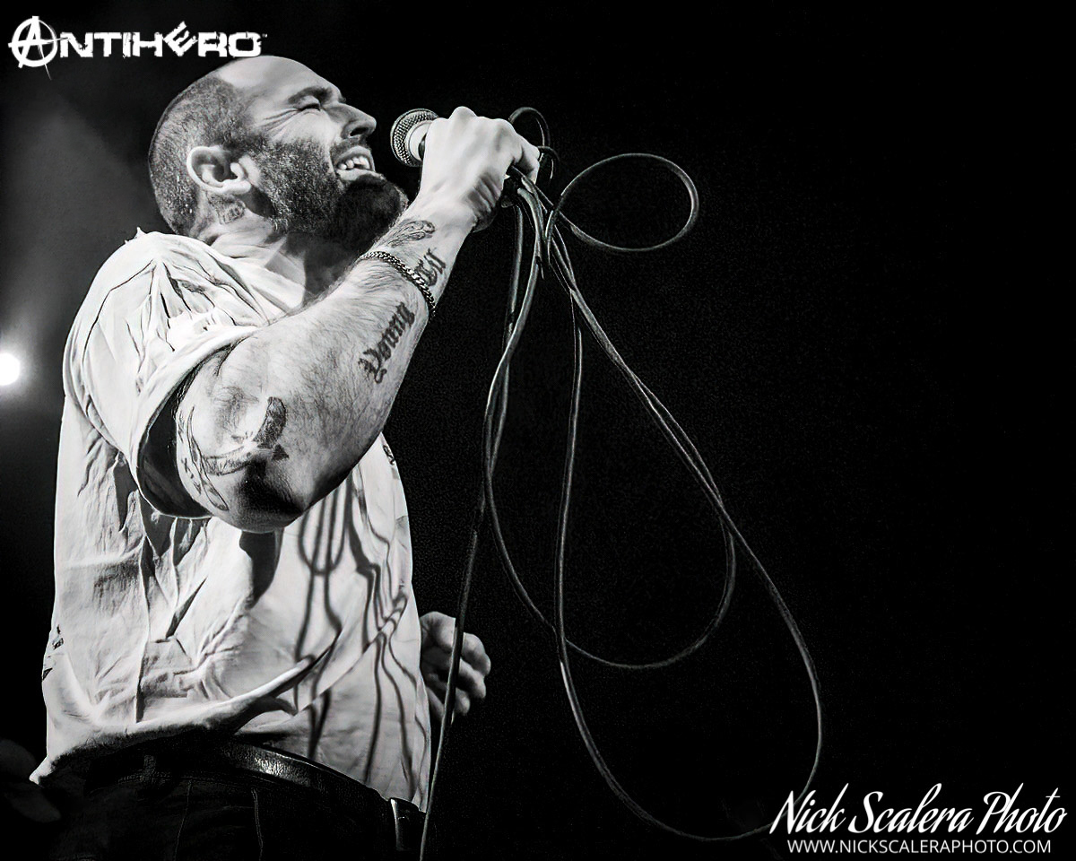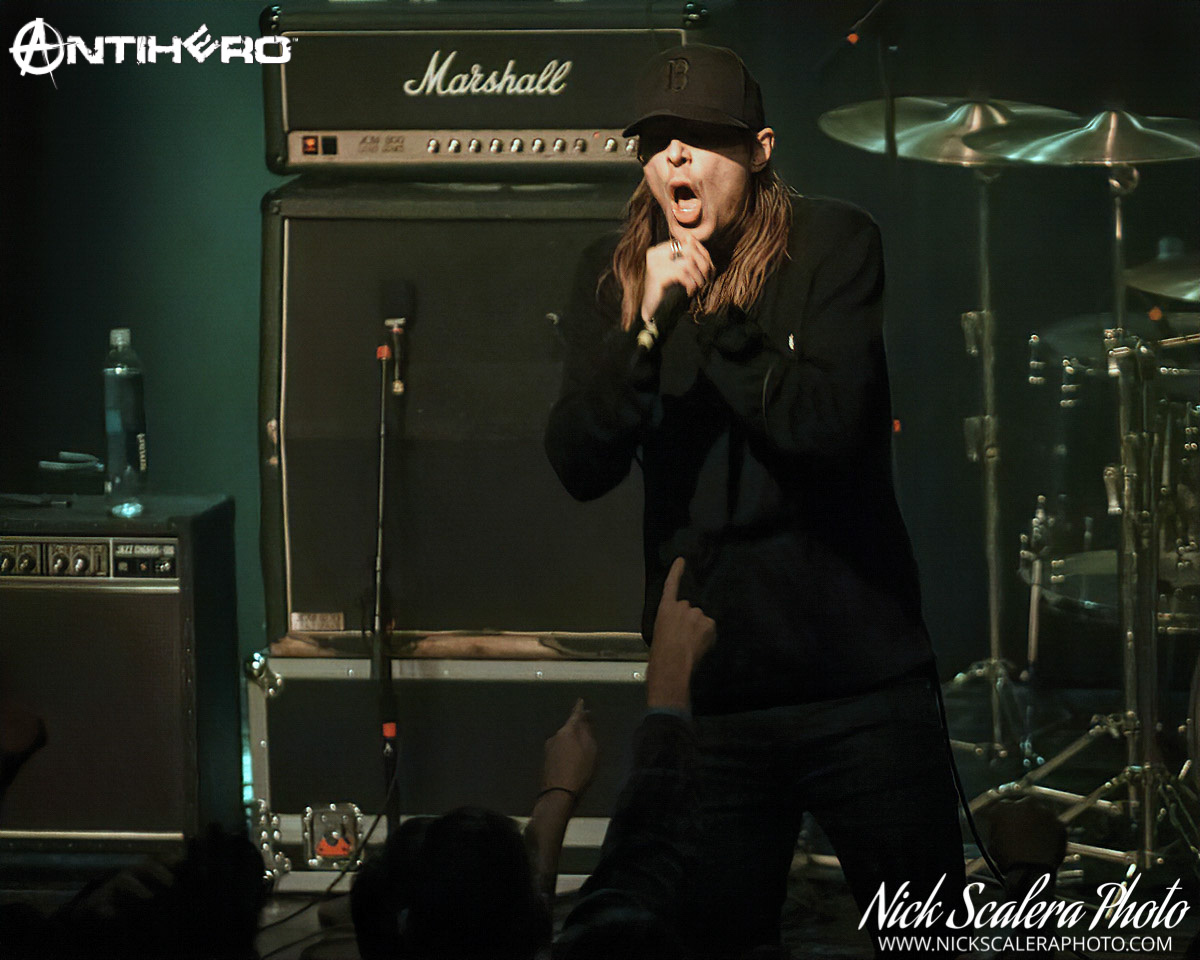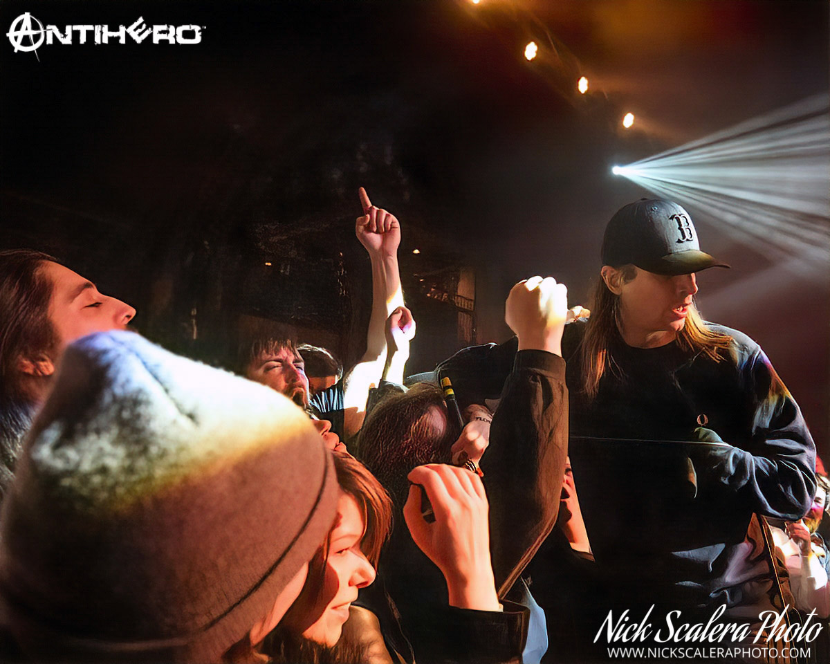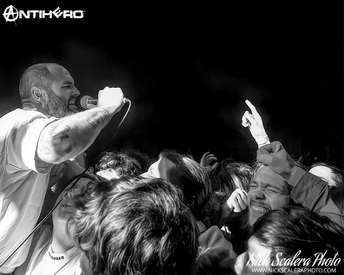 Portland, Maine in the year 2000. The band is credited with setting the precedent for the band’s DIY ethic, volatile musicianship, and bleeding-heart lyricism. The band broke up in 2004 and reunited in 2011 over the 20-year span. Eishold is a poet and author as well. American Nightmare’s lineup includes Wesley, bassist Josh Holden, guitarist Brian Masek and drummer Alex Garcia-Rivera (as well as touring guitarist Jim Carroll). Wesley screamed into the microphone and entered the crowd by jumping up and having fans scream into the microphone taking turns playing off its energy. Wesley had said to Philadelphia, “You guys must be pretty messed up people to like our music!”. Fans screamed back “Yeah, we are!”.