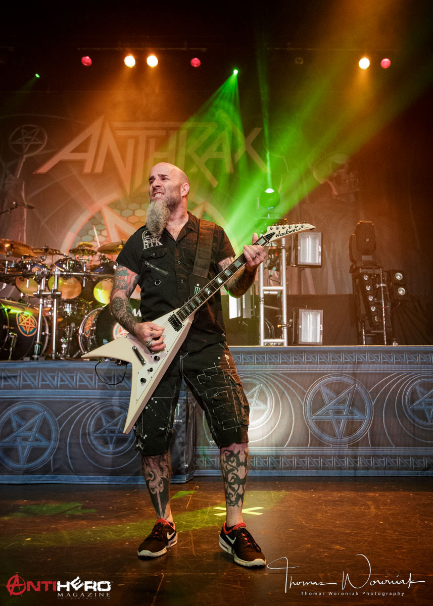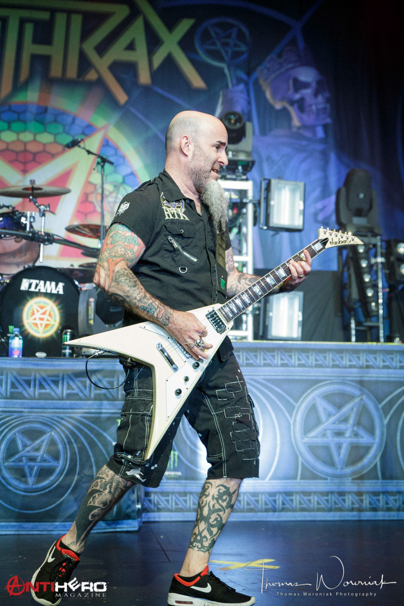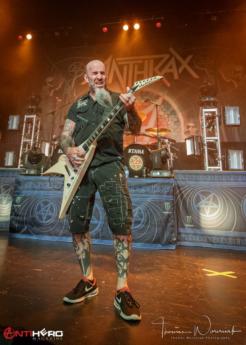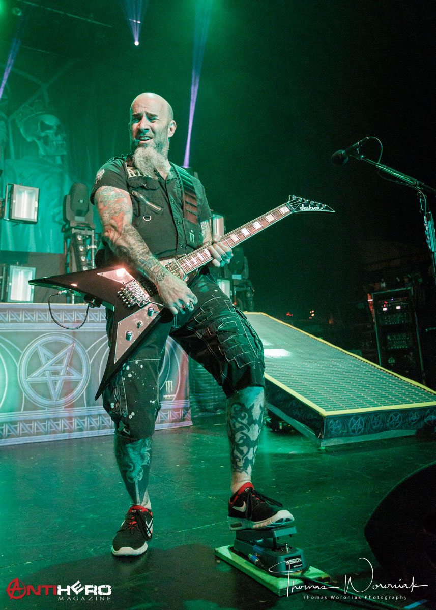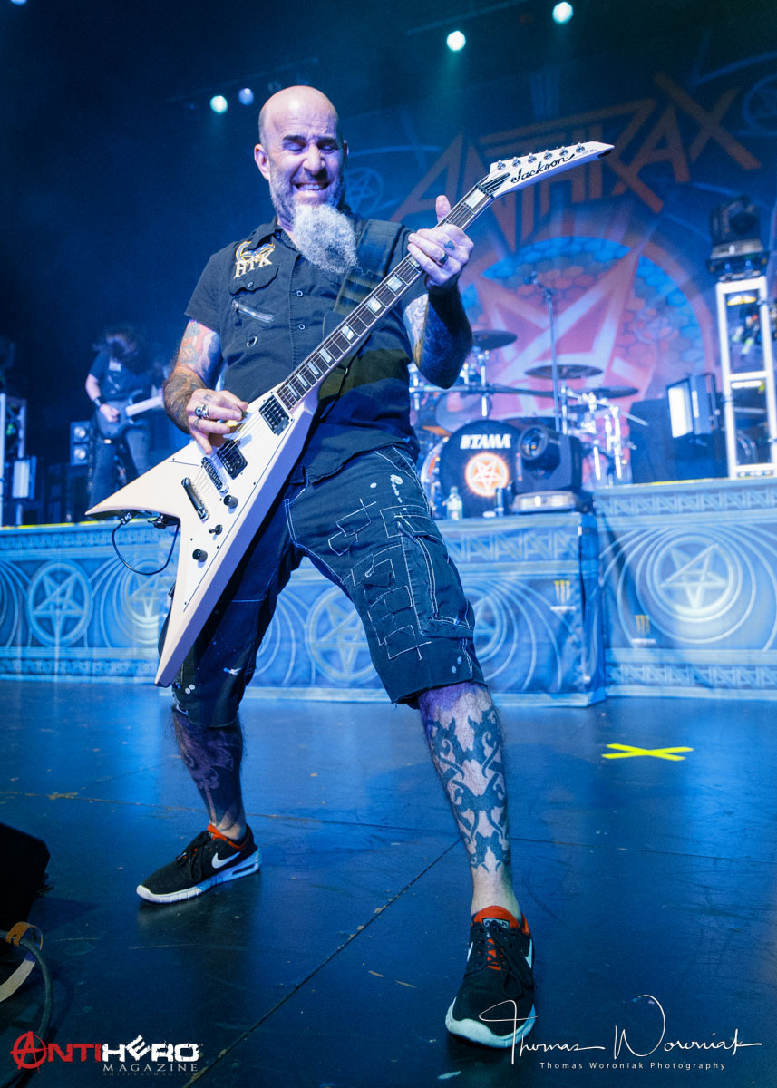 When you think of a perfect set of Anthrax songs, you’d like to hear classics such as “NFL (efilnikufesin)”, “I Am The Law”, “Caught In A Mosh”, “Among The Living” and “Antisocial” in the set, and Anthrax did not disappoint, including all of those classics, plus songs off the latest studio releases, 2013’s Worship Music and 2016’s For All Kings; “Fight ‘Em Til You Can’t” off of Worship Music, and “Blood Eagle Wings” and “Breathe Lightning” from For All Kings are the newest offerings from Anthrax’s catalog. Photo: Thomas Woroniak