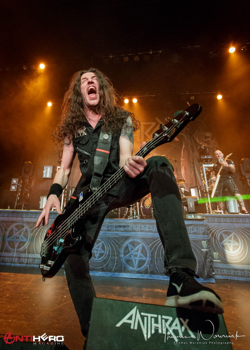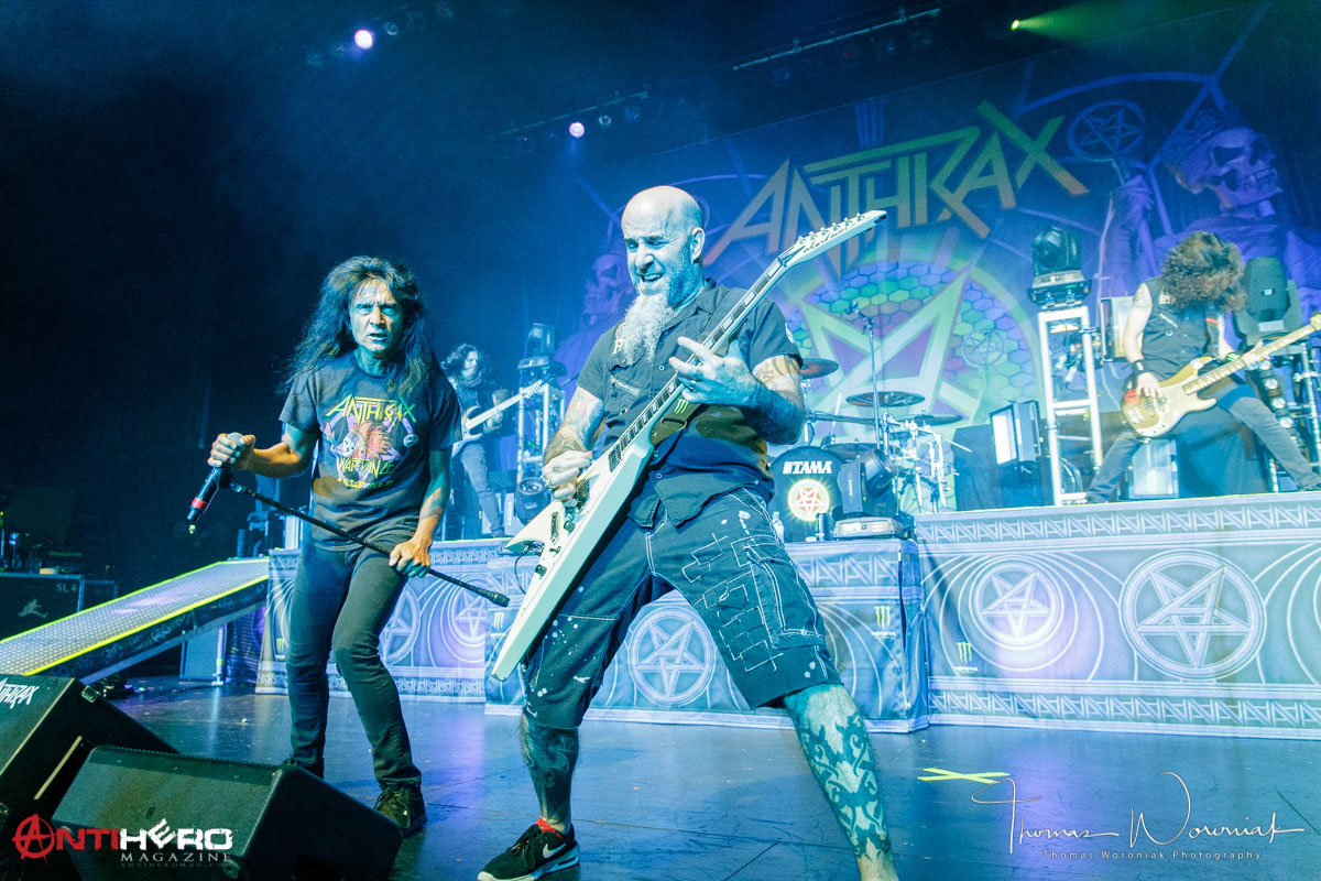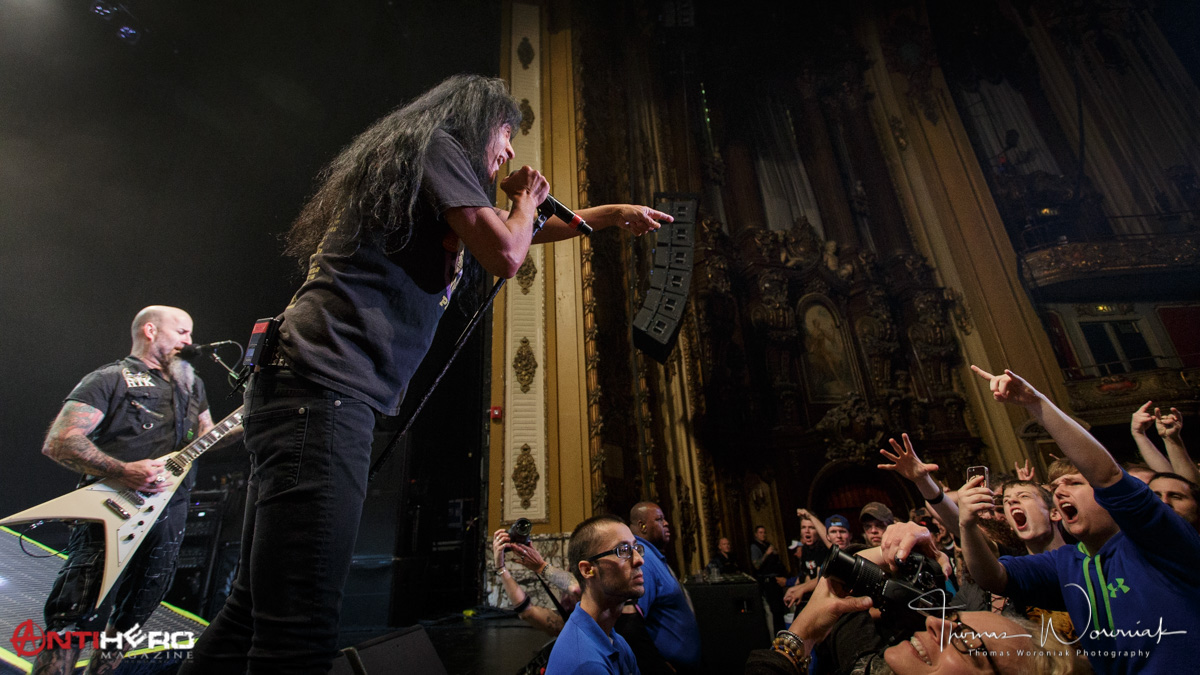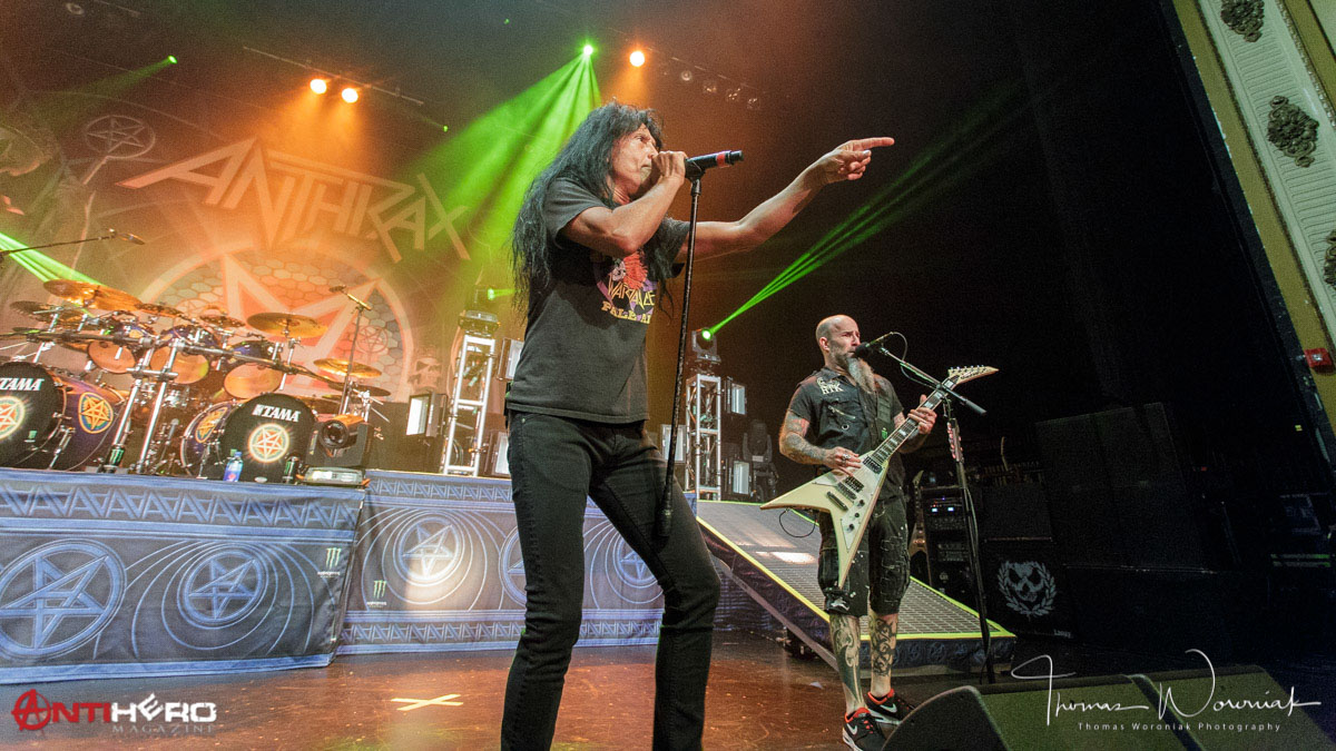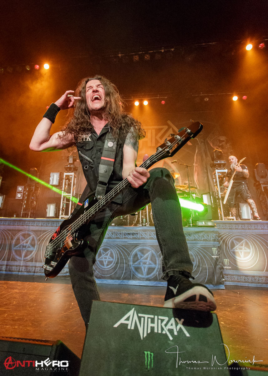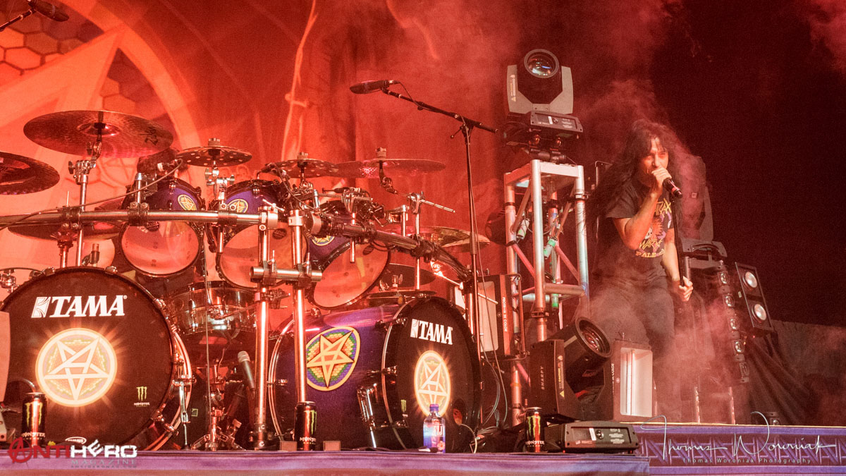 When you think of a perfect set of Anthrax songs, you’d like to hear classics such as “NFL (efilnikufesin)”, “I Am The Law”, “Caught In A Mosh”, “Among The Living” and “Antisocial” in the set, and Anthrax did not disappoint, including all of those classics, plus songs off the latest studio releases, 2013’s Worship Music and 2016’s For All Kings; “Fight ‘Em Til You Can’t” off of Worship Music, and “Blood Eagle Wings” and “Breathe Lightning” from For All Kings are the newest offerings from Anthrax’s catalog. Photo: Thomas Woroniak