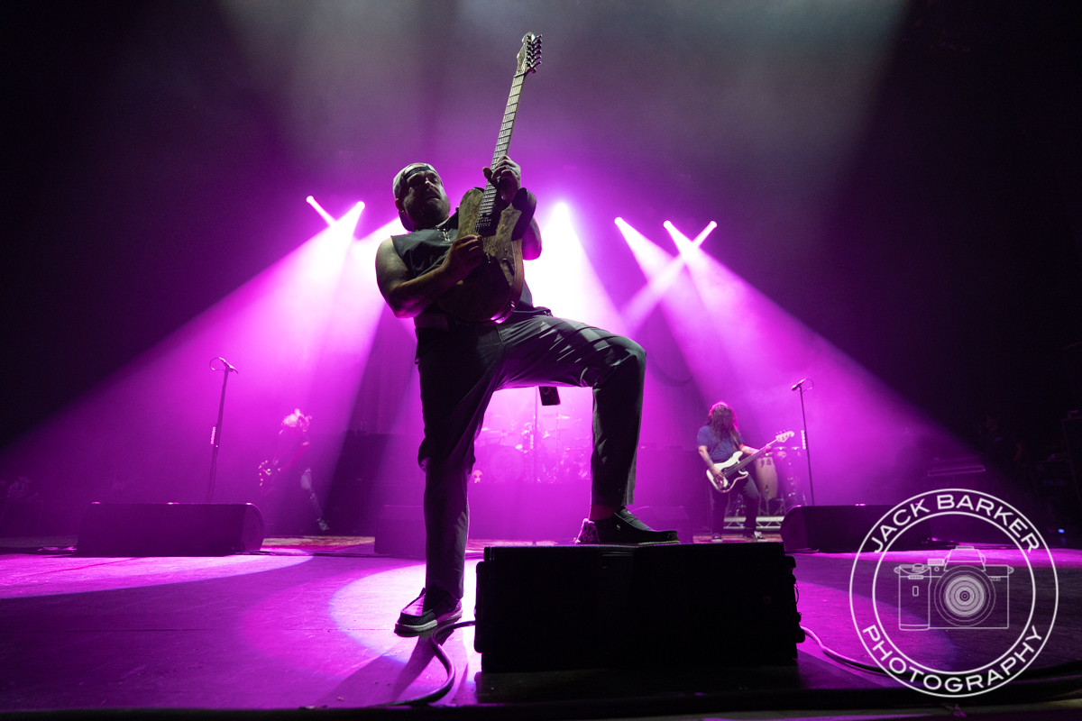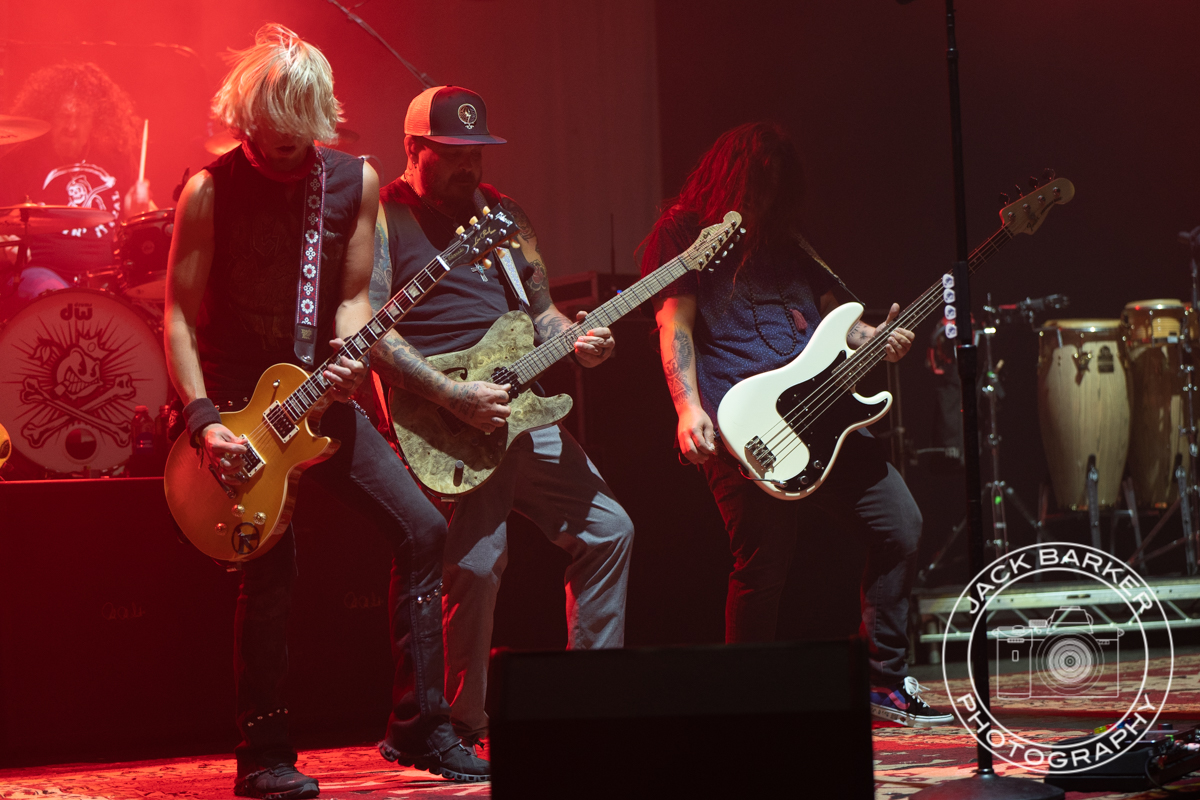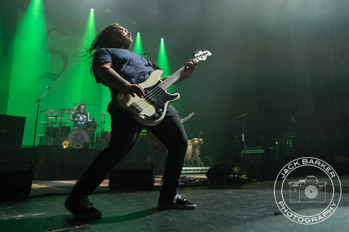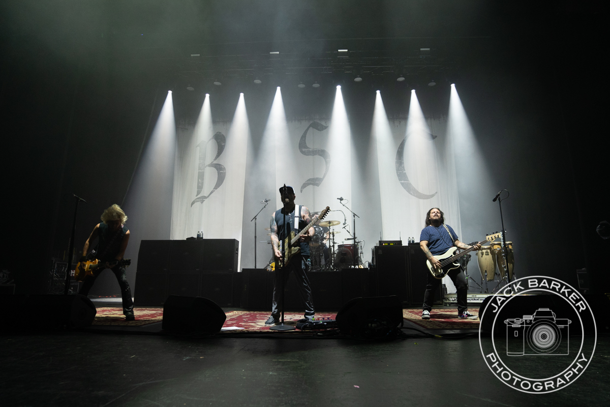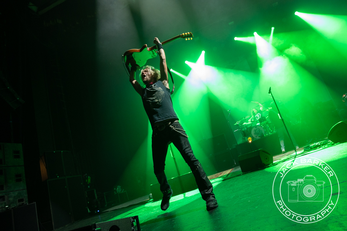 With fans pouring into the stunning art deco venue, tonight’s support band Kris Barras Band took to the massive stage to start their set. Taking the possibly risky option of opening with a brand-new track “Dead Horses” released less than a week ago, their gamble seemed to have paid off as there were a few people on the barrier singing along and those that had yet to hear the new track were nodding their heads along to the beat. That was until technical difficulties hit towards the end of the song when lead vocalist Kris Barras’s microphone and guitar suddenly stopped working. Acting like a true professional Barras made light of the situation stating, “I just thought you thought we were shit” and joking that someone had forgotten to pay the electricity bill. Within a minute everything was fixed, and the band were able to continue. Throughout the rest of the bands set they treated us to renditions of tracks from their previous three albums as well as several new tracks and even threw in a cover of “Going Down” by The Alabama State Troupers from good measure.