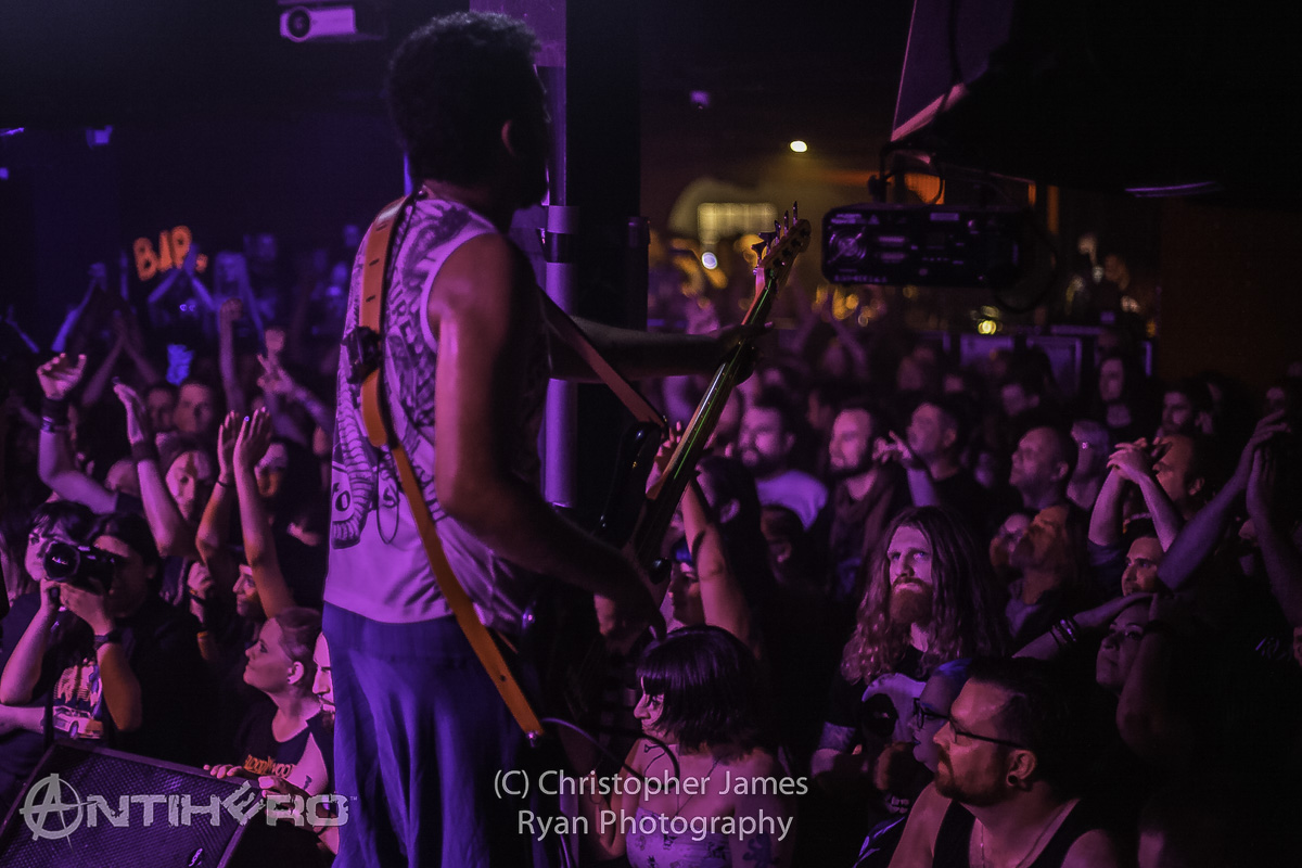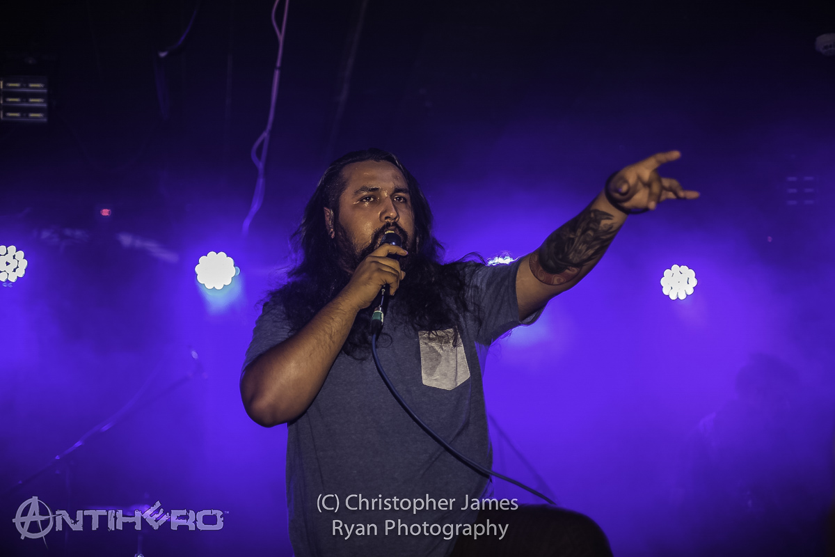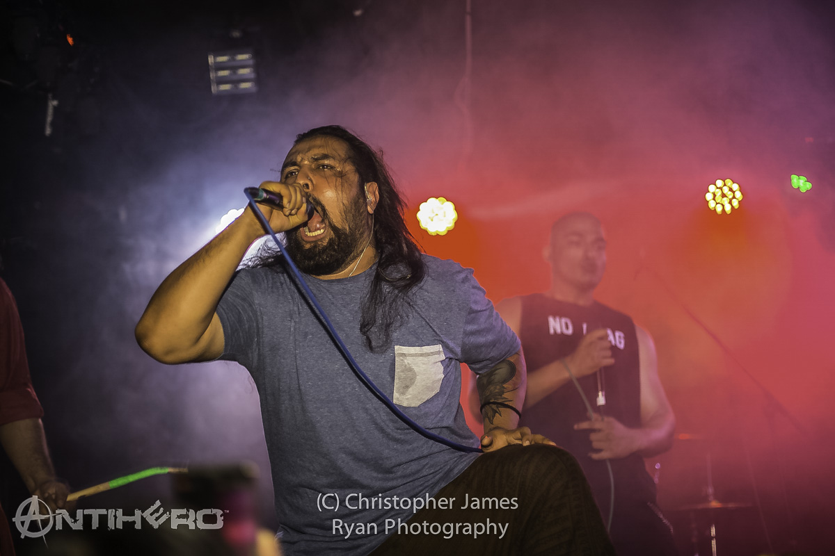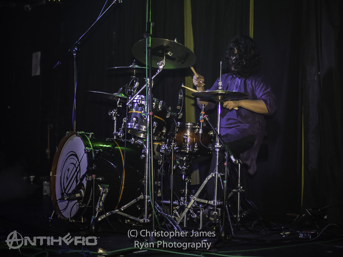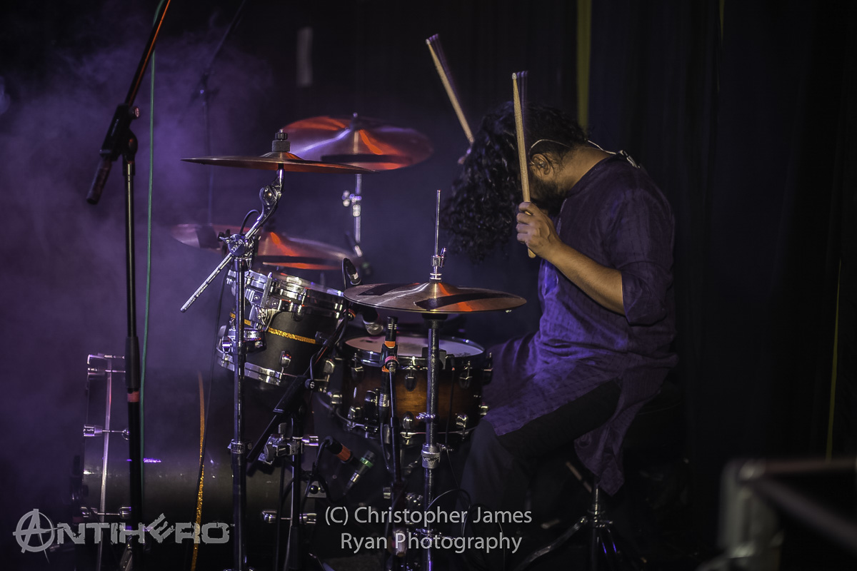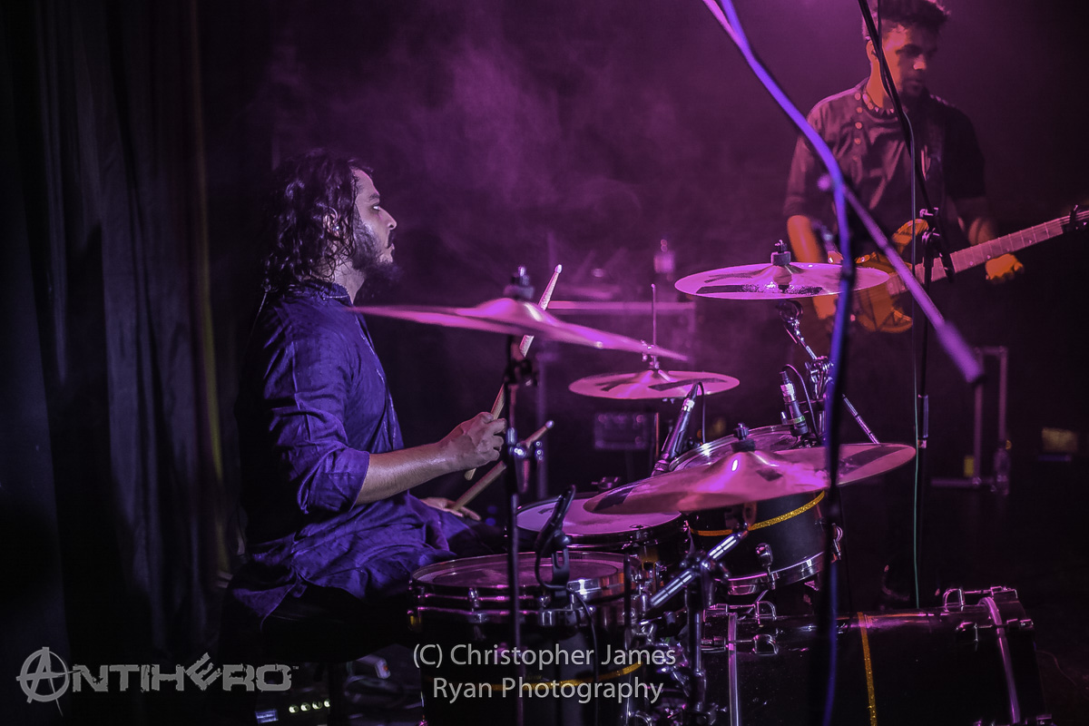 Due to work commitments, unfortunately, I was unable to arrive in sufficient time to catch the three support bands. However, by the time I arrived at Rebellion, it was pretty packed and close to a sellout show. I feel that at this point it is prudent to mention that I have seen many other bands with a considerable musical legacy play the same venue and fail to pull in the numbers that this band did -after only having a total of two songs available to the public. I squashed myself into the venue and fortunately managed to bag a raised position just beside the green room and sound mixing desk which afforded me a great view of the stage. After a short wait, the band literally exploded onto the stage in a ball of energy, all fighting for space on what appeared to be a stage that was far too small to contain all the energy that the Raj metallers offered up to a hugely enthusiastic audience. The combination of natural band instruments along with traditional choices worked well in a live setting. Prior to the show, I had expressed some reservations that the more unique elements of their sound would have been swamped with noise to their detriment. Fortunately, this was not the case as a great sound mix fused the two together in a harmonious combination.