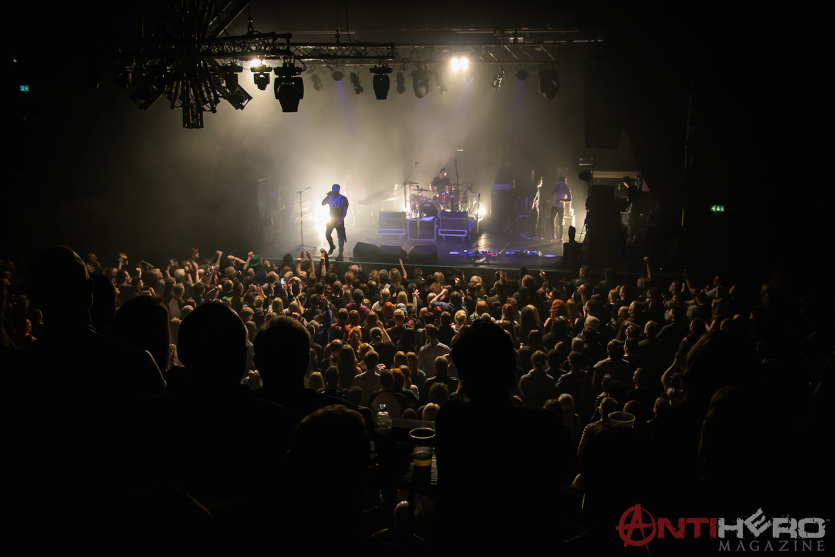I must admit to being a newcomer to the sounds of Blue October. Always open-minded to sonically trying new things, on checking out their back catalogue I was quite surprised to be familiar with a couple of their songs. Hard to define in terms of musical genre or style, their earlier dark sonic efforts had seemed to be replaced in recent times by a more upbeat style, while at the same time extolling a positive message of hope. The original tour had to be rescheduled from September last year, which helped to build up an air of anticipation ahead of the band’s show in Manchester. I had the opportunity to chat to singer Justin Furstenfield prior to the band’s soundcheck and I found him to be a very friendly and affable character. Awaiting admission to the venue, I was surprised to witness quite a diversity in the band’s audience, traversing age and generations.