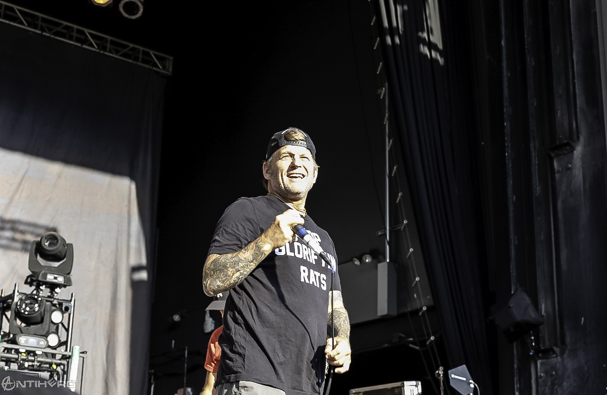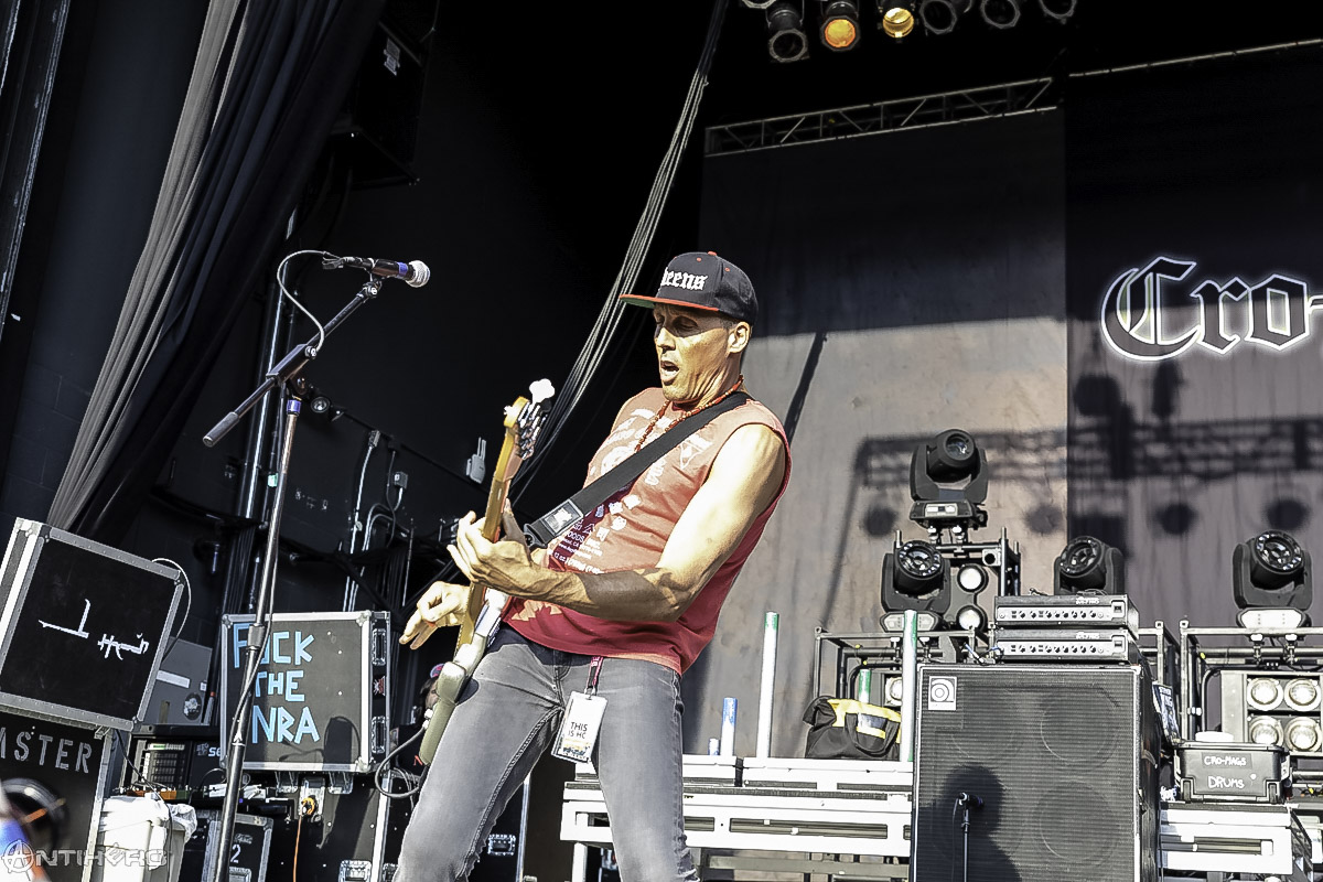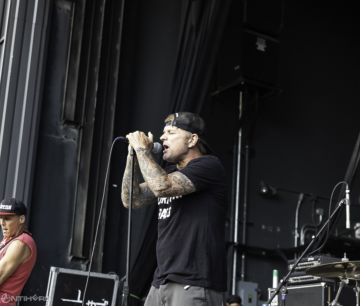 The night was perfect for a show. Not too hot, not too sunny and a light breeze blowing through. Unfortunately for the first act Cro-Mags, that meant it was also a perfect night to attend our state fair. The crowd was a bit sparse for their set. Thankfully that didn’t kill the band’s energy because they went full force with their hardcore set. Singer John Joseph was as bouncy on the stage as I had come to expect. Combine that energy with aggressive guitar riffs and a PMA message and you’ve got the perfect band to start the night off right!