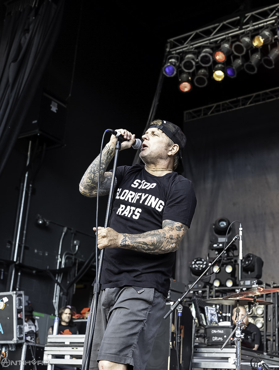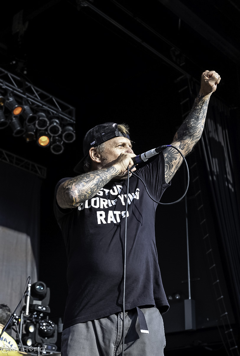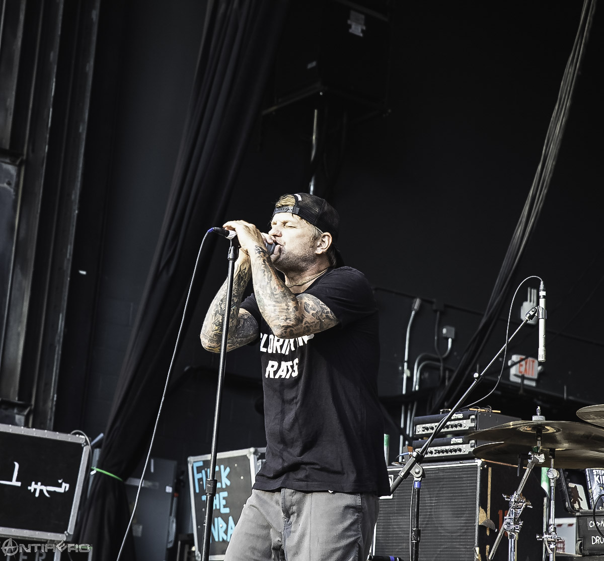 The night was perfect for a show. Not too hot, not too sunny and a light breeze blowing through. Unfortunately for the first act Cro-Mags, that meant it was also a perfect night to attend our state fair. The crowd was a bit sparse for their set. Thankfully that didn’t kill the band’s energy because they went full force with their hardcore set. Singer John Joseph was as bouncy on the stage as I had come to expect. Combine that energy with aggressive guitar riffs and a PMA message and you’ve got the perfect band to start the night off right!