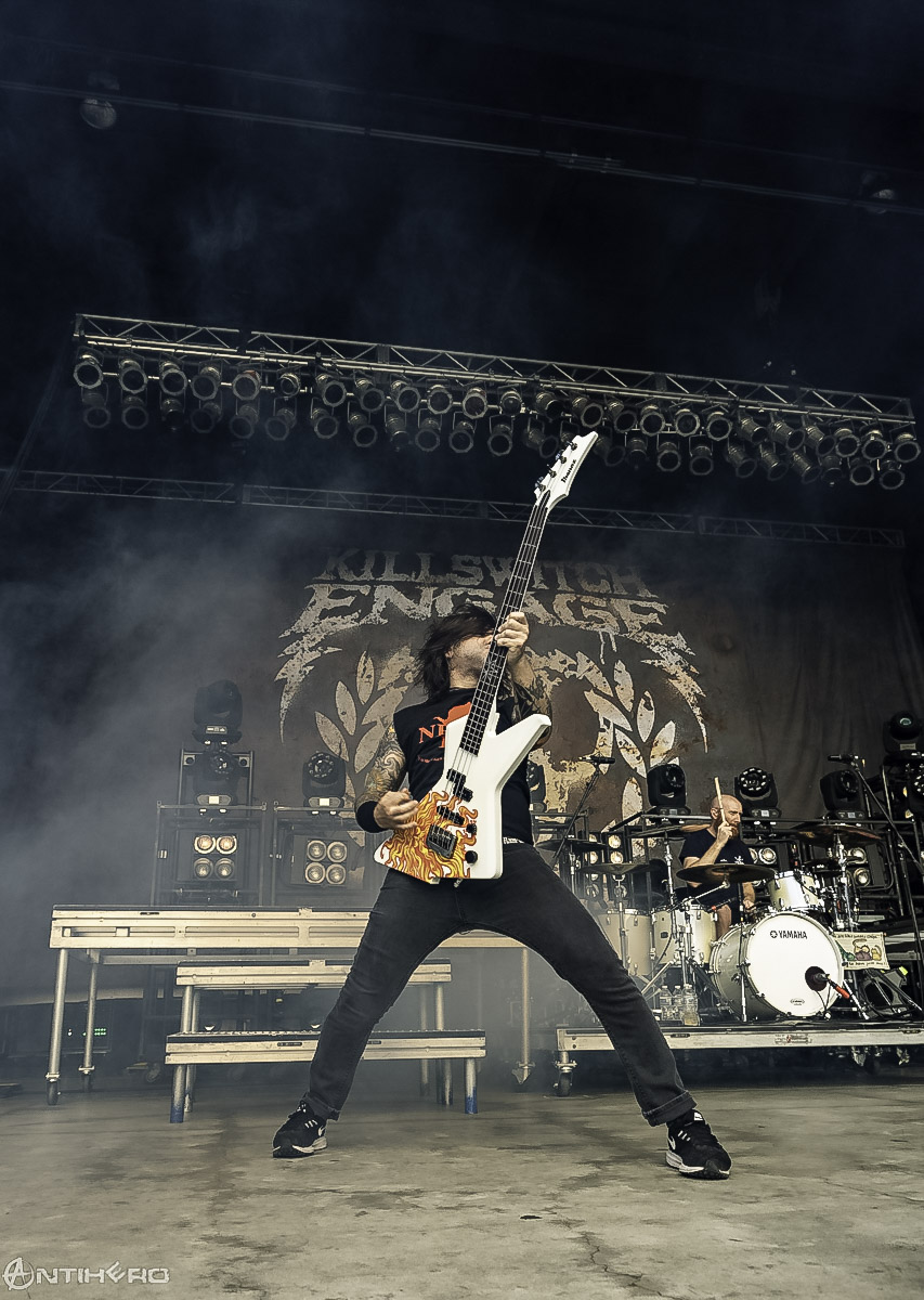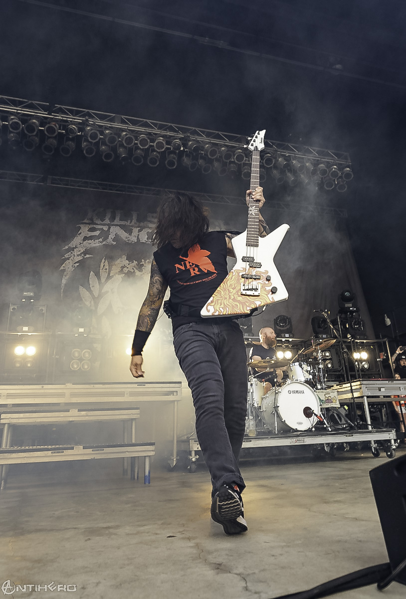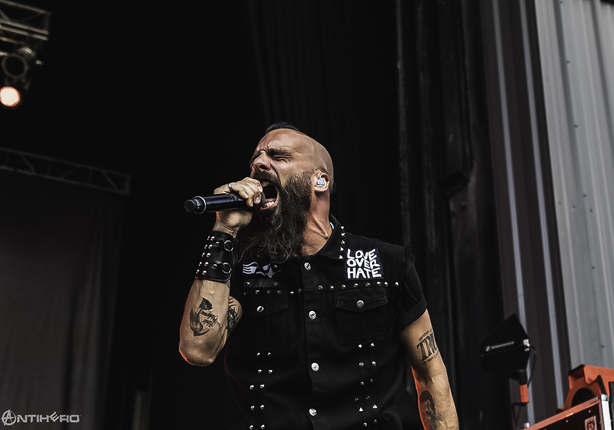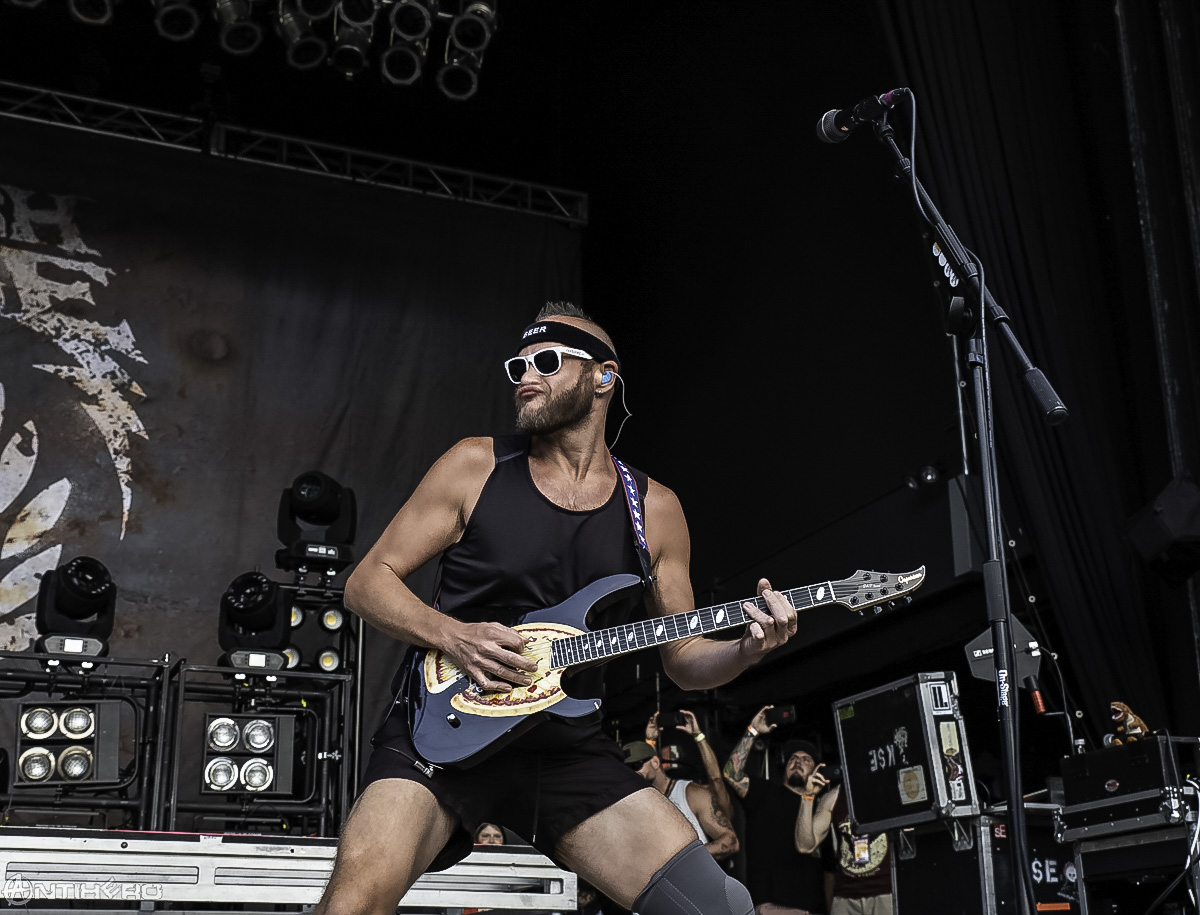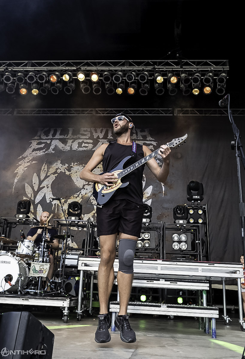 Next up was Killswitch Engage. I’m sure just reading the name will get ‘Holy Diver’ stuck in your head. To say the crowd was pumped to see them is definitely an understatement (the size of the crowd at this point had grown). Throw in an appearance at the soundboard before the set by eccentric guitarist Adam Dutkiewicz and the crowd’s excitement could not be contained. Of course, Killswitch delivered an absolutely killer performance. Even the few kids I saw were loving it. Hair whips, high kicks, duck faces, and just pure metal energy is the best description I can give for their amazing performance.