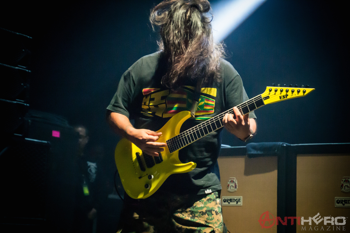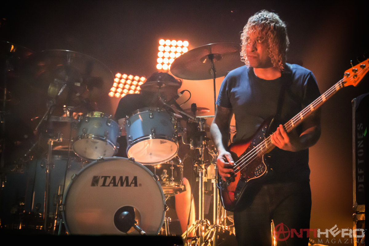 On to the main course of the evening and it was quite clear that the venue was close to capacity as the Deftones hit the stage powerfully opening with a double salvo of heaviness in the shape of “Feiticeria” and “My Own Summer (Shove It)” quickly showing that despite the injury that had caused the band to cancel one show there would indeed be no let up from the energetic frontman. Deftones have long escaped the restrictive shackles of the nu metal label that was once hung around their necks. Subsequent album releases have seen the band musically dipping into a wide and varied soundscape of styles and influences. The latest album Gore again further pushes the bar musically which renders them totally beyond any form of labeling. That album is selectively represented in the set and it’s to the band’s eternal credit that all the newer numbers receive the same fanatical reception as their older classics and anthems.