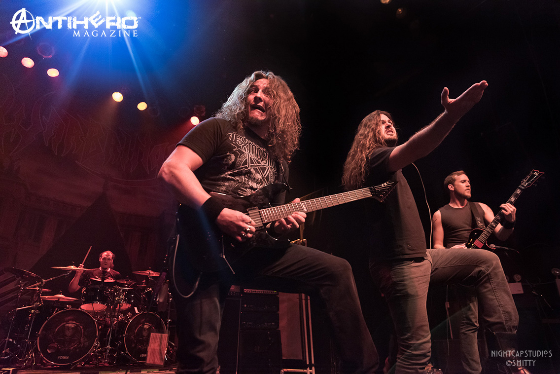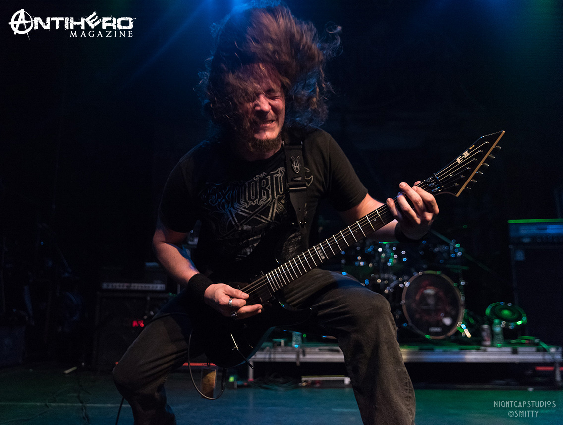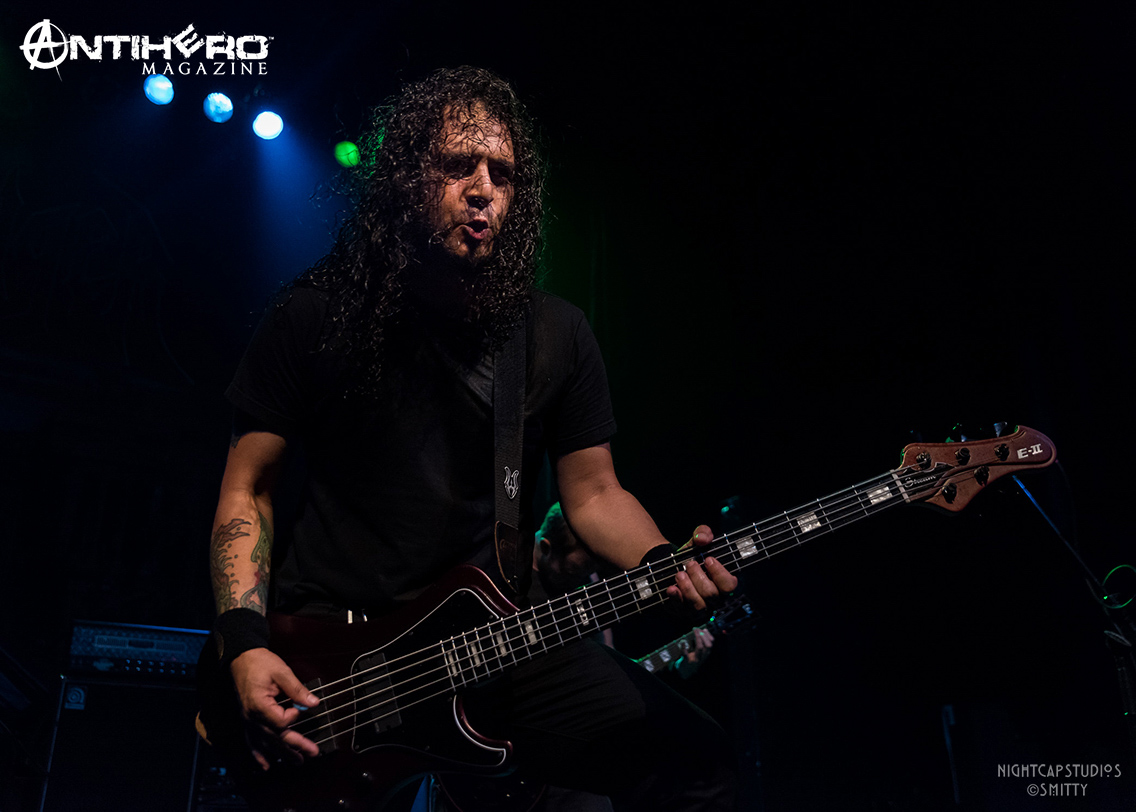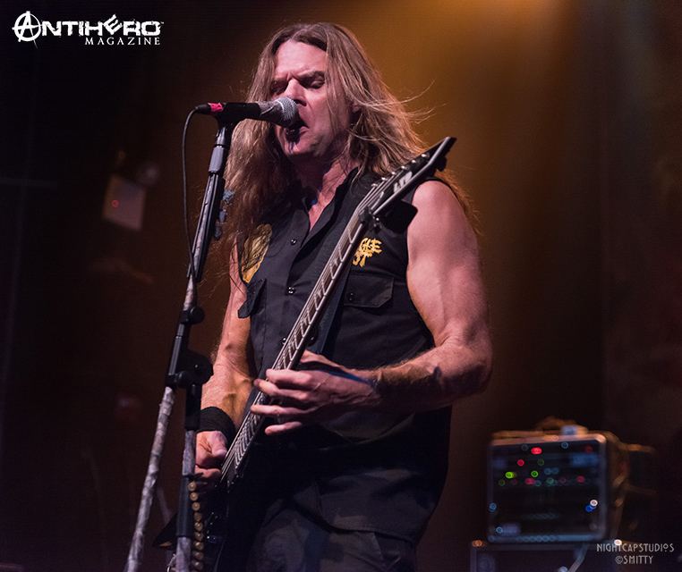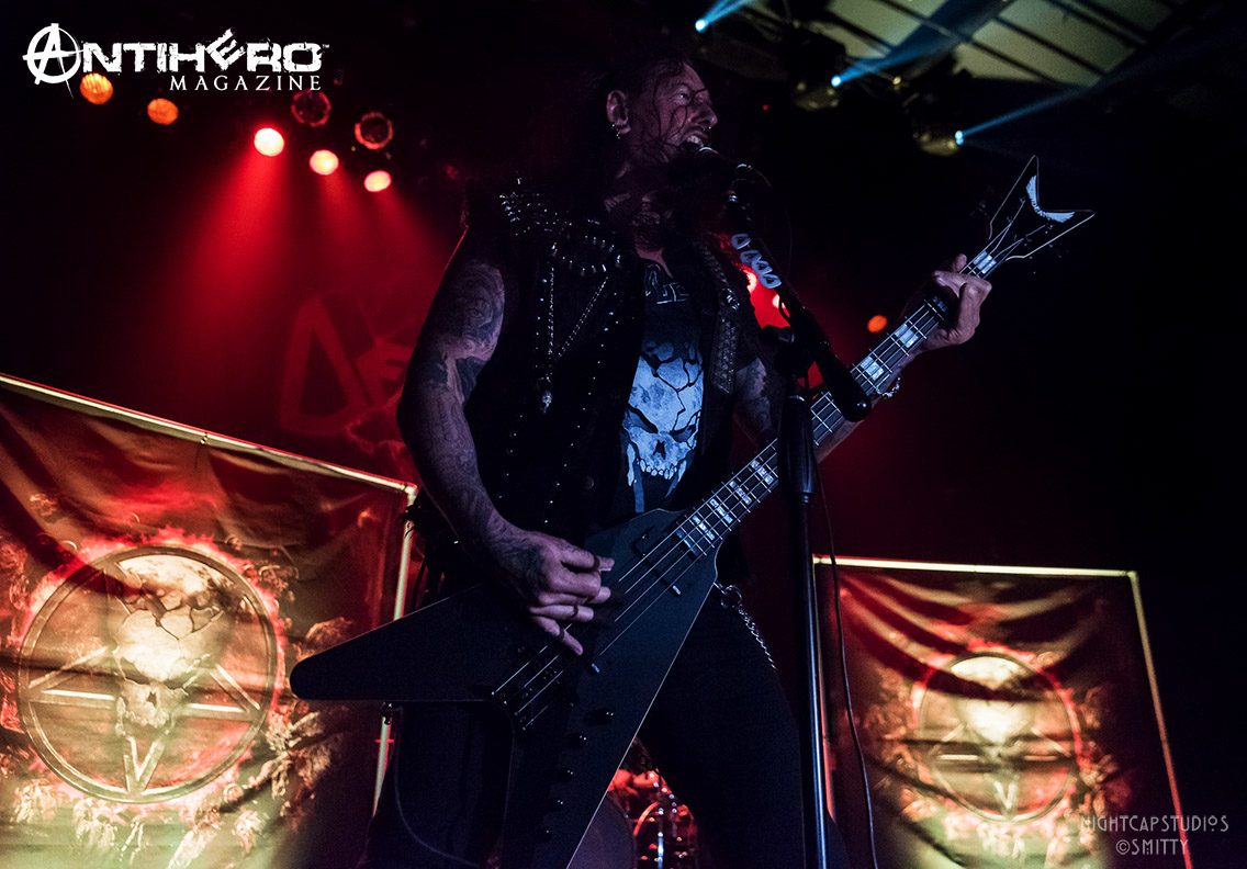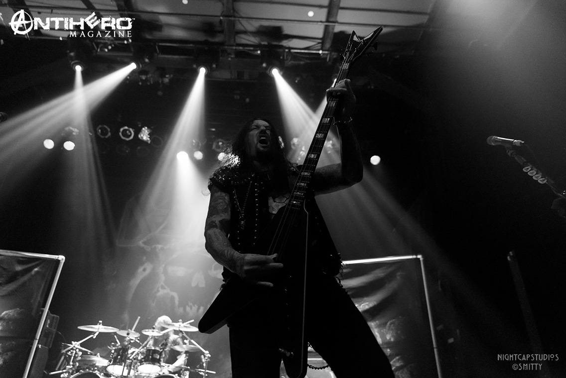 With the stage dimly lit in red lighting, Schmier, Mike, and Vaaver would begin their hour-long set. Only fitting for the tour, the band opened with “Under Attack”. The crowd would react by heading with fist in the air and getting the pit up and running. Fueling the fire further, they would then go back ten years to “Curse Of The Gods”. Known as one of Germany’s “Big 4”, this thrash metal powerhouse trio is armed with brutal hit after brutal hit. The attack would continue, going further back with “Nailed To The Cross”. As the crowd would rage through the sonic onslaught, singing along to the chorus with great intensity, it was apparent Destruction had set the pace and had everyone’s blood pumping. The hour-long set would eventually begin to take its toll on the weak, as the crowd would start to thin out at about the three-quarter mark of the set list, but not leaving it too thin. The end of the set would include such 80’s classics like “Thrash Attack”, “Invincible Force”, “Antichrist”, and would follow up with an encore of “Thrash till Death” and ending it all with 1985’s “Bestial Invasion.” With over 30 years of thrash under their belt, Destruction has not lost a step. With the solid setlist put together, along with the opening bands, North America is truly Under Attack.