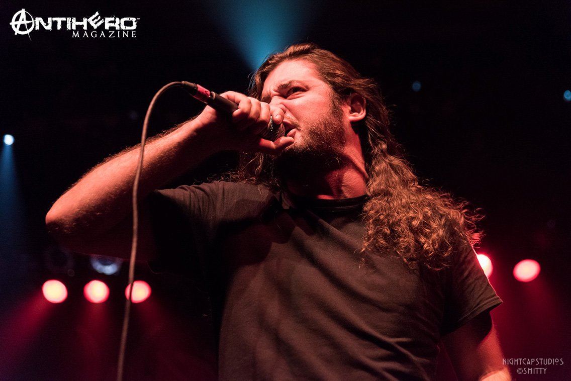 Warbringer delivered the intensity but there was obvious divide within the crowd. Some left satisfied, while others were clearly restless and ready for the third and final opener to hit the stage. From Kenosha, Wisconsin that band would be Jungle Rot. A band I wasn’t too familiar with at all. Categorized as death metal but known also for having a hard-core sound. As they would deliver their violent beatdown of hardcore rhythms with a good dose of death metal on the side, producing a unique sound that would have me very attentive throughout the set. Just by the reaction given off by the crowd, Jungle Rot attracts a select audience that showed their aggressive presence throughout the pit as others would look on and stand clear.