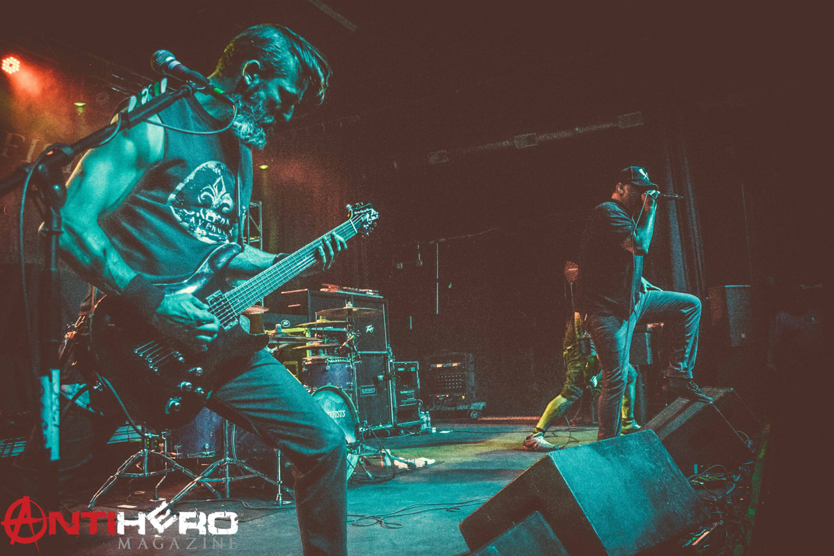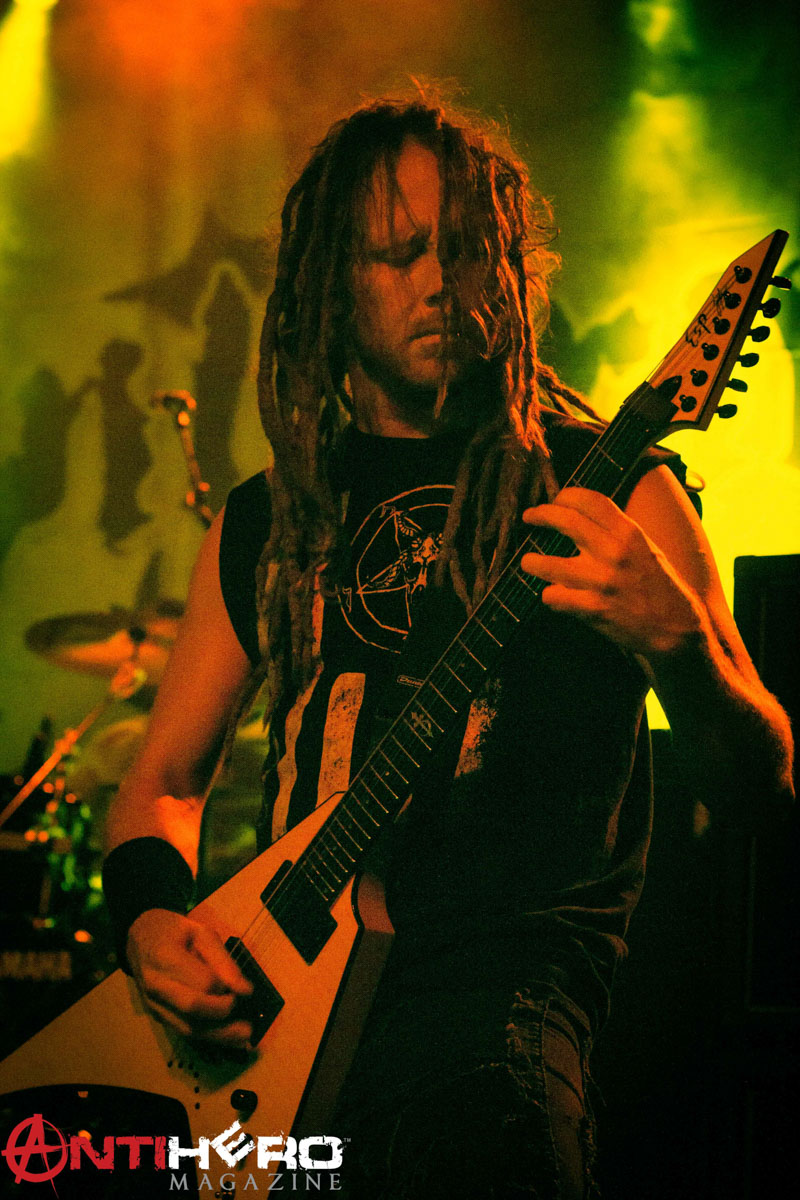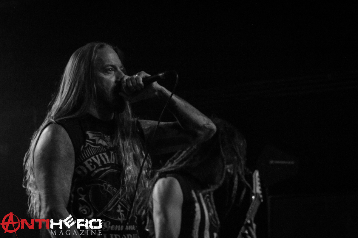 I can’t imagine the pressure of having to compose the set and put together a short list from the past decade. That didn’t stop DevilDriver as they graced the stage with all smiles and nailed Fayetteville with their hour-long set. Frontman Dez said he “knew it was going to be a crazy night” when fans went nuts as their initial introduction. The band leeched off the crowd’s energy all night as tracks “End Of The Line,” “Hold Back The Day,” and “Daybreak” were slayed away. Time slowed down in the pit as “Not All Who Wander Are Lost” was performed, but that didn’t keep the crowd from clapping along. Green and purple lights illuminated the stage for “My Night Sky.” There was an unexpected cover of “Sail,” and you could tell the band had fun with it. Debut album track “I Could Care Less” played out as a crowd favorite. The band thanked the venue and the audience for coming out and making the night a possibility, especially on a weekday. Dez said, “I grew up on a construction site and knew what it was like to wake up at 5:30 a.m. every morning… thank you for coming out tonight.” Overall, I was amazed by how playful DevilDriver was with the crowd; the interaction and eye connections were more active than I anticipated. This college town roared for the band as they gave one last “thank you” for the night.