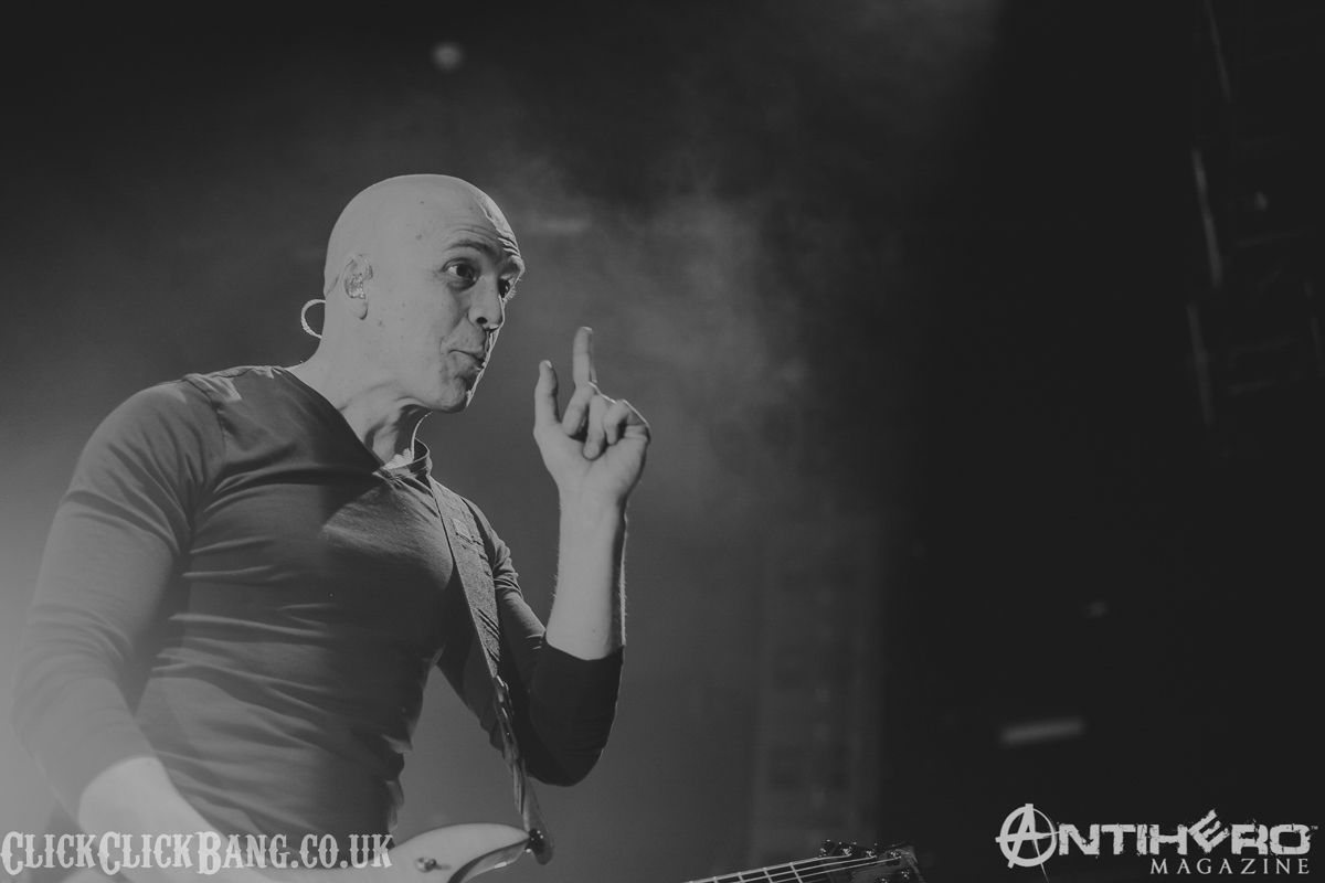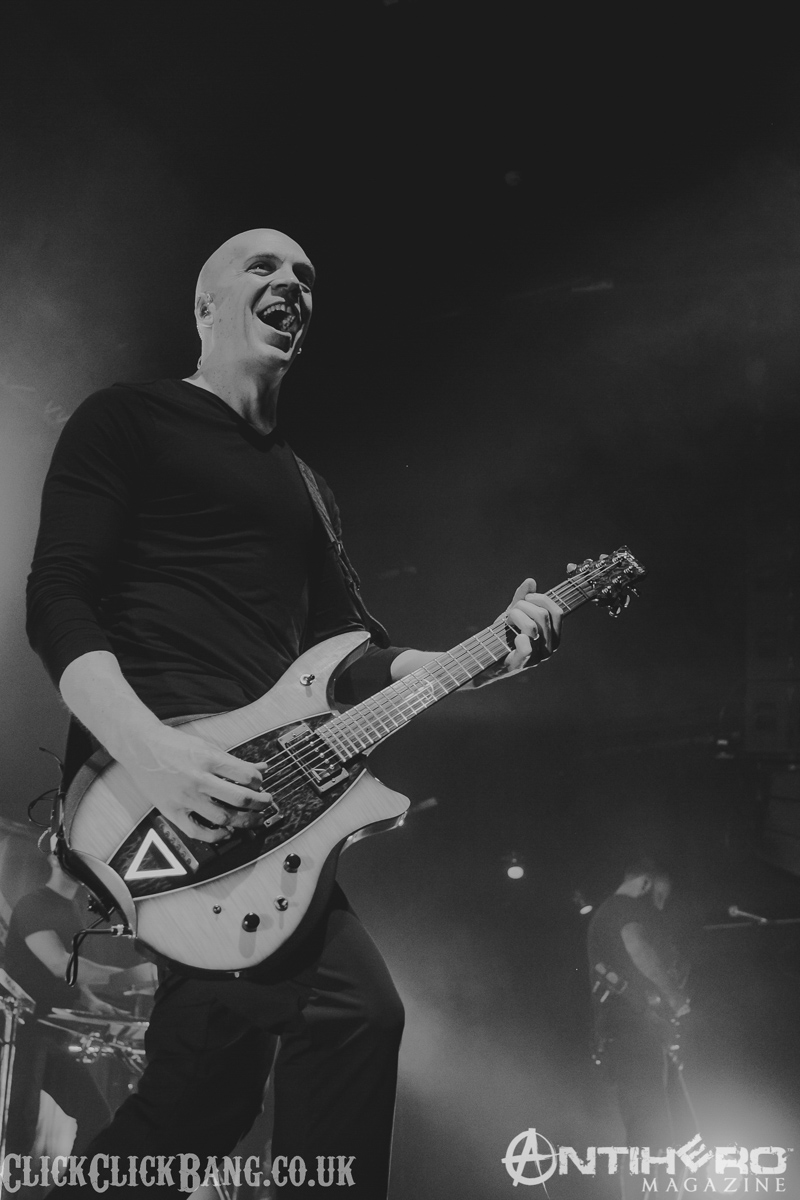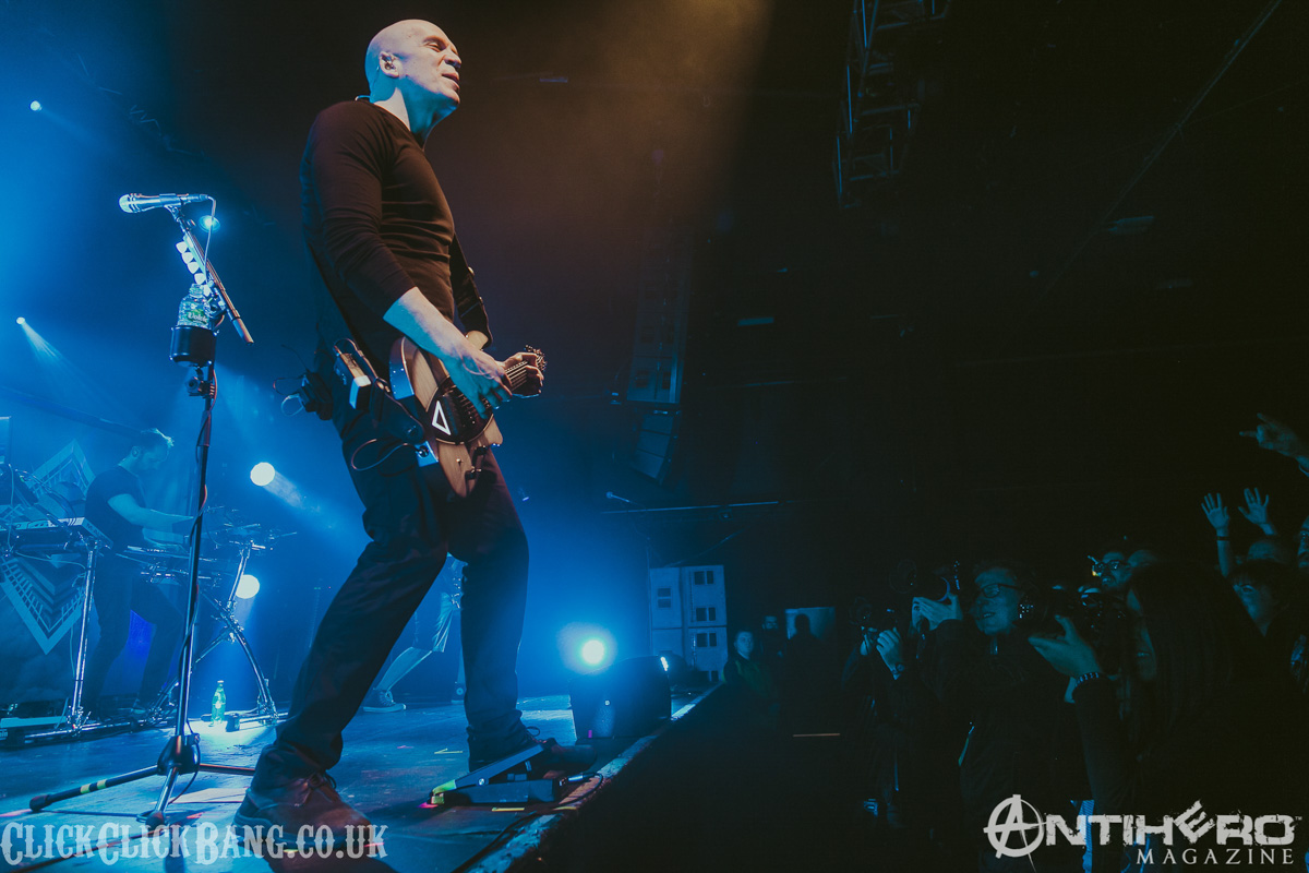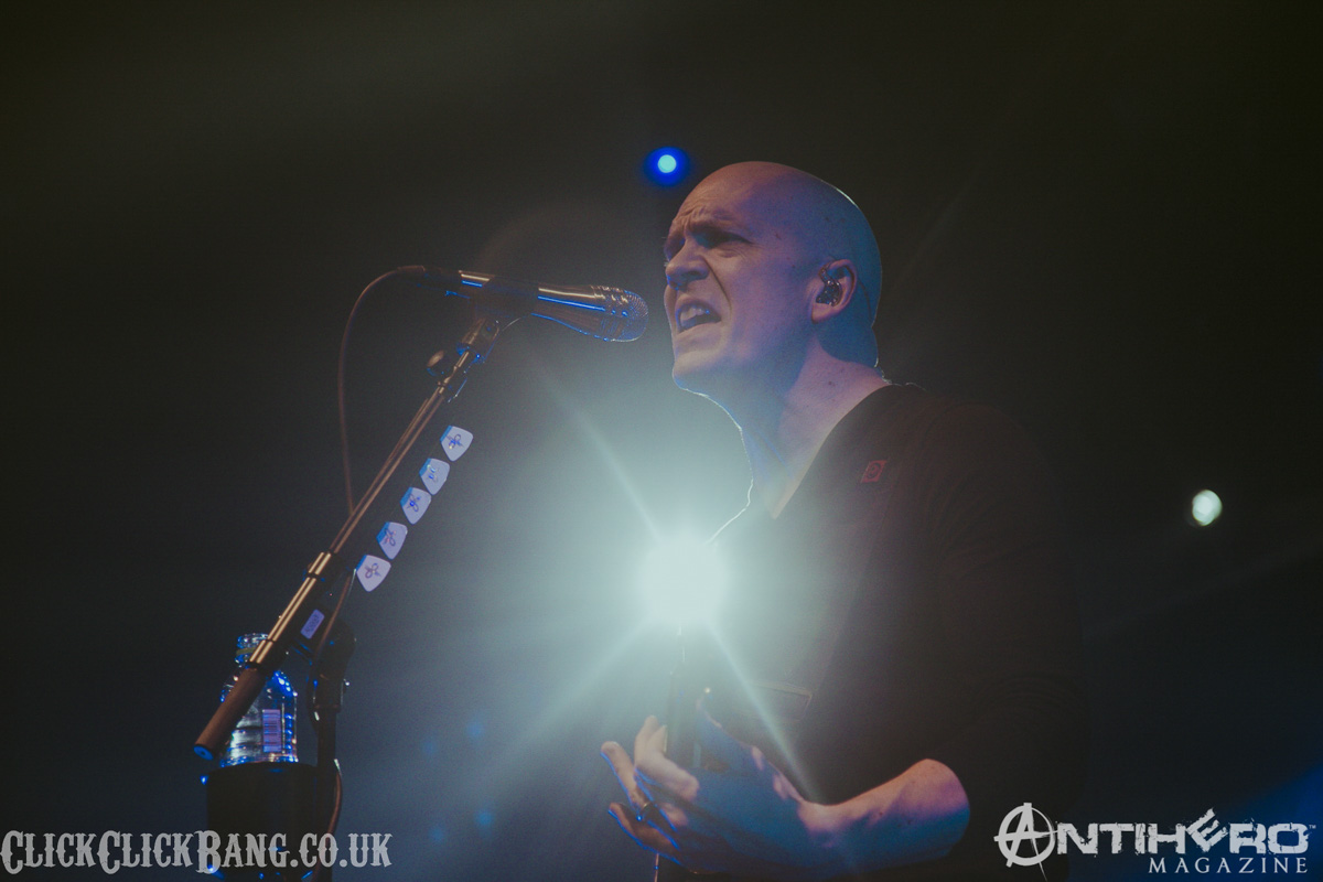 Next, we have UK prog band TesseracT. I’ve seen these guys perform at previous Devin gigs, so I thought I knew what to expect. I was wrong! A change of lead singer (back to previous vocalist Daniel Tompkins) reveals a tighter, more passionate performance than my previous experience and I enjoyed it immensely.