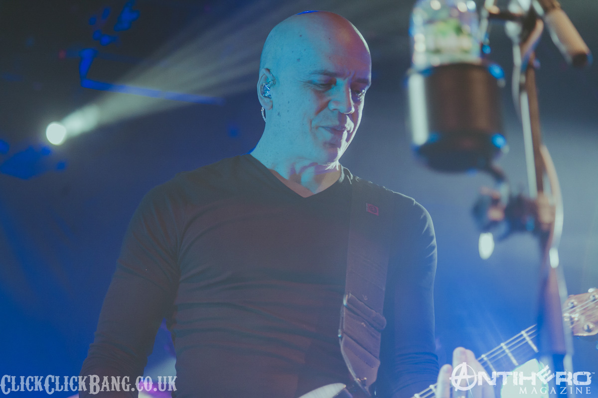 Appearing to rapturous cheers from the crowd, the first few songs of DTP’s set (“Rejoice,” “Night,” and “Stormbending”) are rattled off with enthusiastic abandon, before Devin shows his usual self-deprecating talent for on-stage banter. He is, quite simply, one of the most natural and hilarious frontmen I have ever had the pleasure of seeing, and it always plays a massive part of the Devin live experience. Add to that an incredible back catalogue of music and you are guaranteed a fabulous show. “Failure,” “Hyperdrive” and “Where We Belong” prompt sing-alongs from the audience, before DTP takes it down (or up?) a notch with the bone-crushingly heavy “Planet of the Apes.” This song is becoming a staple song of the DTP set, it’s almost Opeth-esque in its breadth and scope, and as close to death metal vs prog rock as you are ever going to get. “Ziltoid” goes home was next, followed by “Suicide” (which was a personal highlight for me being a huge fan of the album Accelerated Evolution), “Supercrush” and “March of the Poozers,” followed by the eternal crowd-pleaser of “Kingdom” (complete with audience participation!) and Devin leaves the stage (“But not really, we all know I’ll be back in a minute!”).