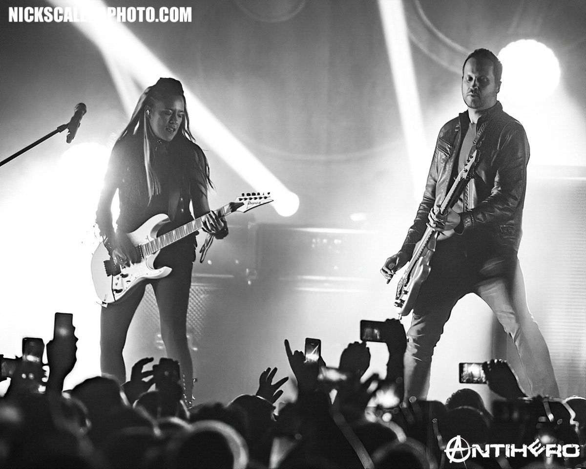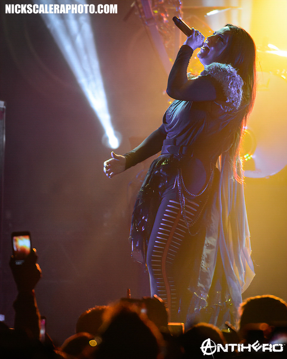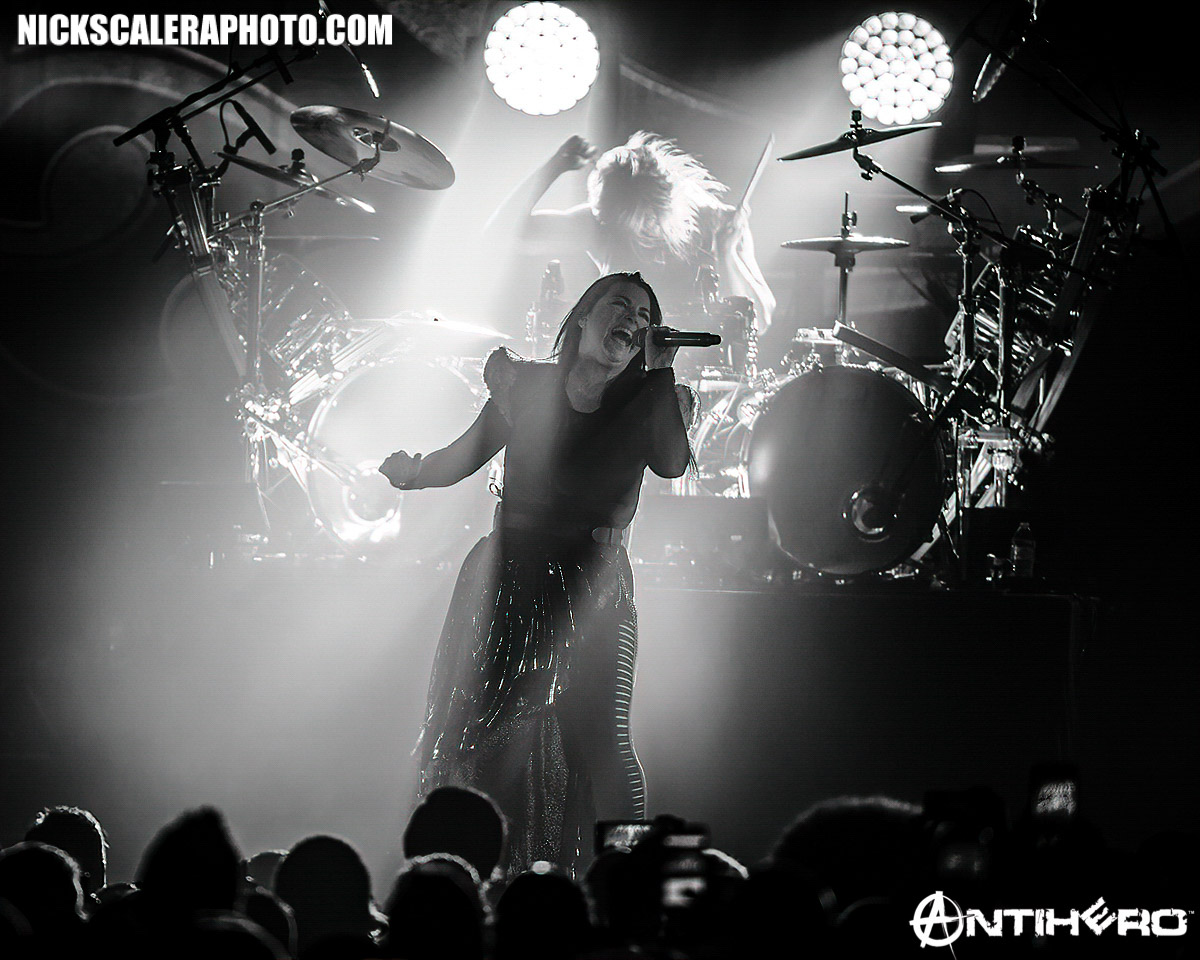 Evanescence is touring both in the United States and in Europe in support of the band’s fourth album “Synthesis”, released in 2017, an album that features reworked versions of the band’s prior material complete with an orchestral arrangement and additional electronic elements. The band powered through each song of their set gracefully, bringing early work from their careerspanning discography front and center to a crowd that was feeding off Amy’s energy. Dressed in her trademark gothicstyle, Lee seemed to glide around the stage, commanding the center area with epic bravado as fellow musicians were equally energetic. Quite honestly, Evanescence seemed to be having as great of a time as the fans were and it showed in their phenomenal performance that evening.