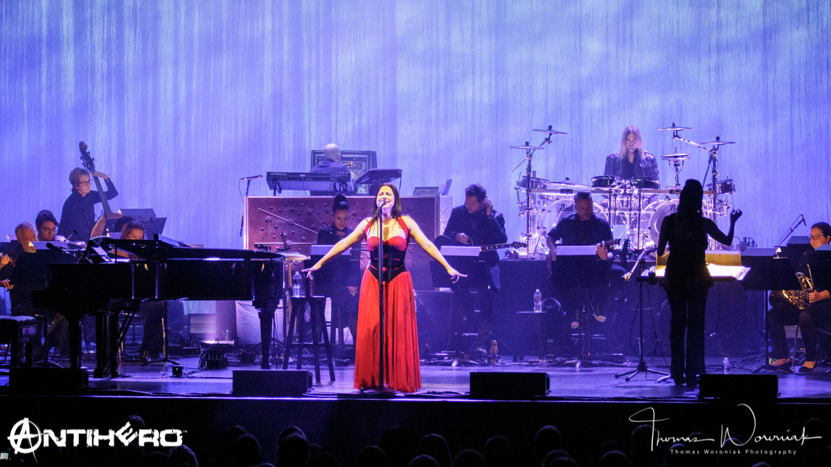Starting with the solemn introduction of “Overture”, Amy Lee takes her place at the piano and moves seamlessly into “Never Go Back”. The combination of the live orchestra with the traditional drum and guitar blends perfectly in this live concert setting. Lee’s voice is on-point and powerful, soaring through the arrangements by Canadian composer David Campbell, breathing vibrant life into the performance of Synthesis Live while creating an emotionally impactful atmosphere of longing and loss. Of course, audience favorites like “Bring Me To Life” and “My Immortal”, both from 2003’s Fallen, were met with enthusiastic cheers from the crowd. The entire Synthesis album is performed live, however not in the same running order as the studio album. You can see the setlist below.