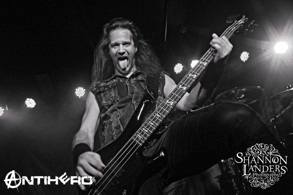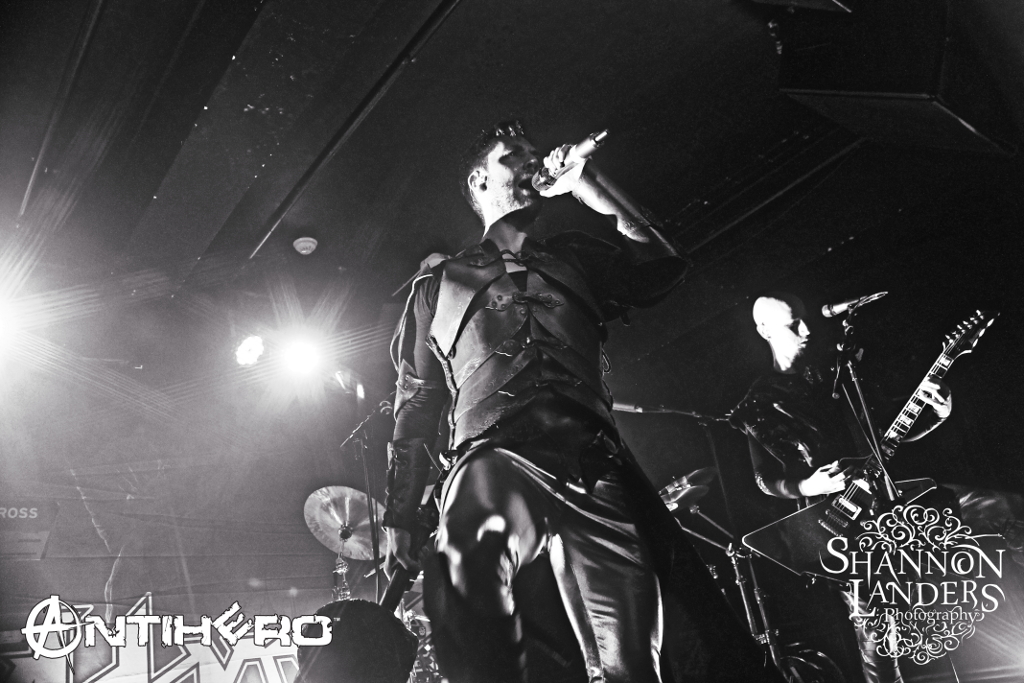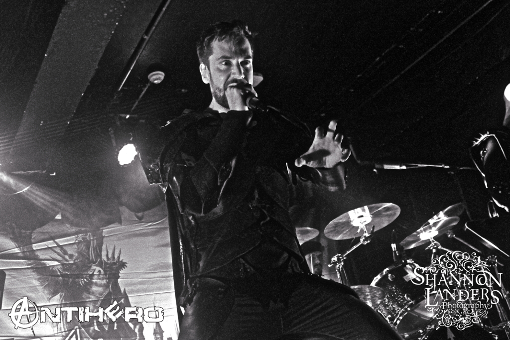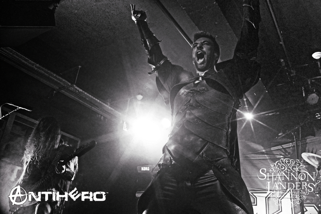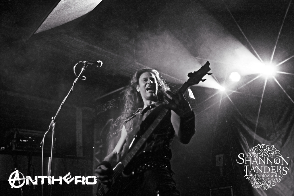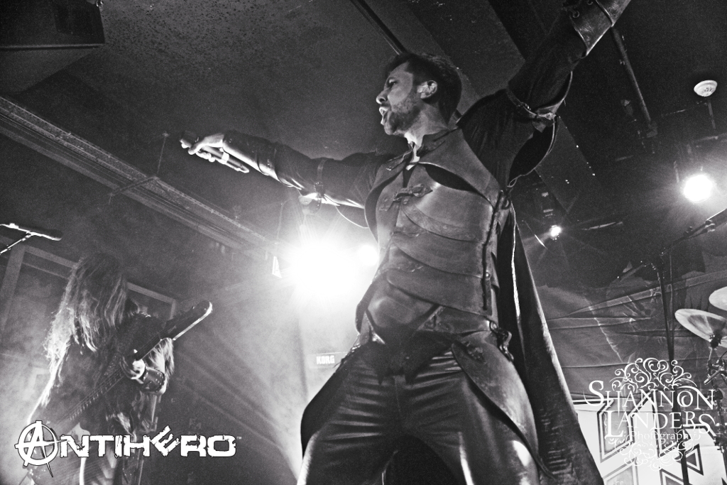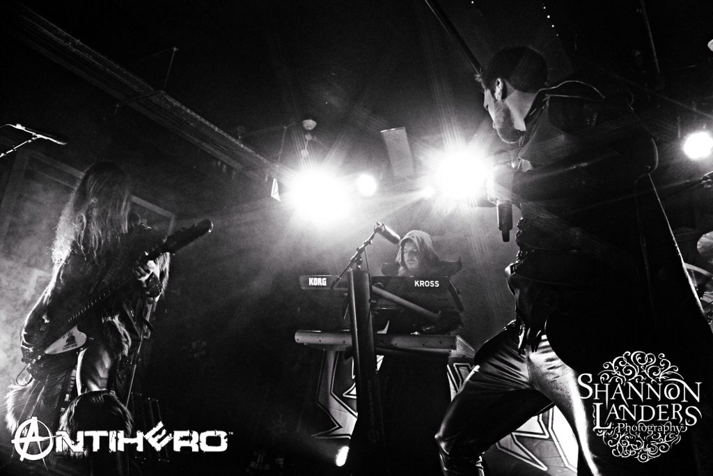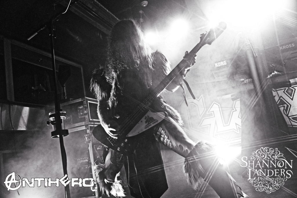 About an hour after doors, where fans had rushed downstairs to the jam-packed room, I finally obtained my photo pass which unfortunately meant missing all but one song by Wind Rose, that I wasn’t allowed to photograph. The photo pit had decreased in size and the room was shoulder-to-shoulder, so after I’d squeezed through, I finally saw a Viking Metal band that looked like they had stepped out of history to roar in your face. There were fur and armour, punches in the air and the crowd shouting for more.